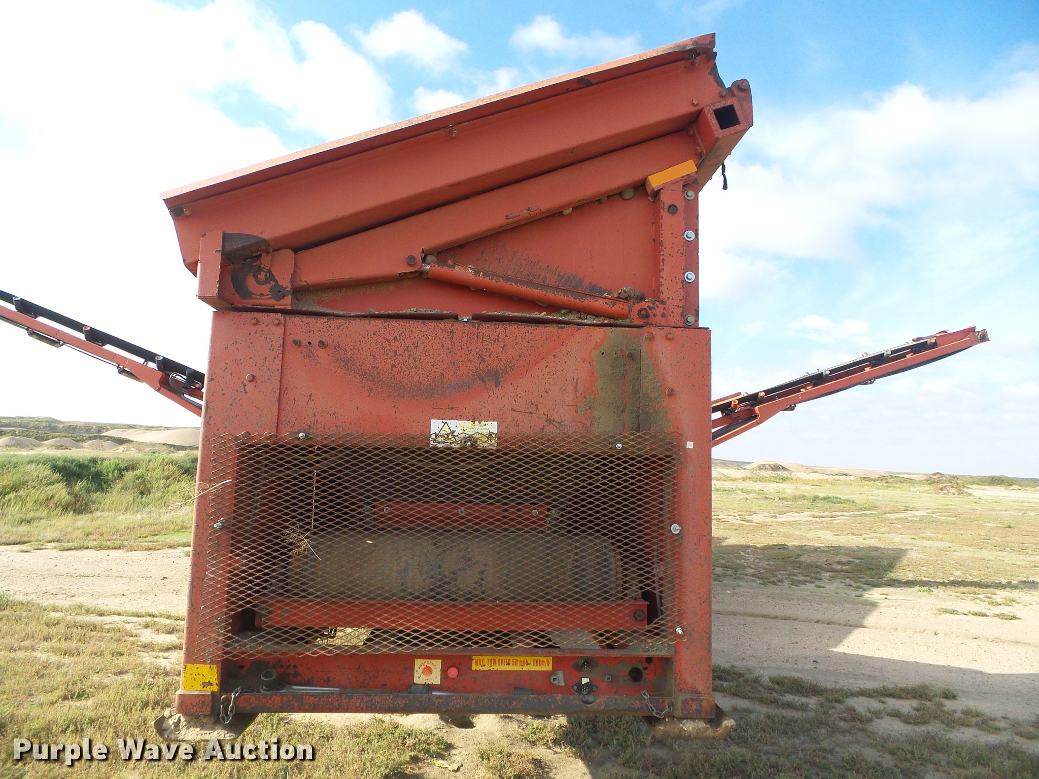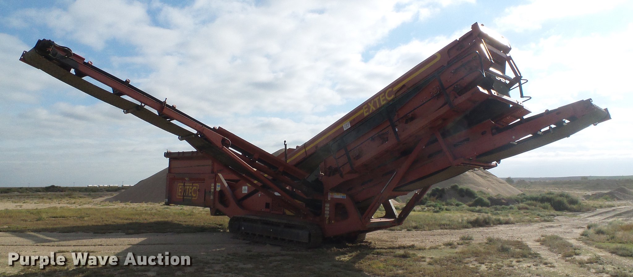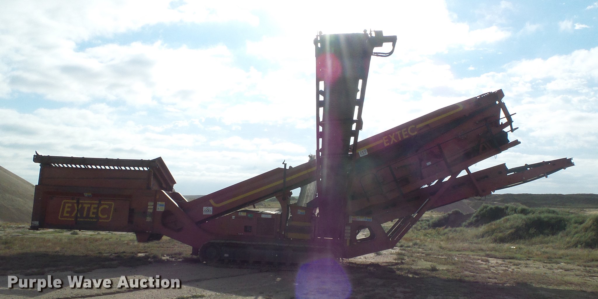 Purple Wave is selling a used Screen or Screening Plant in Kansas. This item is a 2007 Extec S6 58-70 screening plant with the following: 2,880 hours on meter, Deutz four cylinder four cylinder turbo diesel engine, Approximately 60' overall length, 48" main conveyor, Hydraulic lift, (2) 30'L x 28"W side conveyors, Hydraulic lift and fold, Double deck grizzly box, Hydraulic lift, 2 - 5' x 10' screens, Upper and lower deck end tension, 4mm harp wire bottom screen, Chevron conveyor belts, Remote control, Dual catwalks, Emergency shut offs, Eight bottom rollers, Stickland 20"W tracks, 36 ton operating weight, Top mesh screen not included, Serial 11444