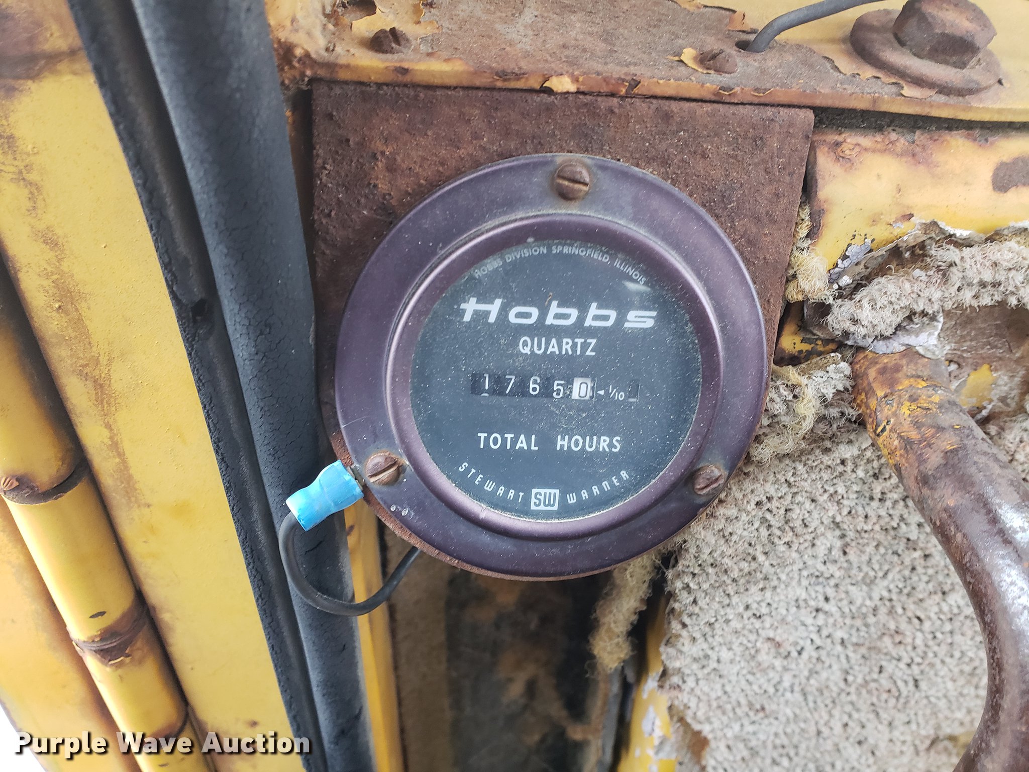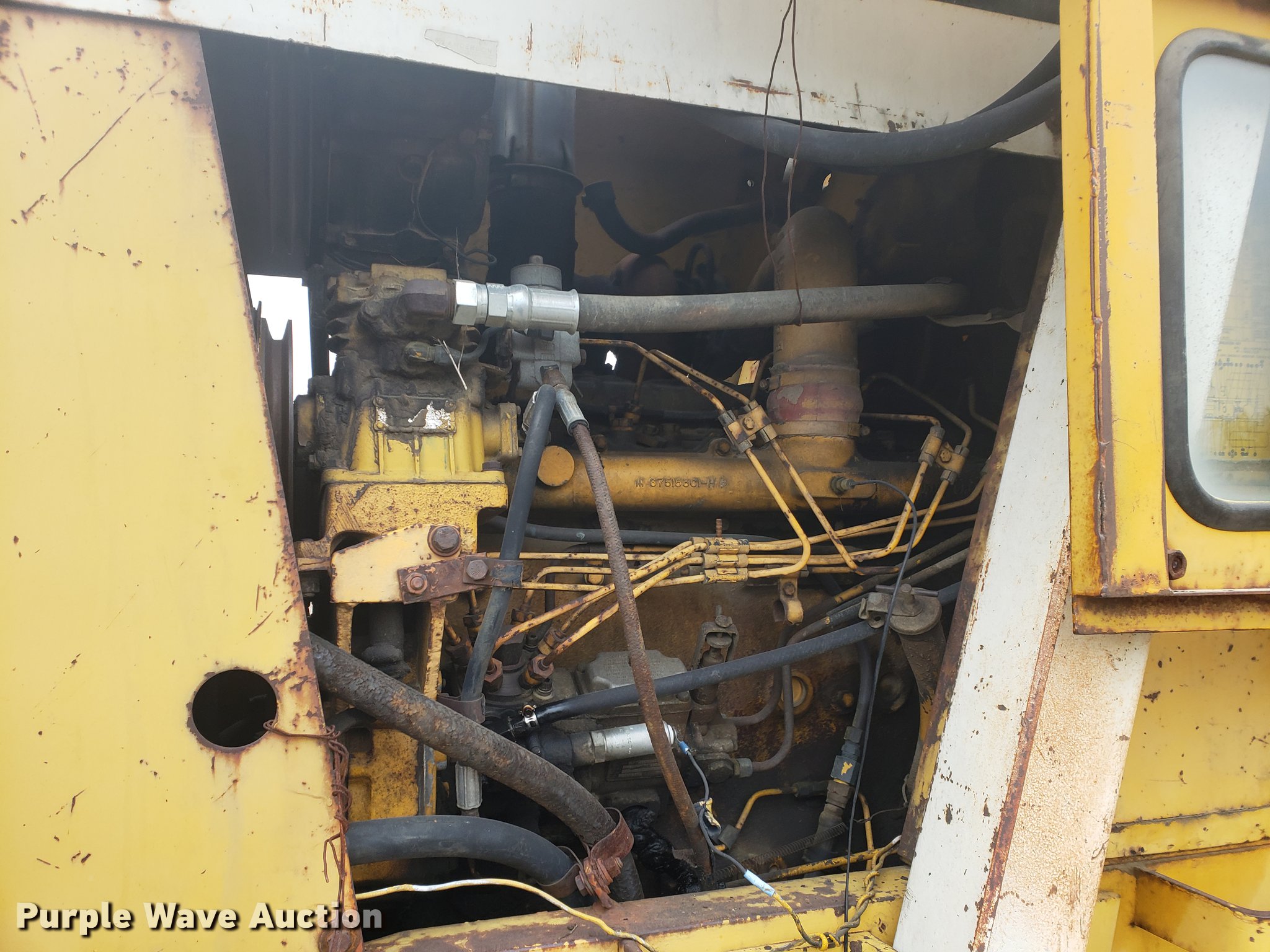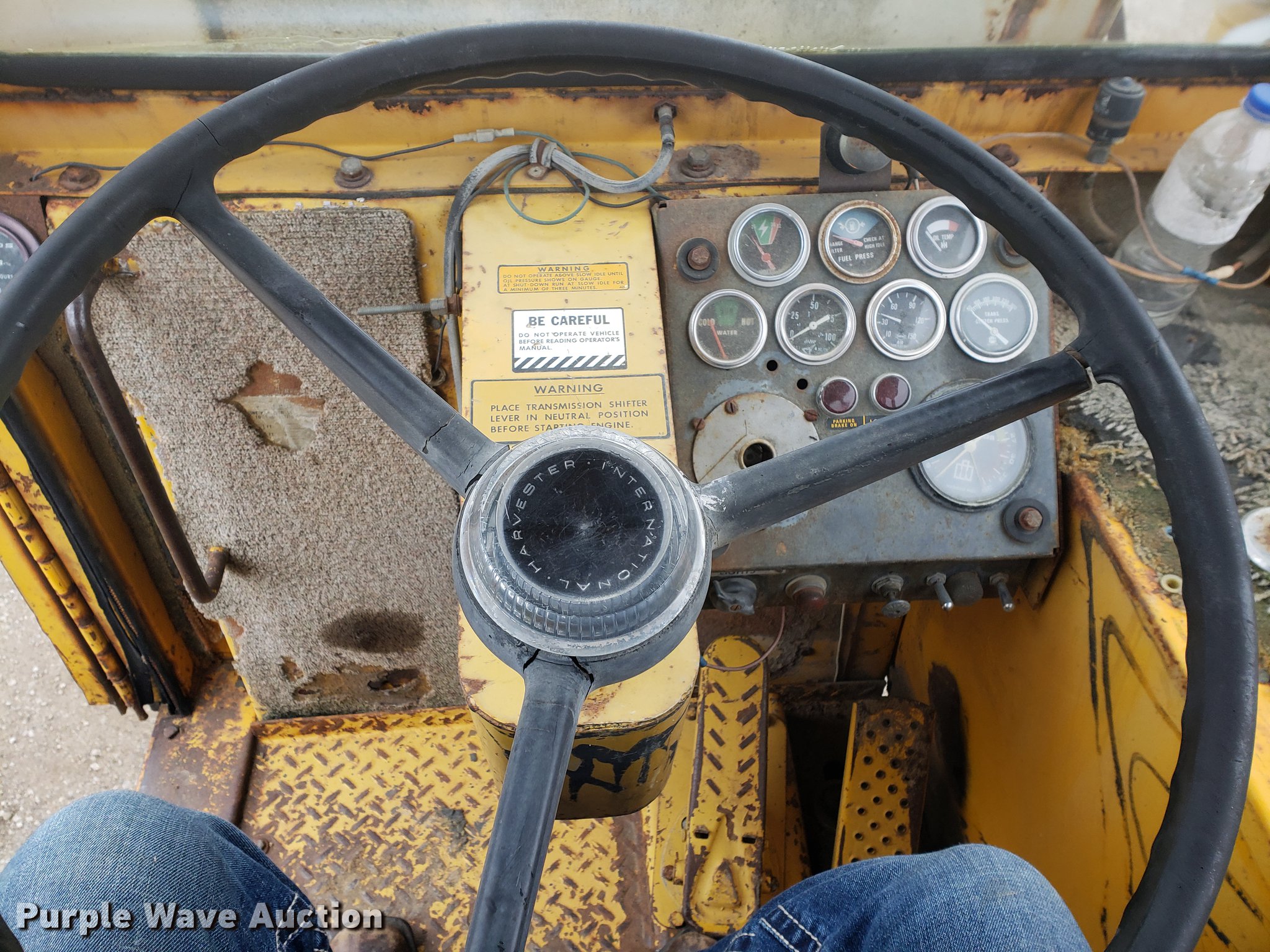 Purple Wave is selling a used Elevating Scraper in Missouri. This item is a International 412 elevating scraper with the following: 1,765 hours on meter, International six cylinder turbo diesel engine, Powershift transmission, 4F-1R gears, Enclosed cab, 8' bowl width, Rear push block, 23.5-25 tires, Cab glass missing