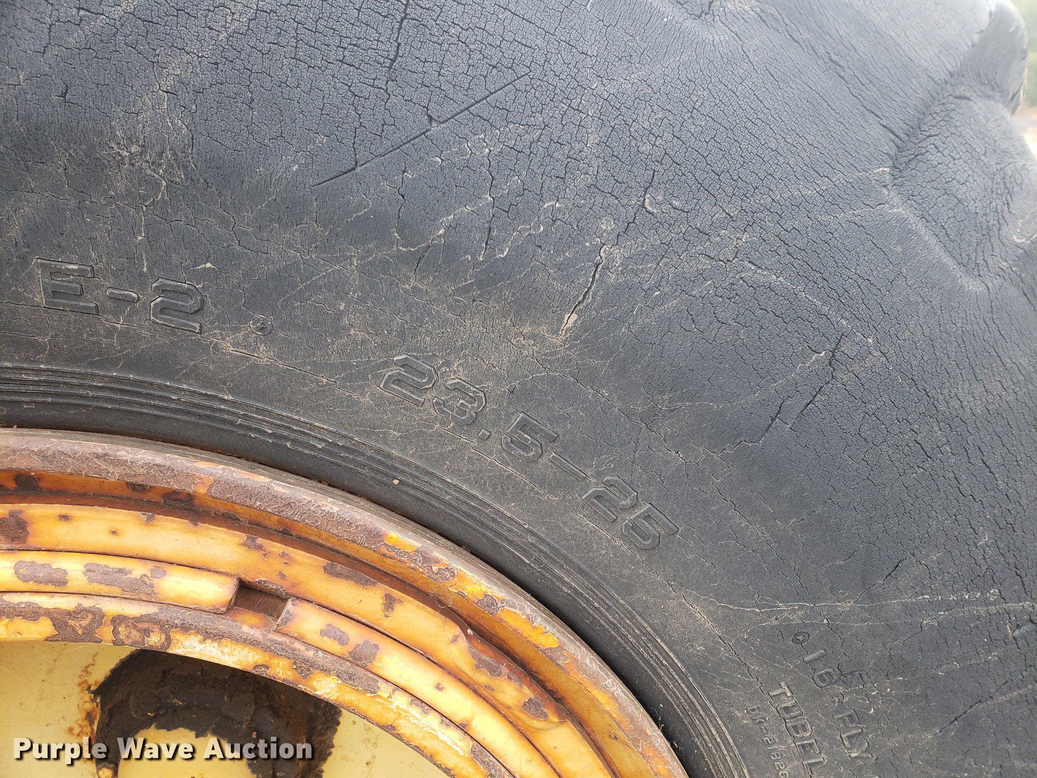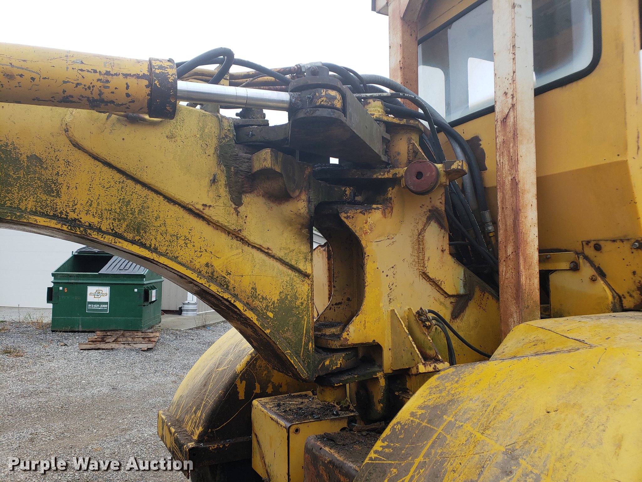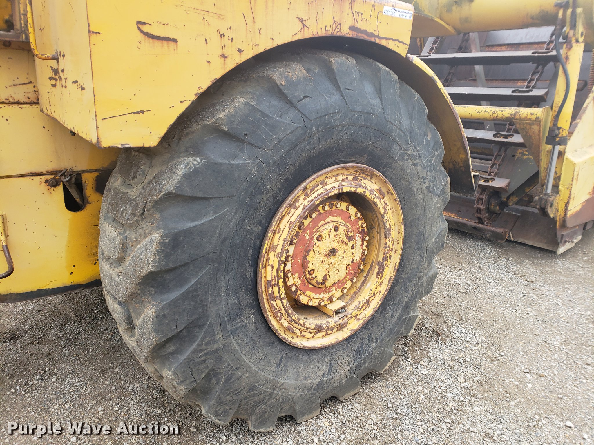 Purple Wave is selling a used Elevating Scraper in Missouri. This item is a International 412 elevating scraper with the following: 1,765 hours on meter, International six cylinder turbo diesel engine, Powershift transmission, 4F-1R gears, Enclosed cab, 8' bowl width, Rear push block, 23.5-25 tires, Cab glass missing