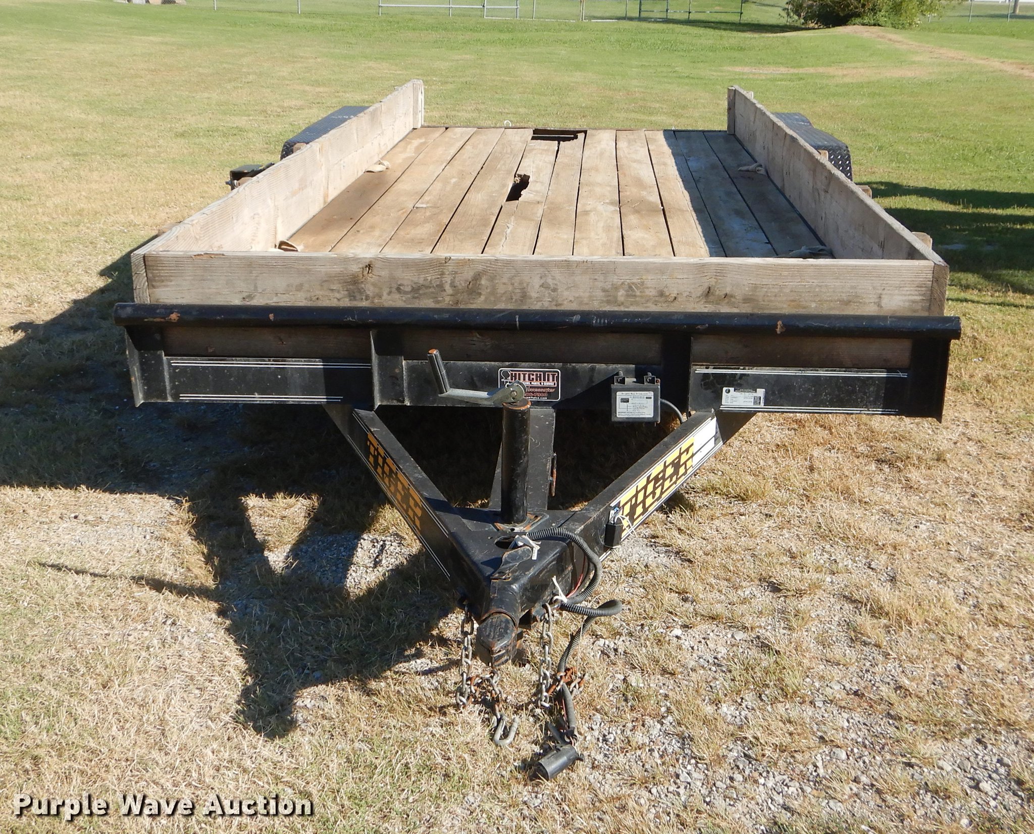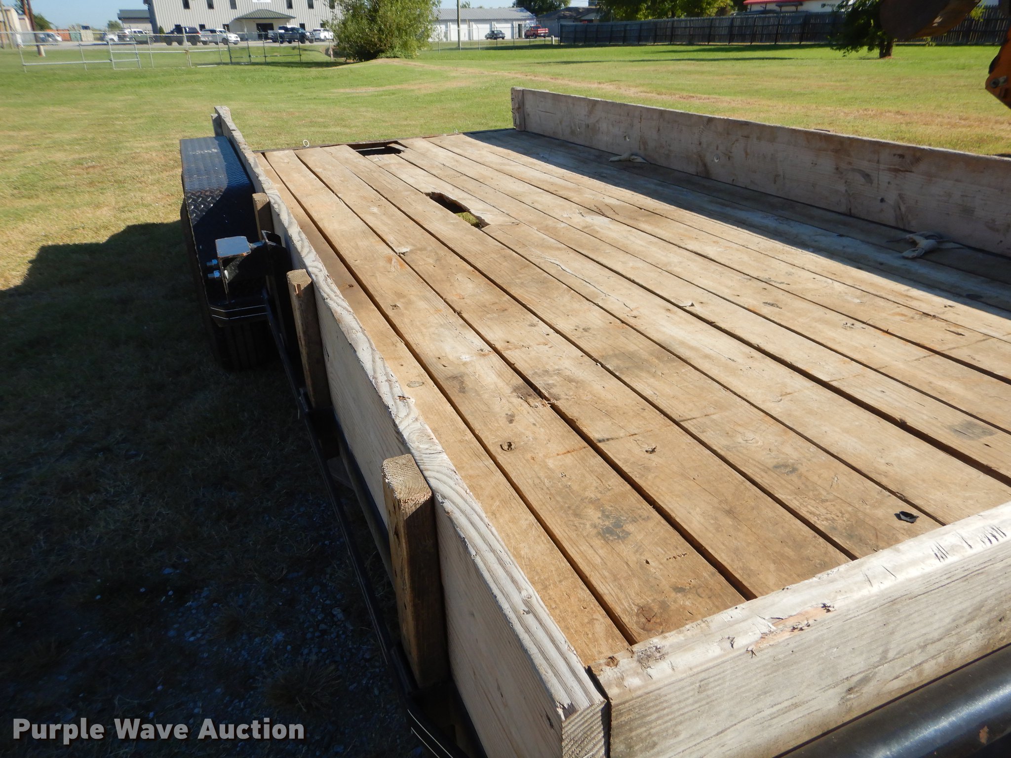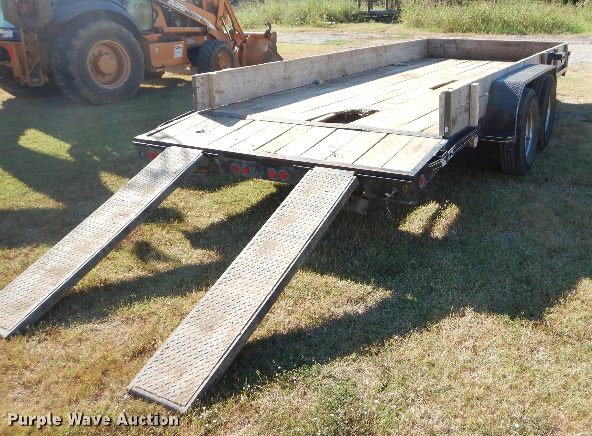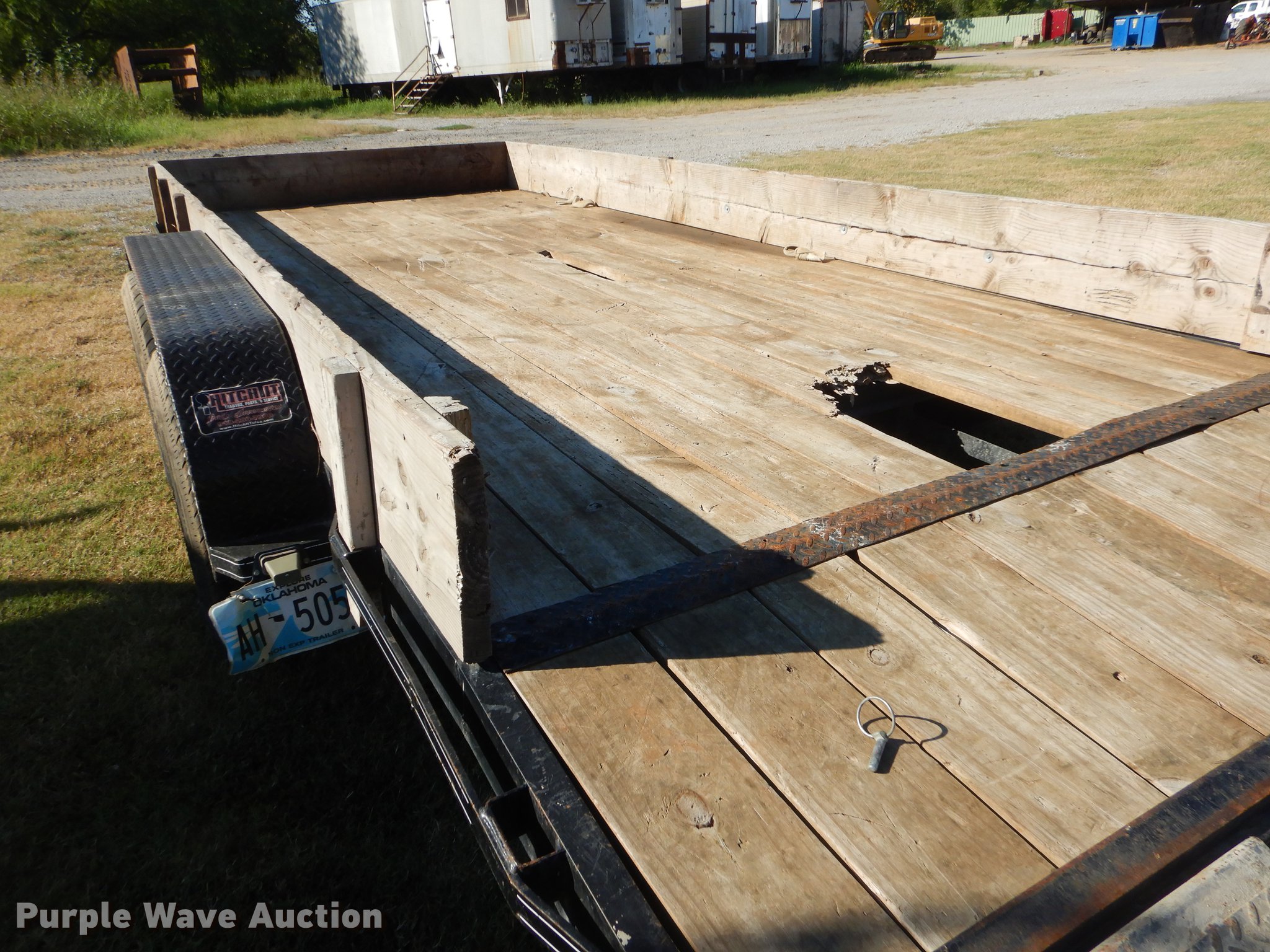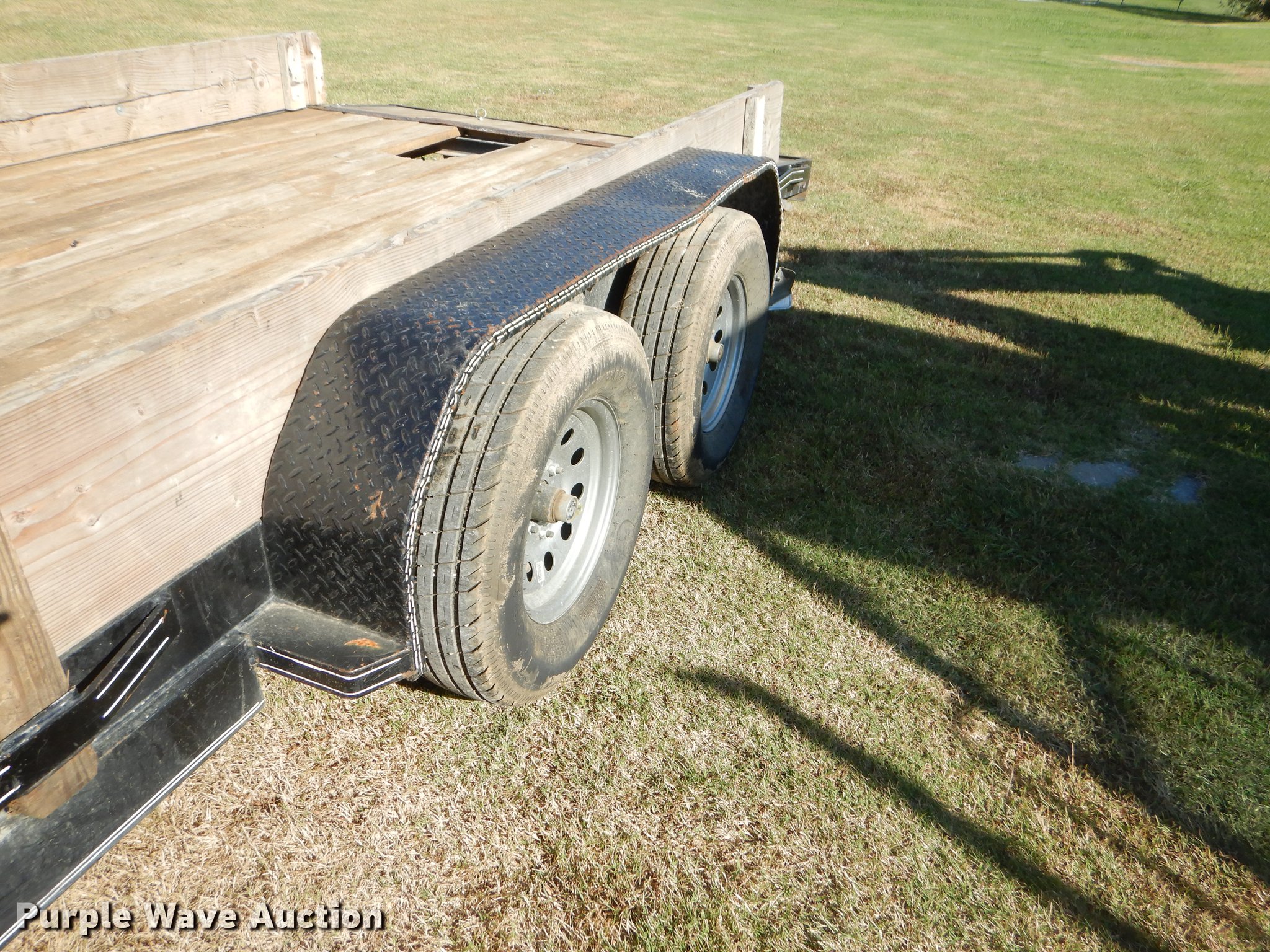 Purple Wave is selling a used Car or Utility Trailer in Oklahoma. This item is a 2017 Tiger utility trailer with the following: 22'L x 86"W overall, 16'L wood deck, 2'L dovetail, 55"L ramps, 11" side height, 25" floor height, Stake pockets, 2" ball hitch, Single leg landing gear, Spring suspension, Electric brakes, Tandem axle, Steel wheels, 225/75R15 tires, GVWR 7,000 lbs, Unit# 191