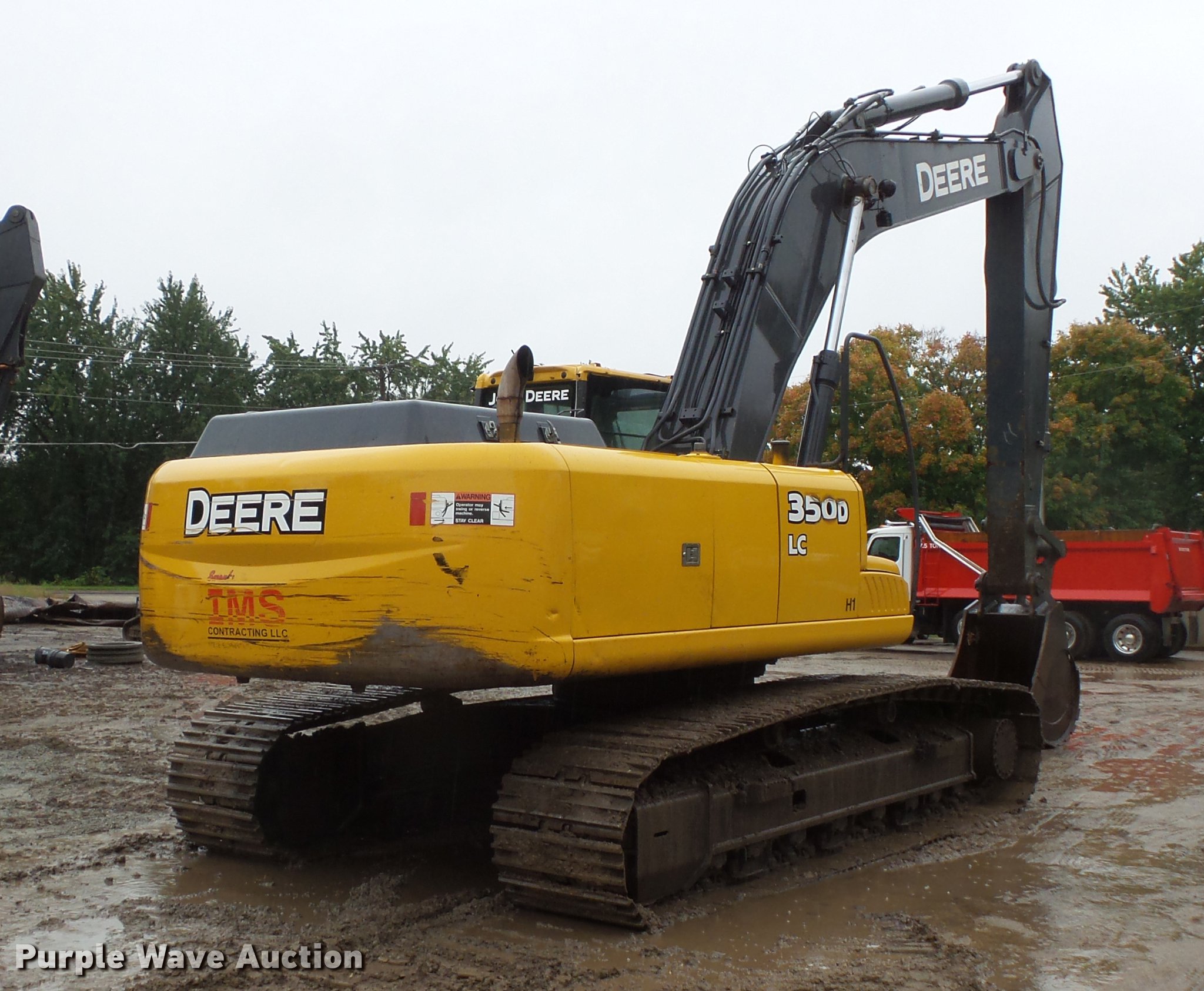 Purple Wave is selling a used Hydraulic Excavator in Minnesota. This item is a 2007 John Deere 350D LC excavator with the following: 10,047 hours on meter, John Deere six cylinder turbo diesel engine, Two speed hydrostatic transmission, EROPS, AC and heat, AM/FM, Suspension seat, Pattern changer, Wipers, Front and rear work lights, Standard boom, 11'2" stick length, 35"W bucket, (4) bolt-on teeth, Boom grease bank, 31.5"W steel triple grouser track pads, Serial FF350DX805747