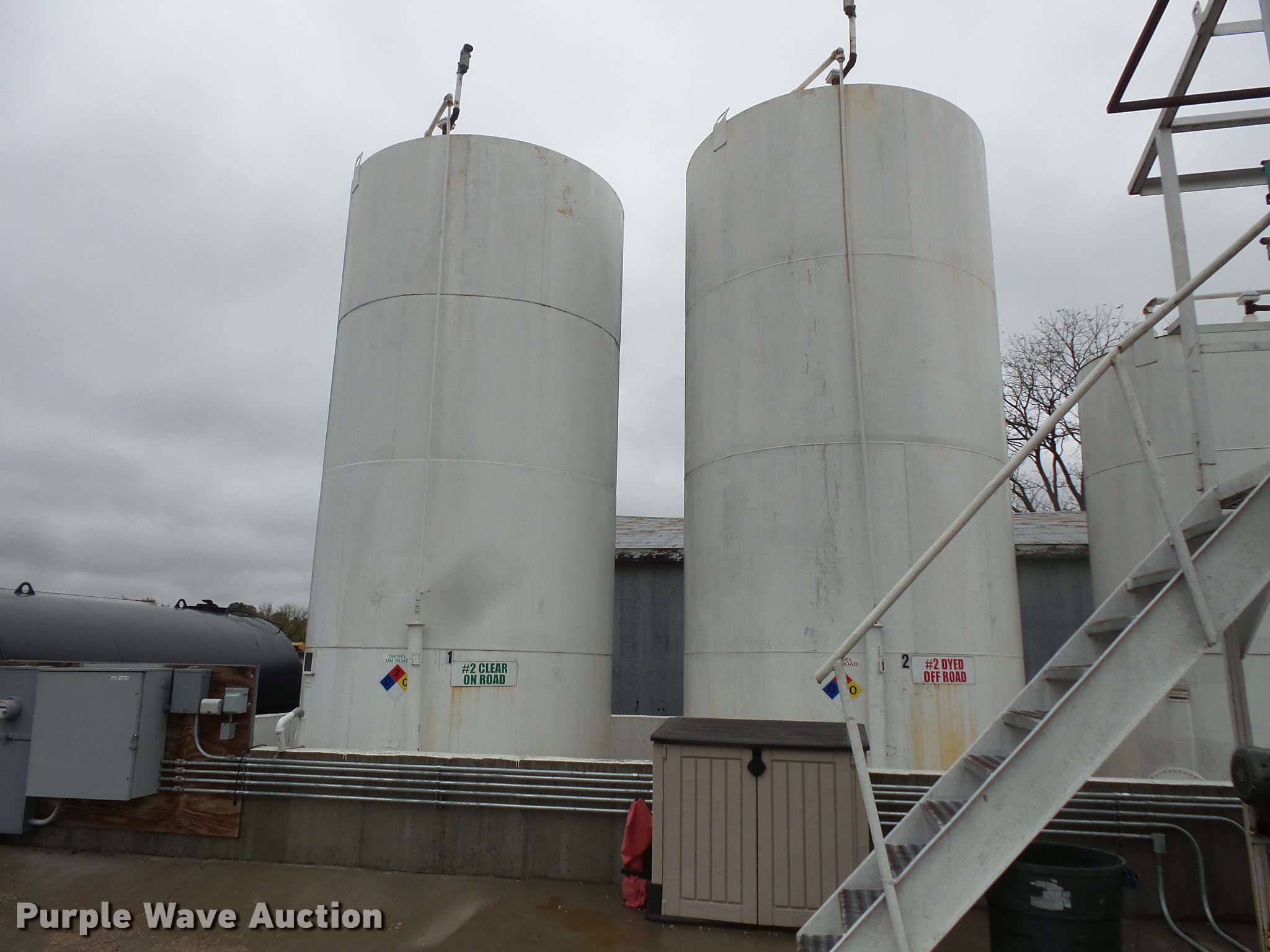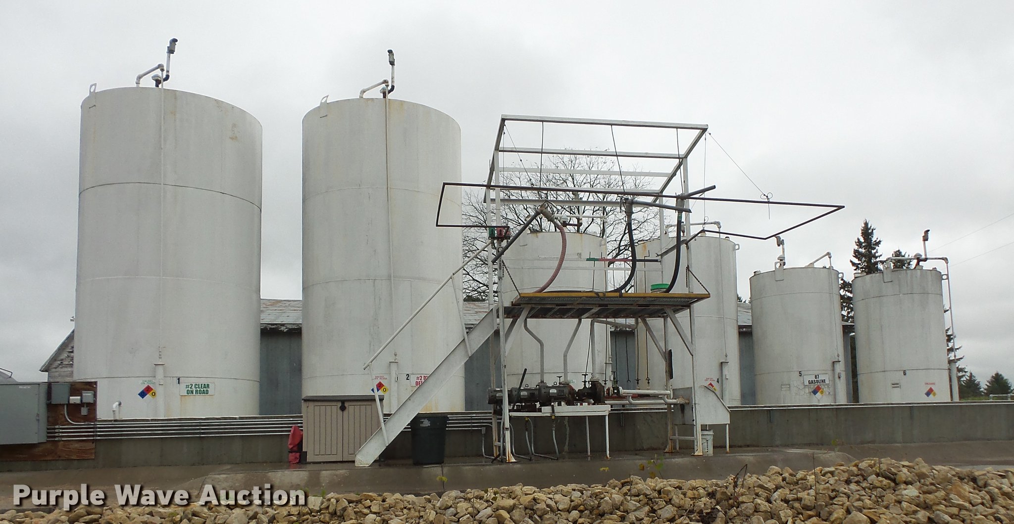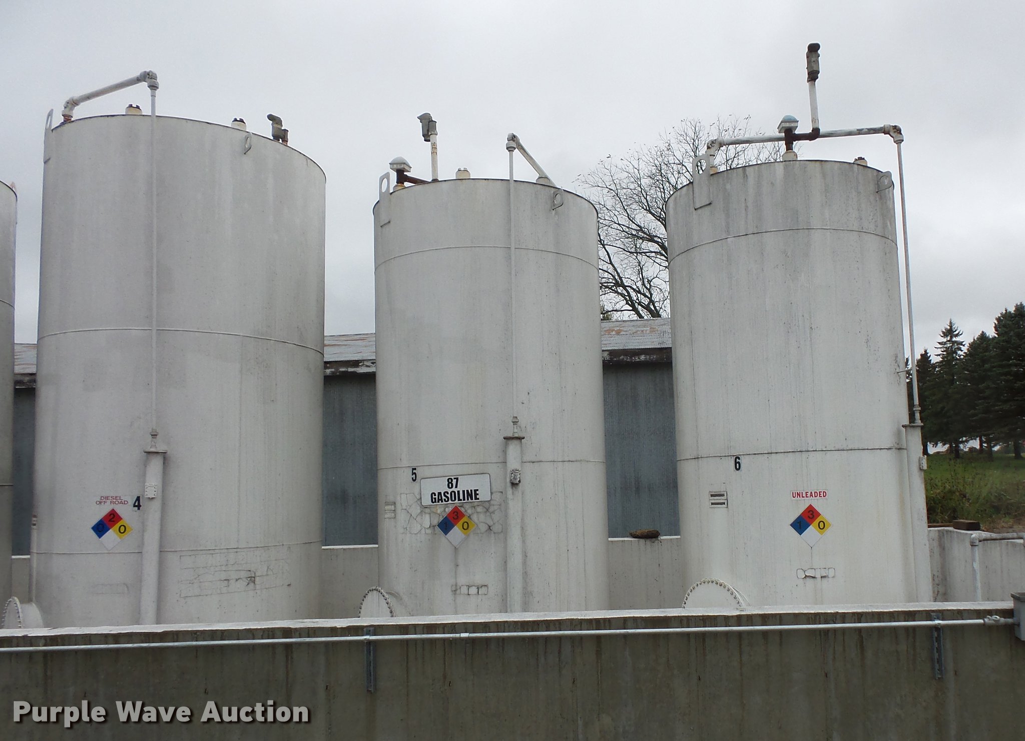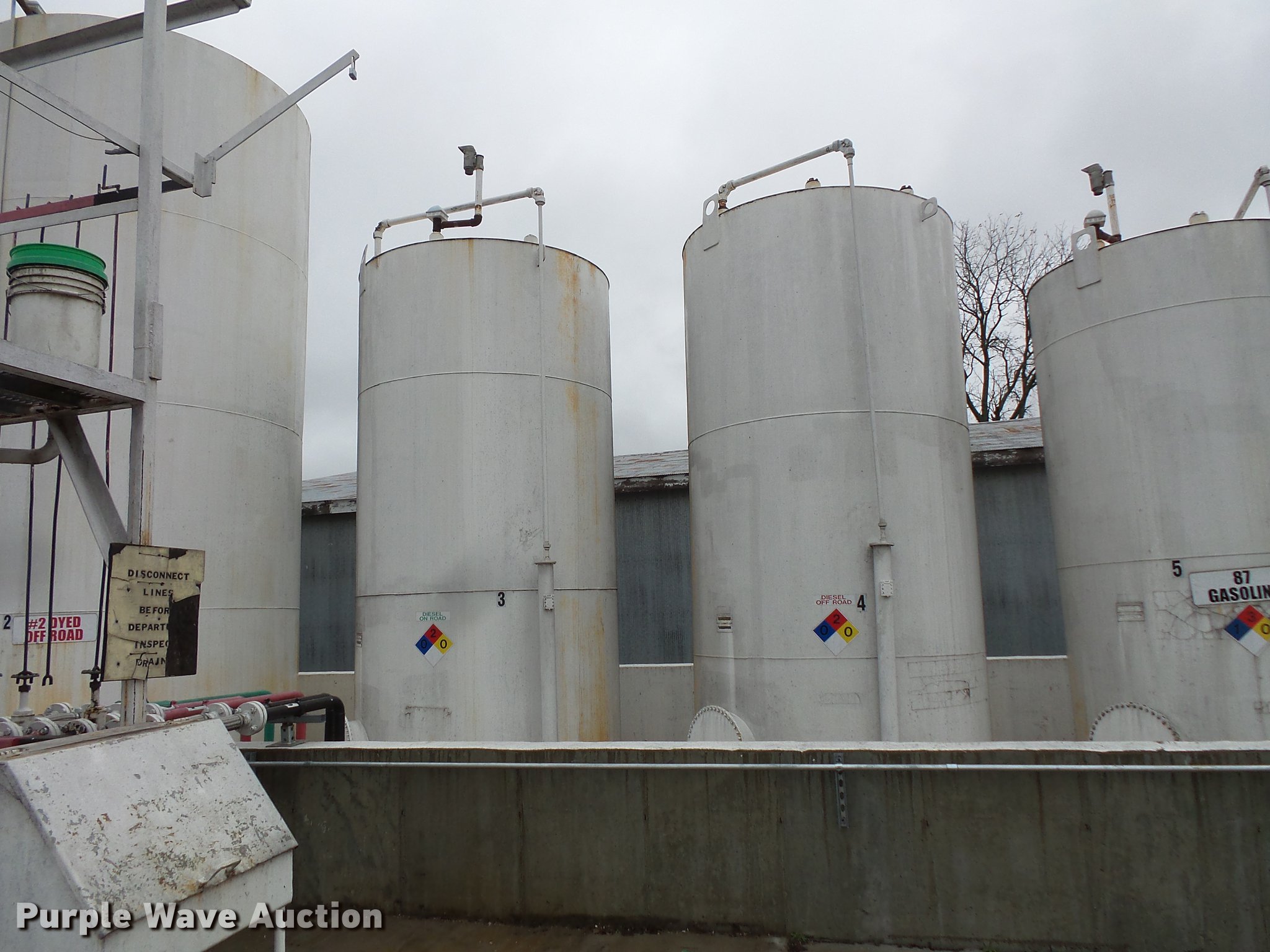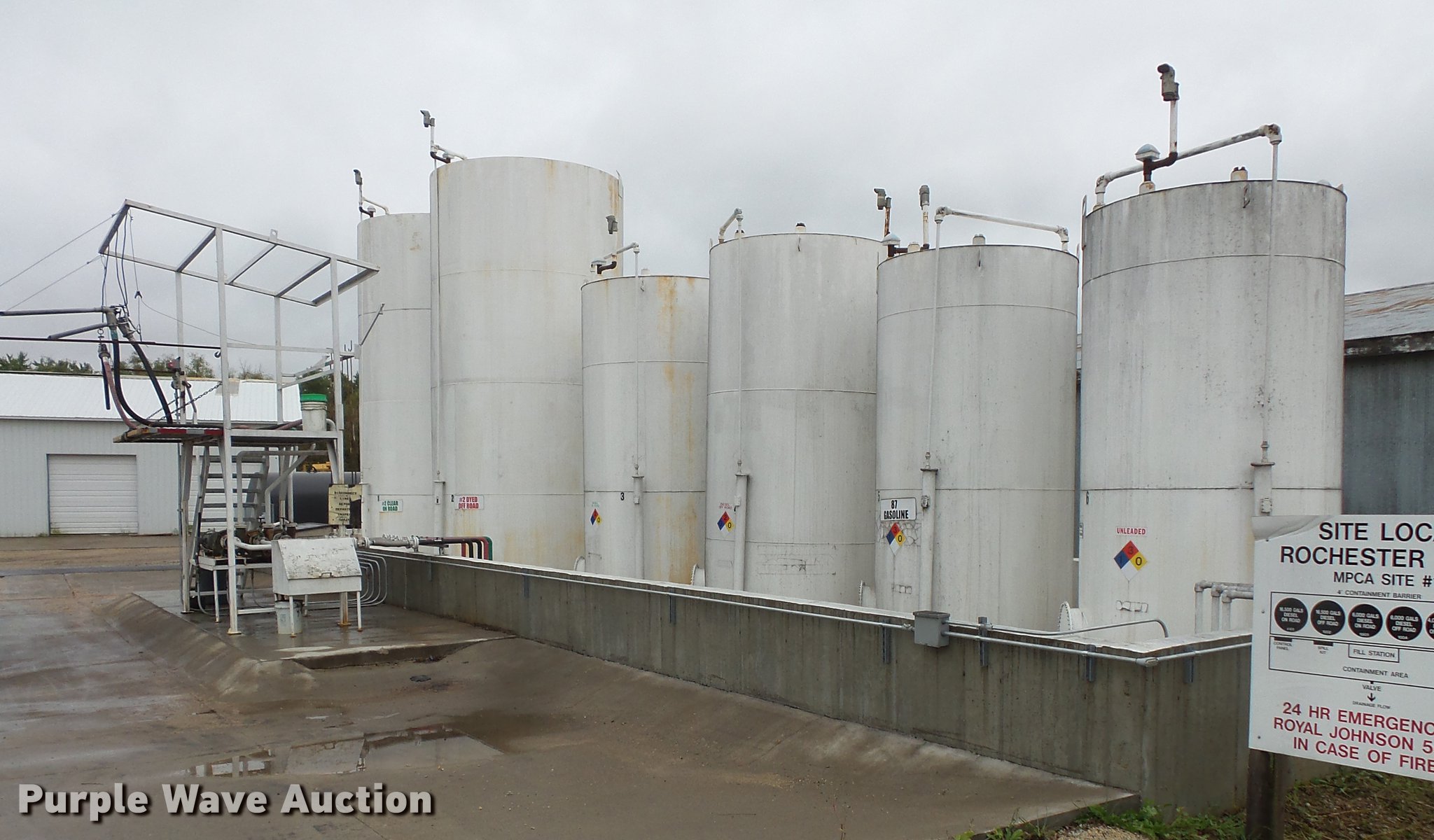 Fuel station. (6) tanks (2) 16,500 gallon capacity, (2) 6,000 gallon capacity, (2) 4,000 gallon capacity, Overhead load station, (3) pumps Single phase motors, 5 HP, 7'8" truck fill height, Unit will be disassembled prior to auction. Rochester Asphalt. 2904 County Rd 15 SW. Rochester, MN 55902