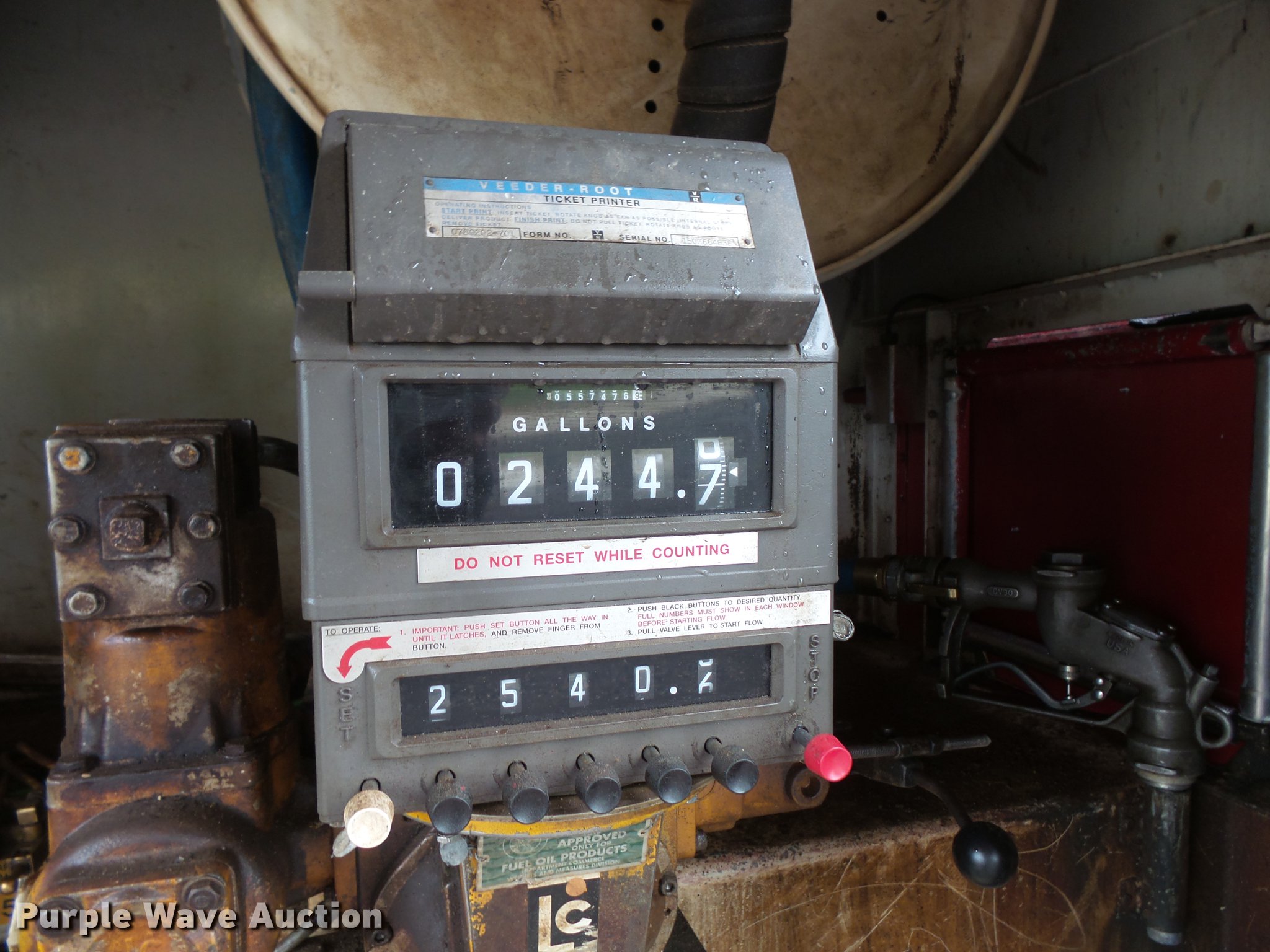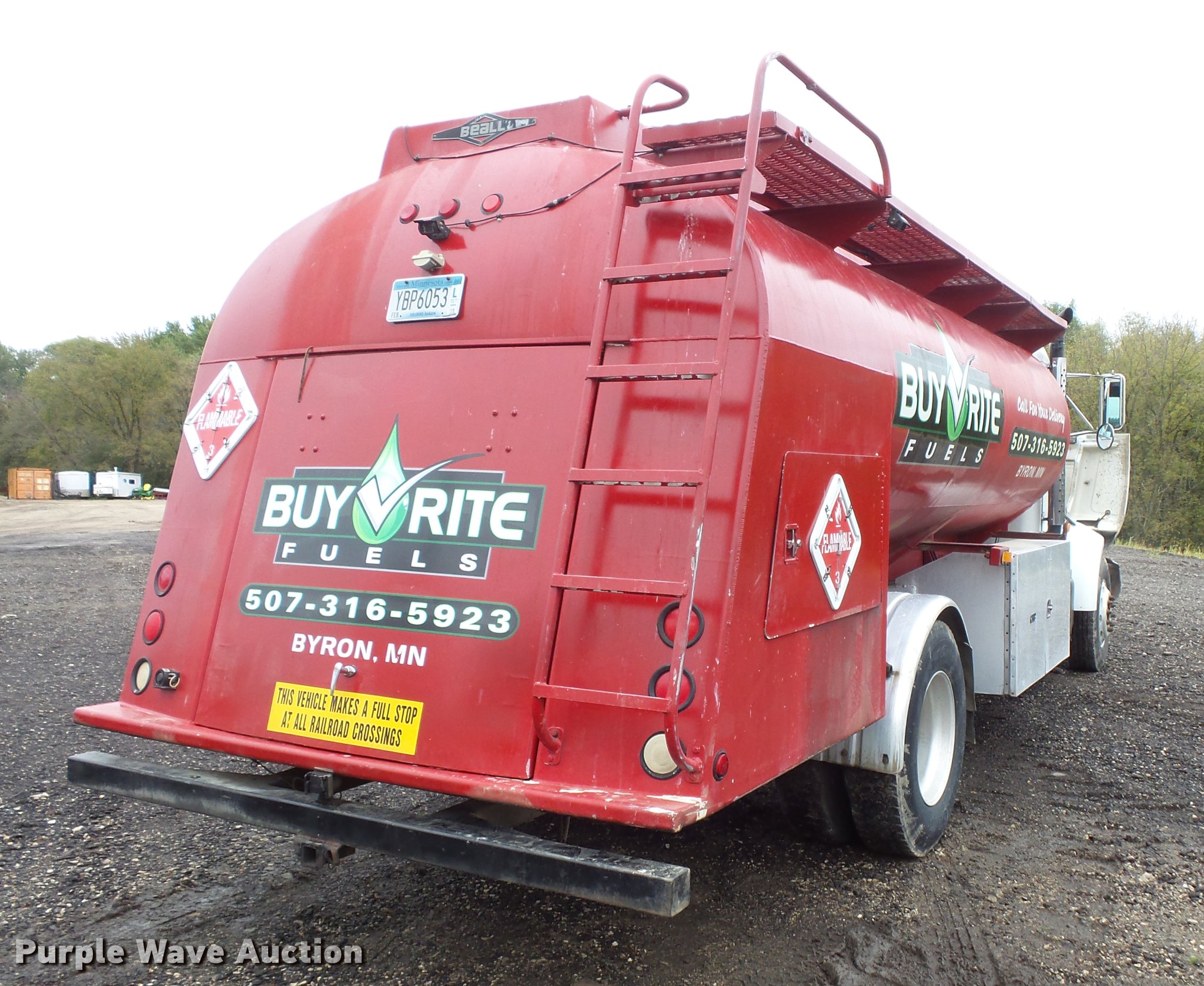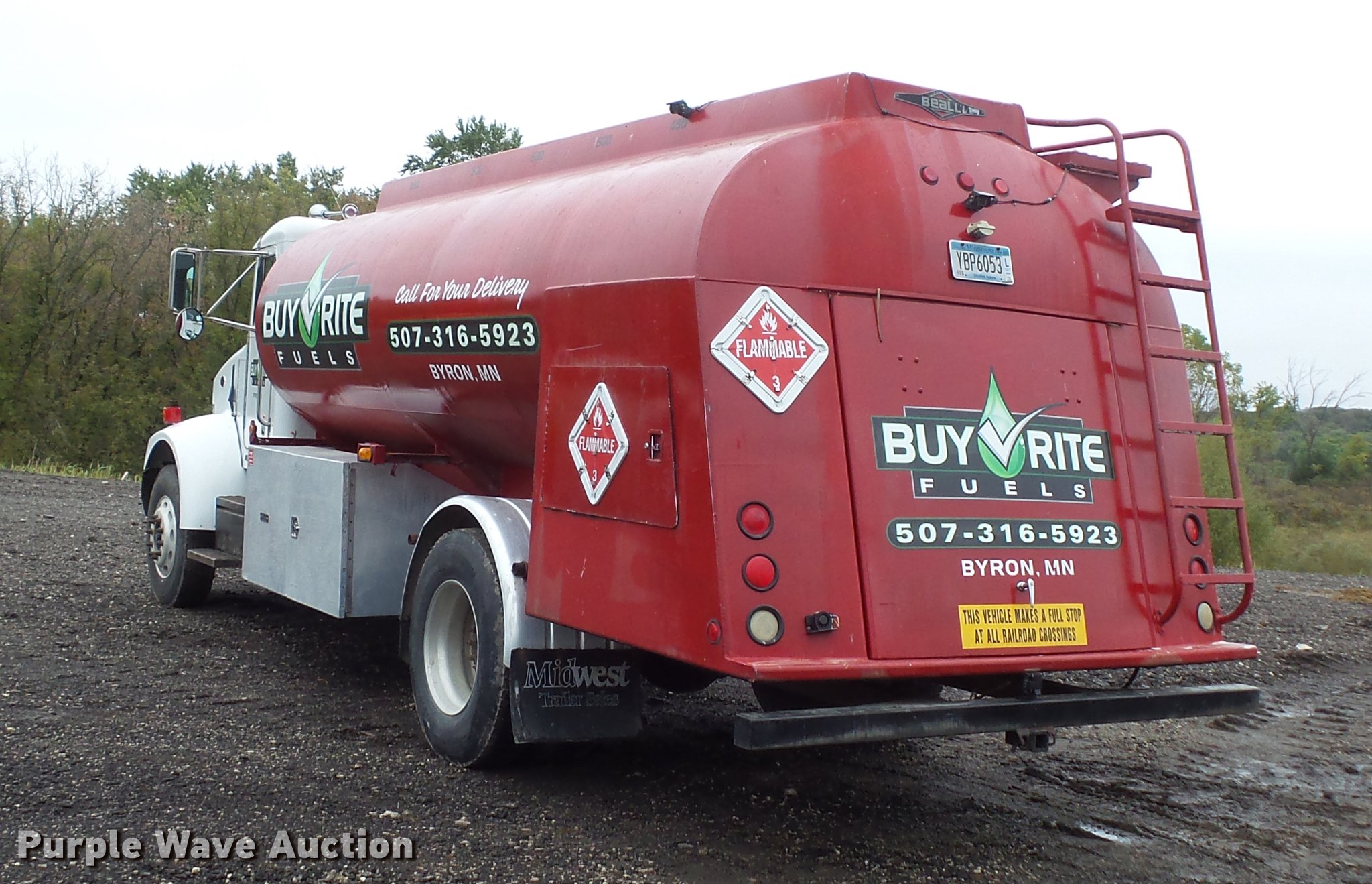 Purple Wave is selling a used Fuel Truck in Minnesota. This item is a 1995 Peterbilt 330 fuel truck with the following: 317,497 miles on odometer, Cummins 8.3L L6 turbo diesel engine, Eaton Fuller nine speed manual transmission, Single axle, Heat, AM/FM, Air suspension seat, Rear view camera, PTO, Backup alarm, 2002 Beall BABT285SB tank, 18'L, 2,800 gallon capacity, (5) compartments, (2) hose reels, Neptune pump, Veeder-root ticket printer, Ladder, Toolbox, Serial BT689802, Single fuel tank, Single exhaust stack, Spring suspension, Air brakes, 11R22.5 tires, GVWR 33,000 lbs