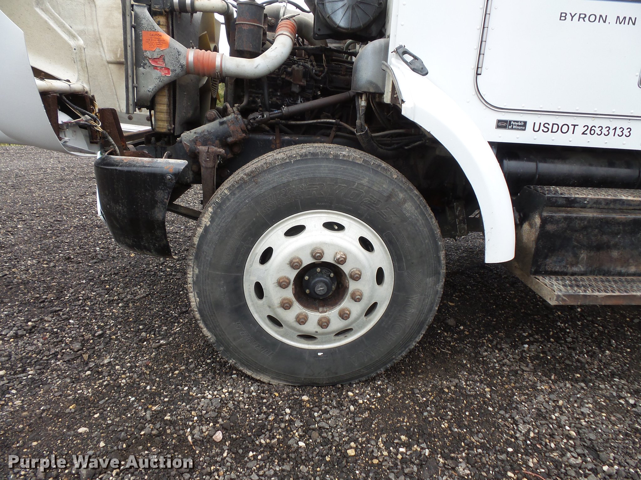 1995 Peterbilt 330 fuel truck. 317,497 miles on odometer, Cummins 8.3L L6 turbo diesel engine, Eaton Fuller nine speed manual transmission, Single axle, Heat, AM/FM, Air suspension seat, Rear view camera, PTO, Backup alarm, 2002 Beall BABT285SB tank 18'L, 2,800 gallon capacity, (5) compartments, (2) hose reels, Neptune pump, Veeder-root ticket printer, Ladder, Toolbox, Serial BT689802, Single fuel tank, Single exhaust stack, Spring suspension, Air brakes, 11R22.5 tires, GVWR 33,000 lbs. View repairs. Minnesota title. Title has a lien that will be released following the close of the auction. Title distribution may be delayed up to 30 days from verification of funds. 1XPNH77X9SN381958. Rochester Asphalt. 2904 County Rd 15 SW. Rochester, MN 55902