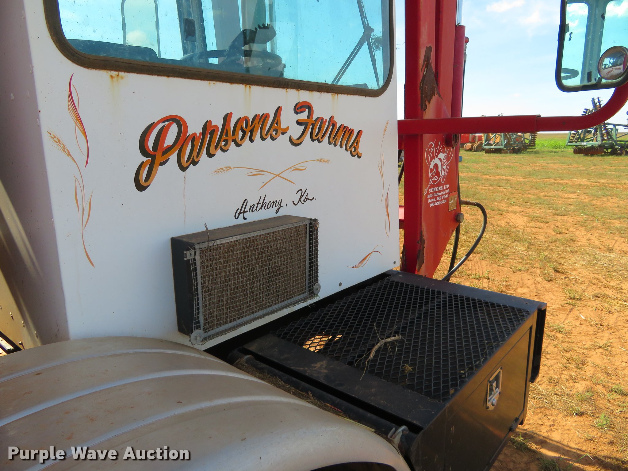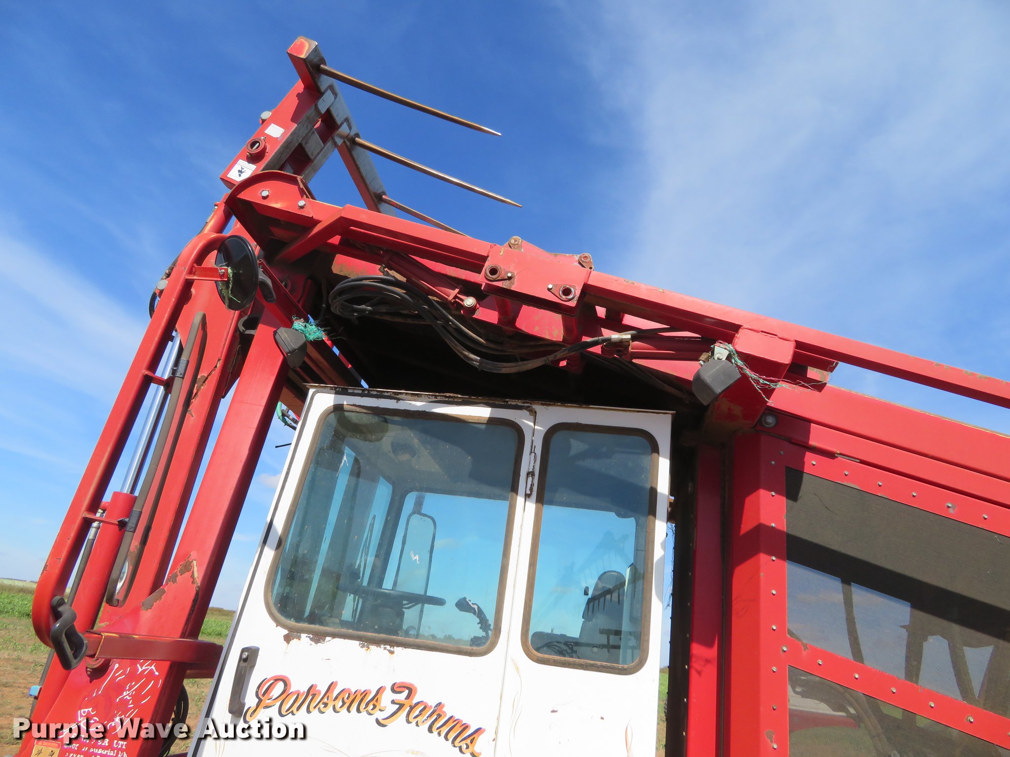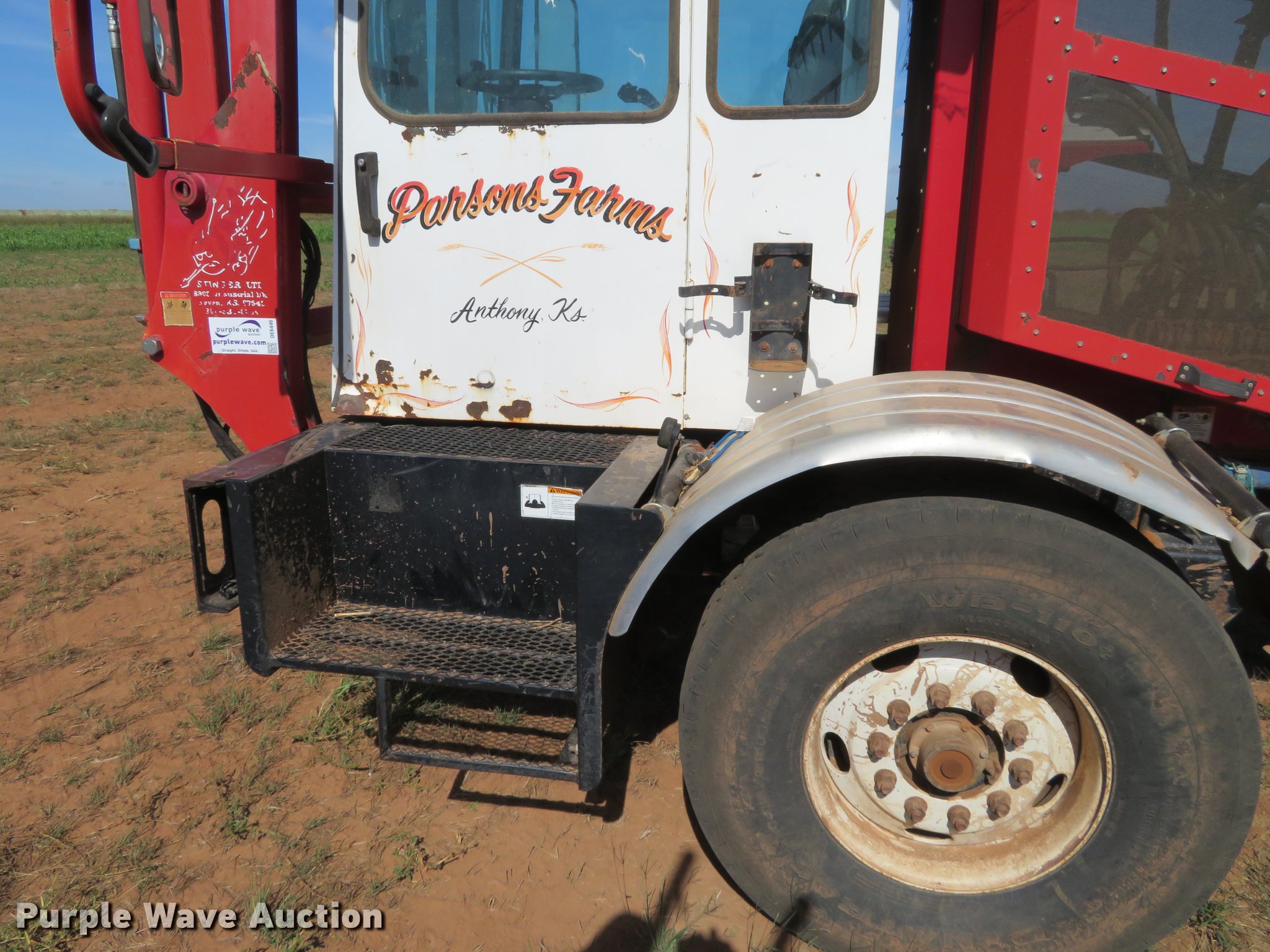Stinger 6500 hay bale stacker. 85,032 miles on odometer, Six cylinder diesel engine, Allison automatic transmission, AC and heat, AM/FM, Air suspension seat, Work lights, Hydraulic operation, Spring suspension, Air brakes, 445/65R22.5 front tires, 700/50-22.5 rear tires, Unknown operating condition, Repossessed asset; no condition history available. Item may be missing components that may effect operating condition. Bidders are encouraged to physically inspect prior to placing bids., Serial 378. Anthony, KS 67003