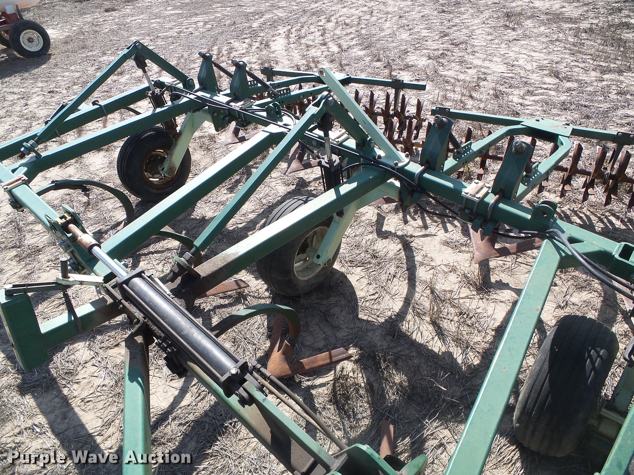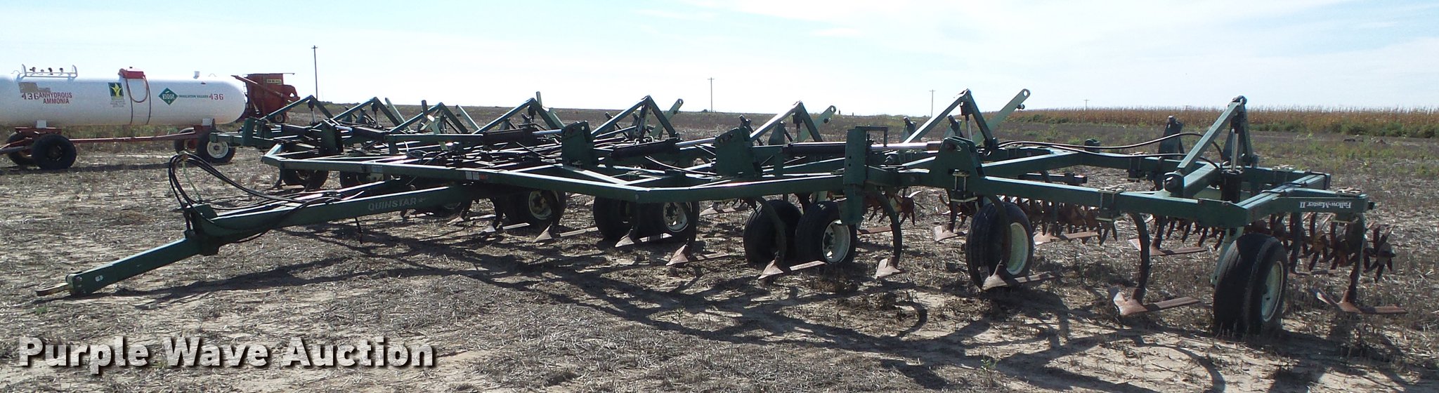Purple Wave is selling a used Field Cultivator or Sweep Plow in Kansas. This item is a QuinStar Fallow Master II field cultivator with the following: 50'W, 26"W sweeps, Rolling pickers/treader, Manual leveler, Hydraulic lift and fold, Slab hitch, 11L-15 tires, Hydraulic cylinder bent, Will be replaced prior to auction, Hitch tongue bent