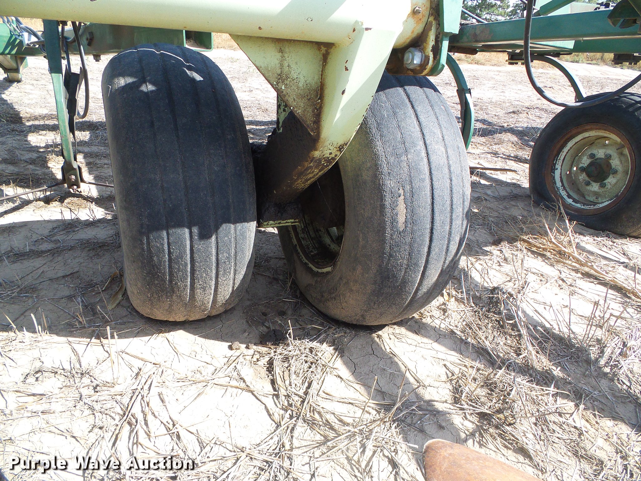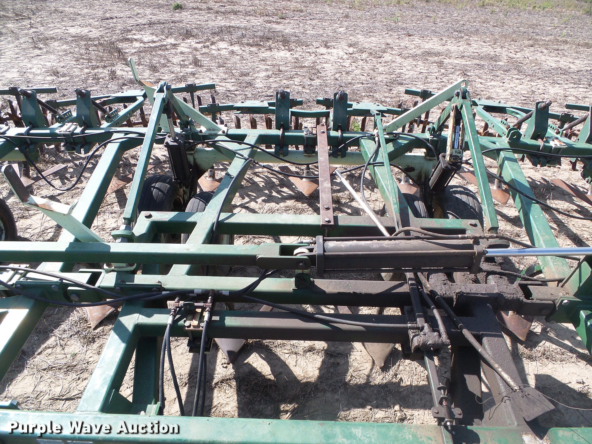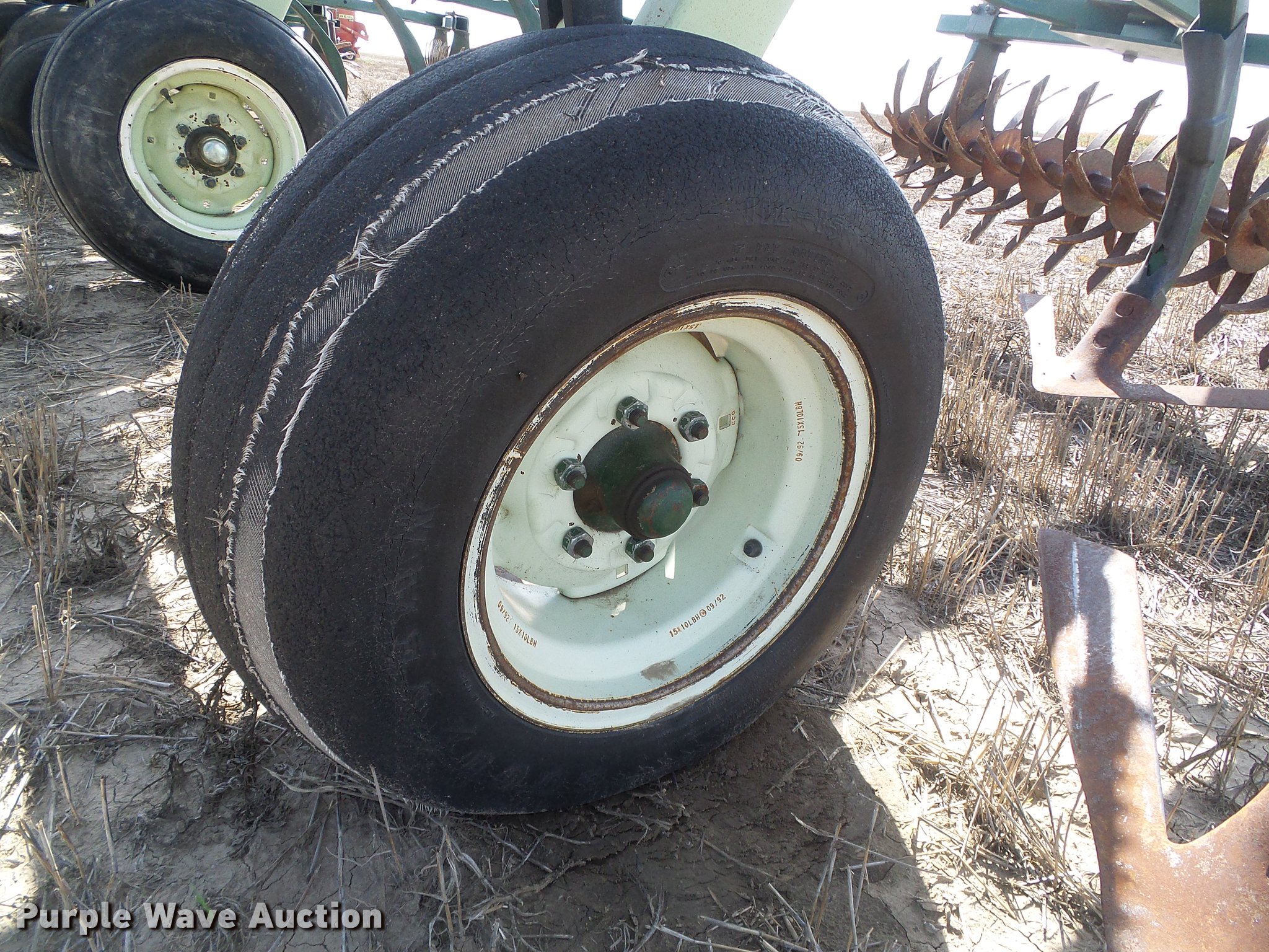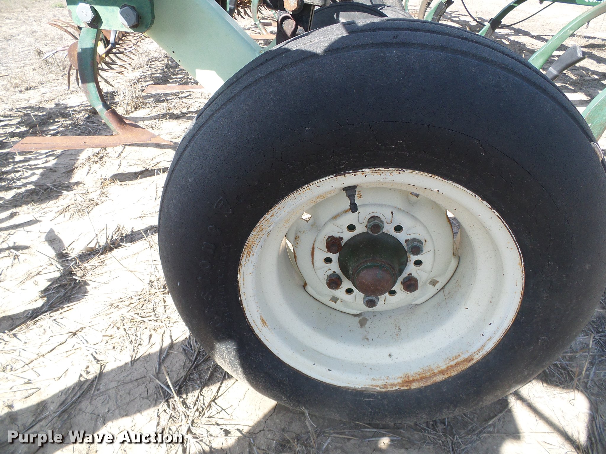 QuinStar Fallow Master II field cultivator. 50'W, 26"W sweeps, Rolling pickers/treader, Manual leveler, Hydraulic lift and fold, Slab hitch, 11L-15 tires, Hydraulic cylinder bent Will be replaced prior to auction, Hitch tongue bent. 11225 E Gano Rd. Garden City, KS 67846