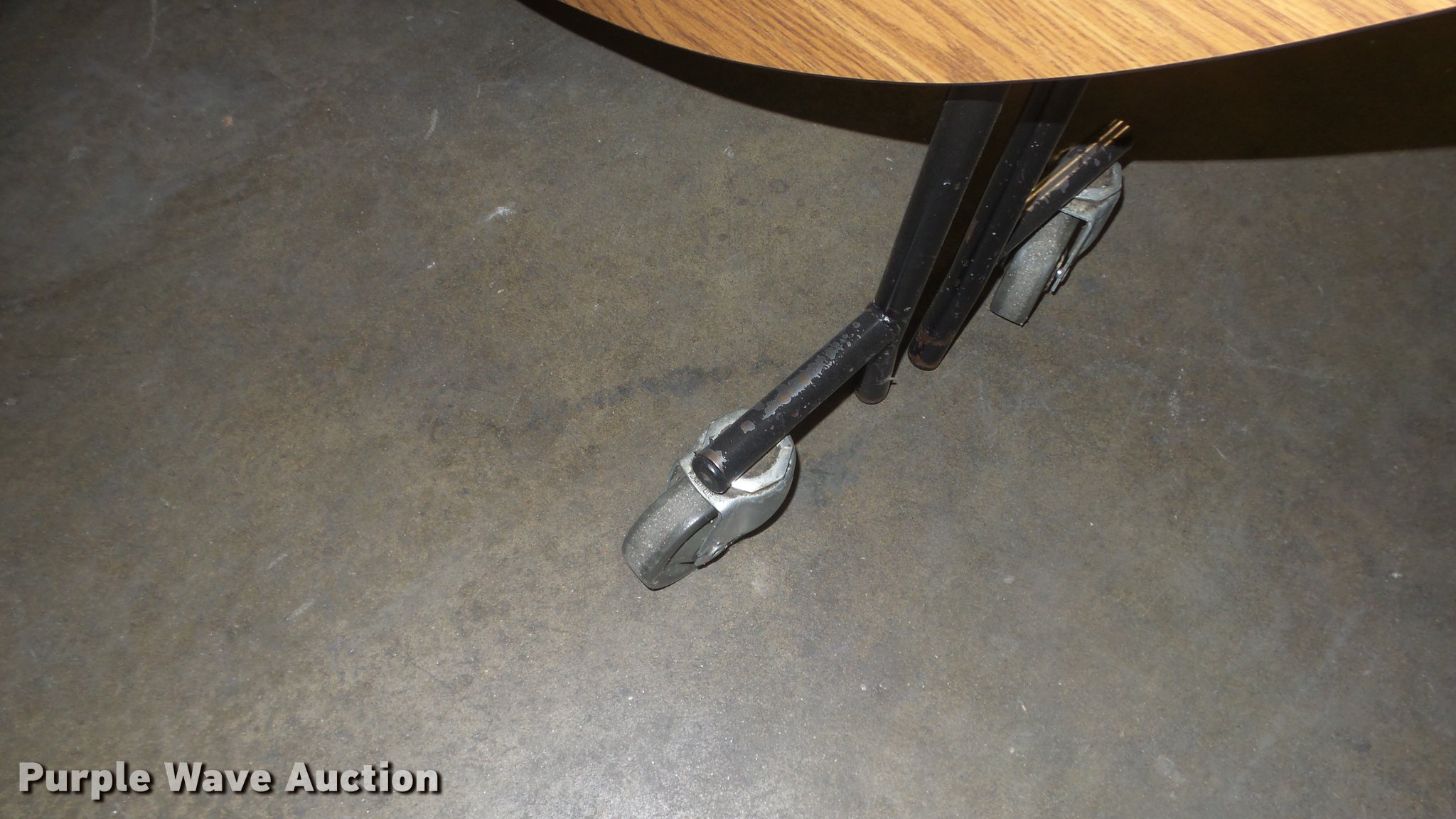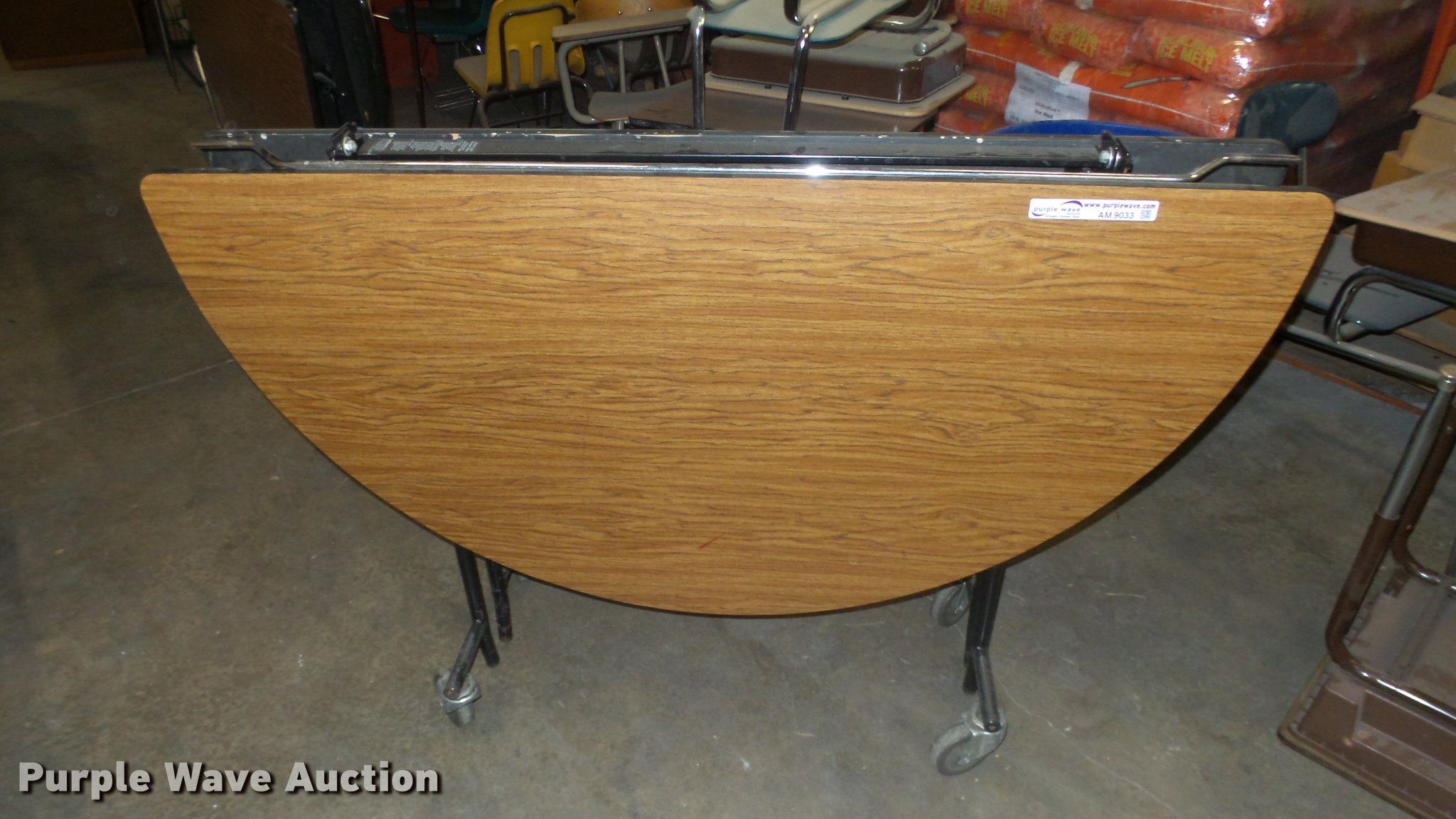 Purple Wave is selling a used Furniture in Kansas. This item is a (2) Midwest folding round tables with the following: Approx. 60"W, Wheels