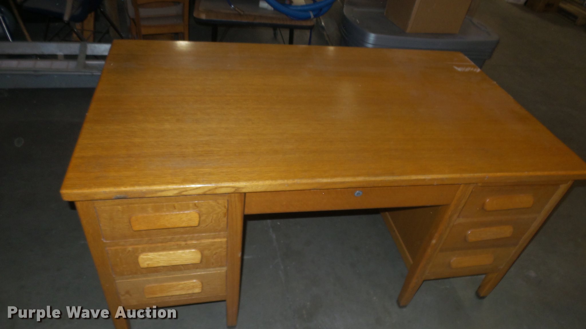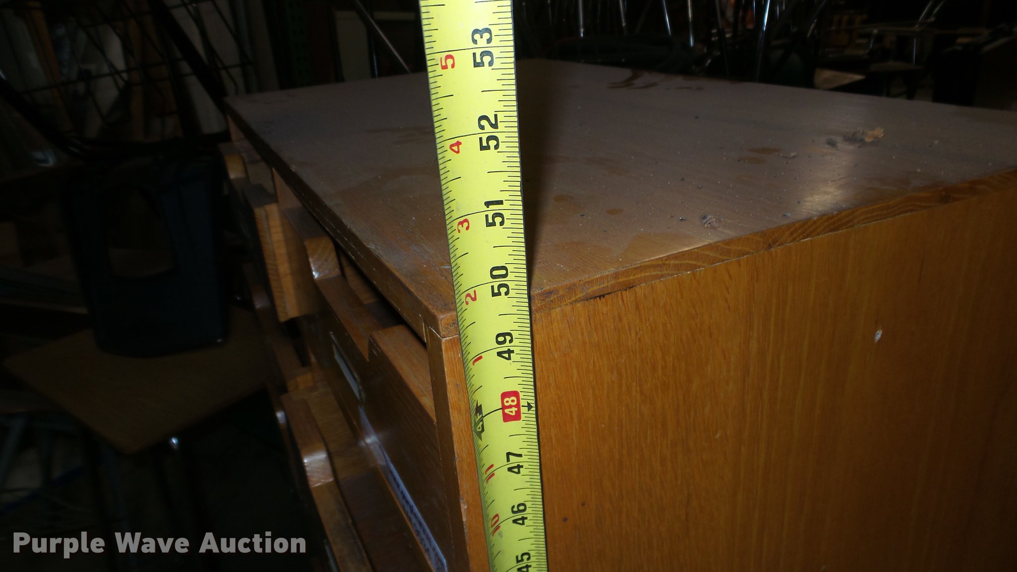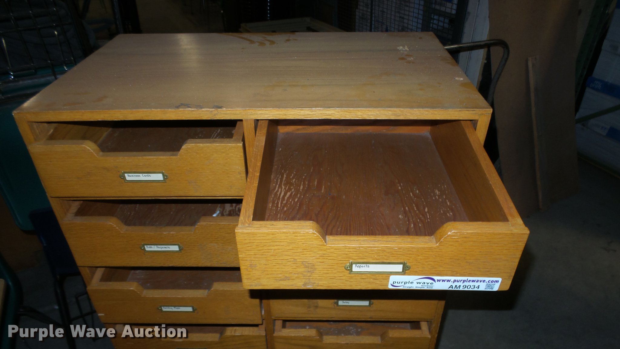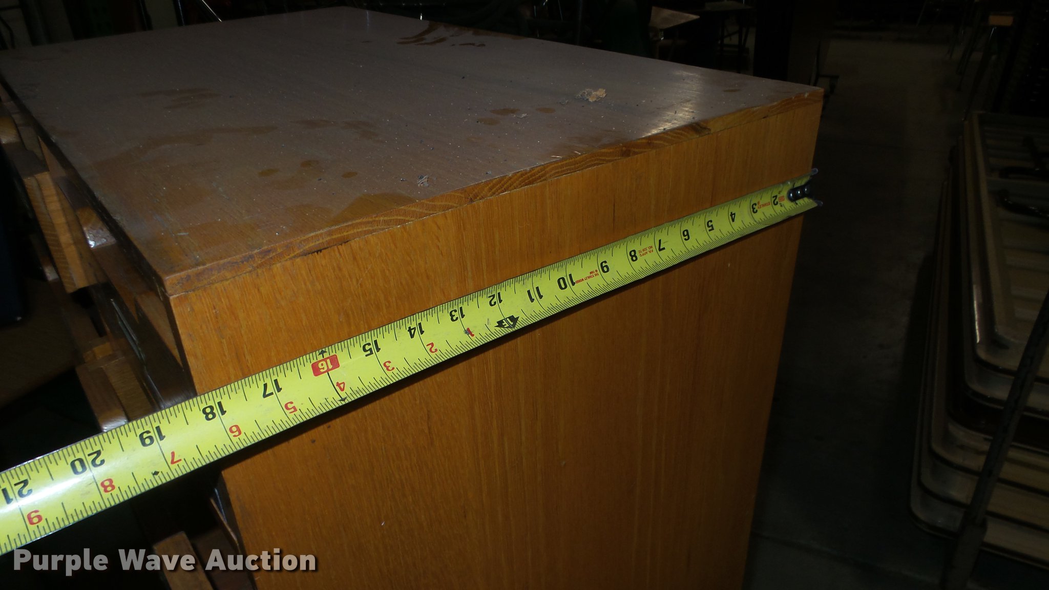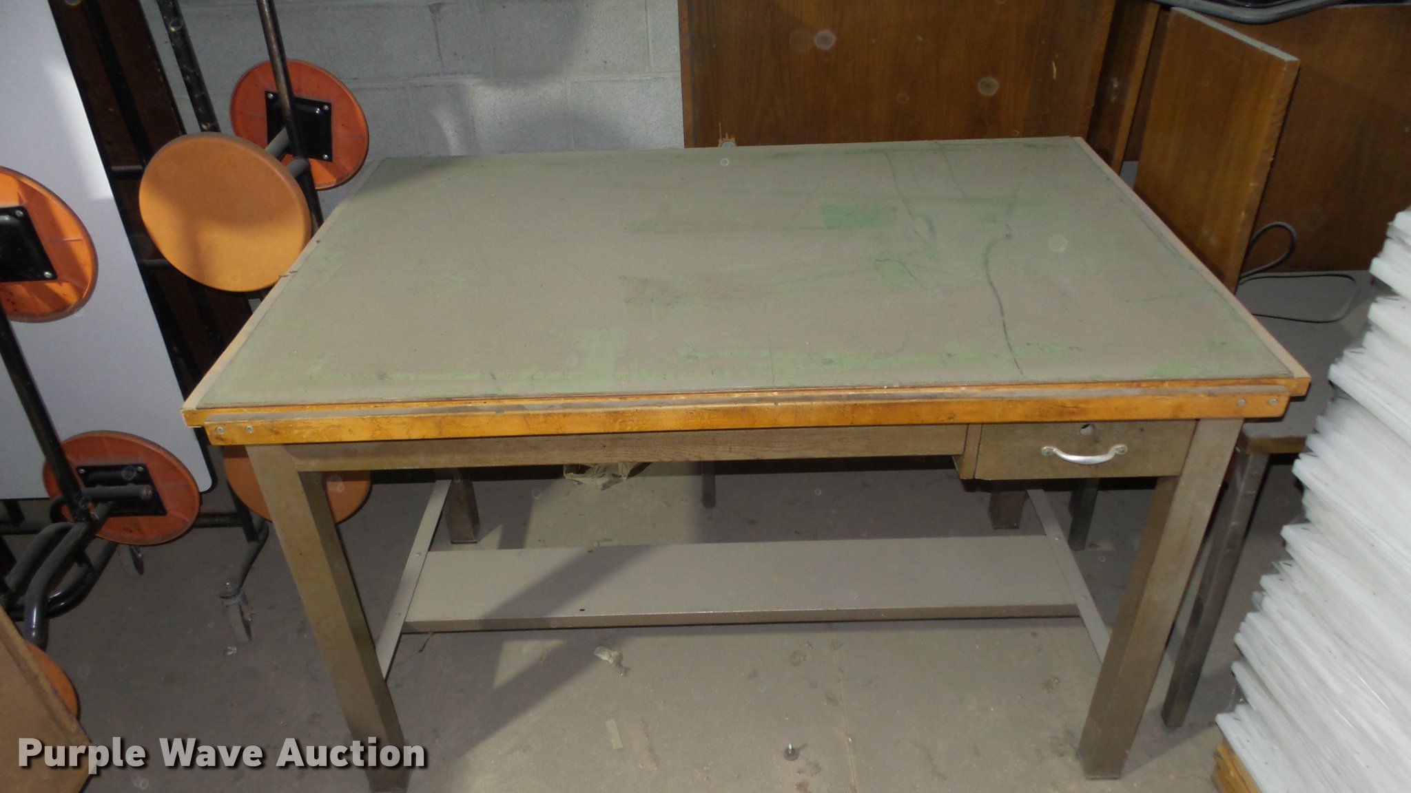 Purple Wave is selling a used Furniture in Kansas. This item is a Wood furniture with the following: Cabinet with drawers, (3) tables, Desk