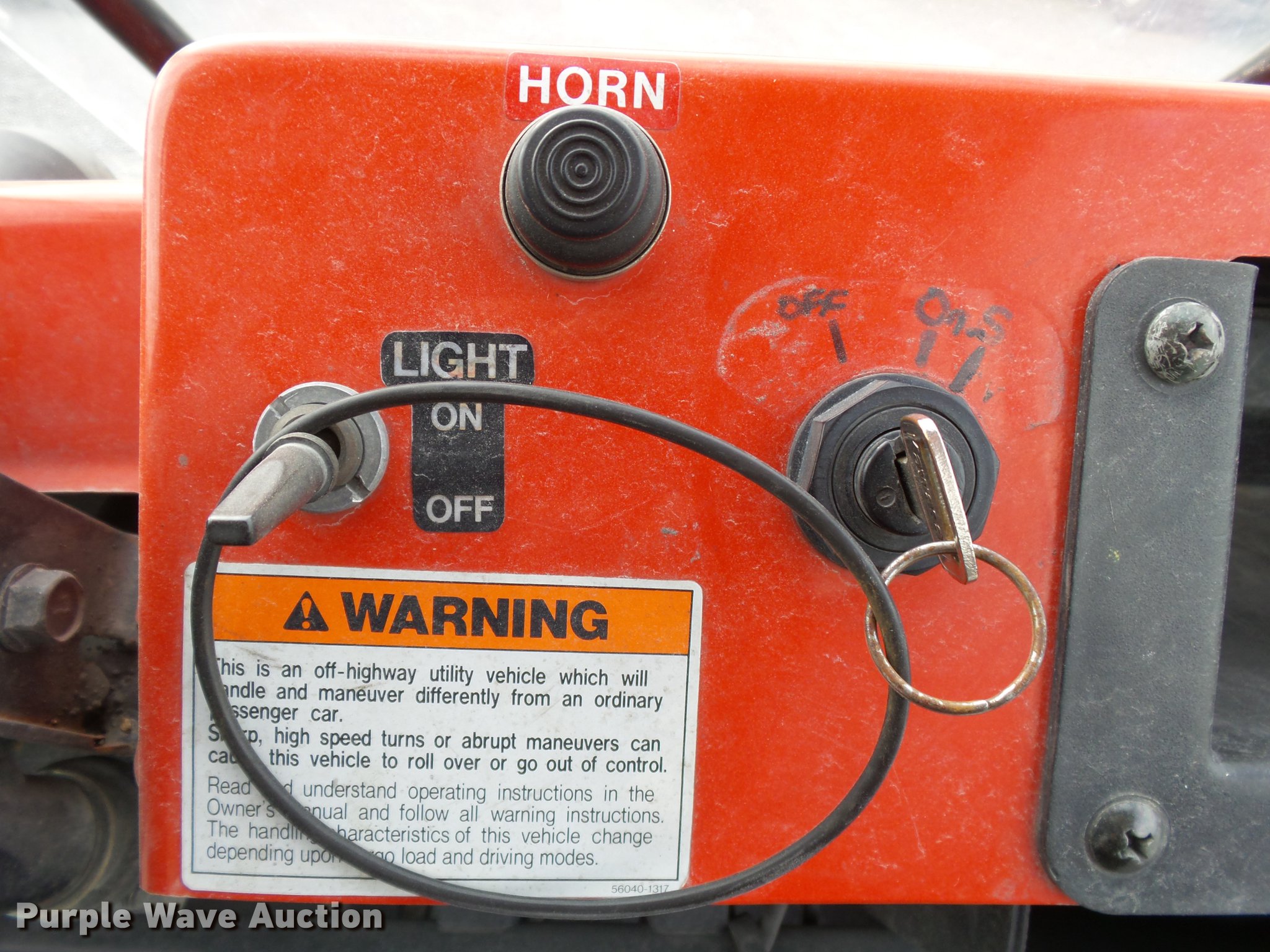 Purple Wave is selling a used Utility Vehicle in Missouri. This item is a 2001 Kawasaki 550 utility vehicle with the following: 1,066 hours on meter, Single cylinder gas engine, Automatic transmission, OROPS, Single seat, Manual dump bed, 22 x 8-10 front tires, 22 x 11-10 rear tires, Transmission issues