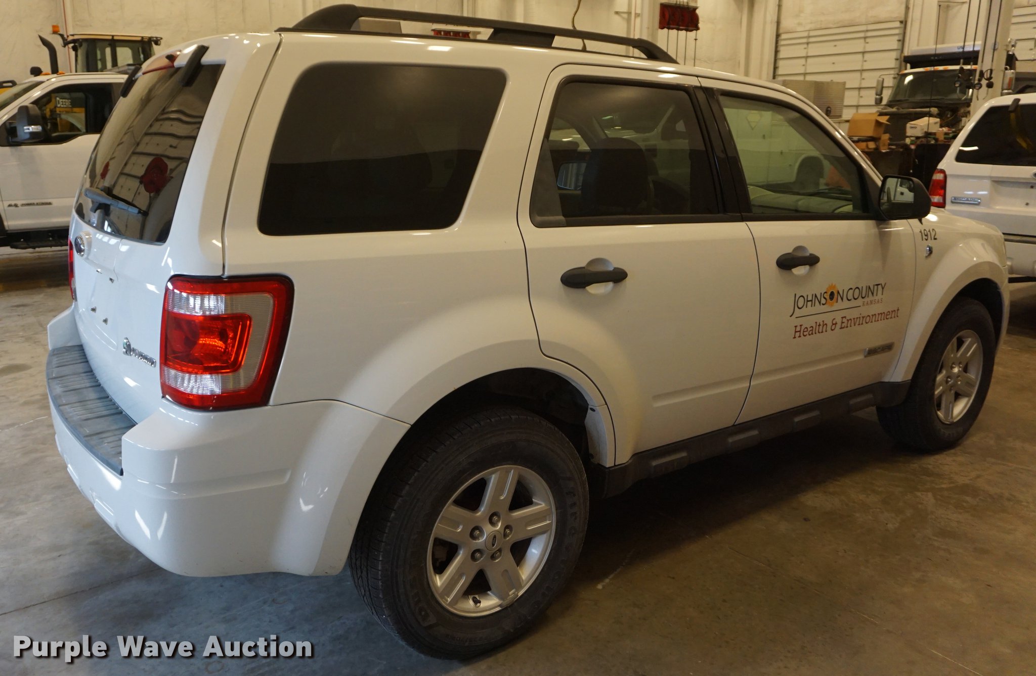 Purple Wave is selling a used Passenger Vehicle in Kansas. This item is a 2008 Ford Escape Hybrid SUV with the following: 83,917 miles on odometer, 2.3L L4 DOHC 16V hybrid gas engine, Automatic transmission, AC and heat, Tilt, Cruise, AM/FM/CD, Power windows, locks, mirrors, and seat, Cloth interior, 235/70R16 tires, Decals will be removed prior to auction, Unit# DHE1912