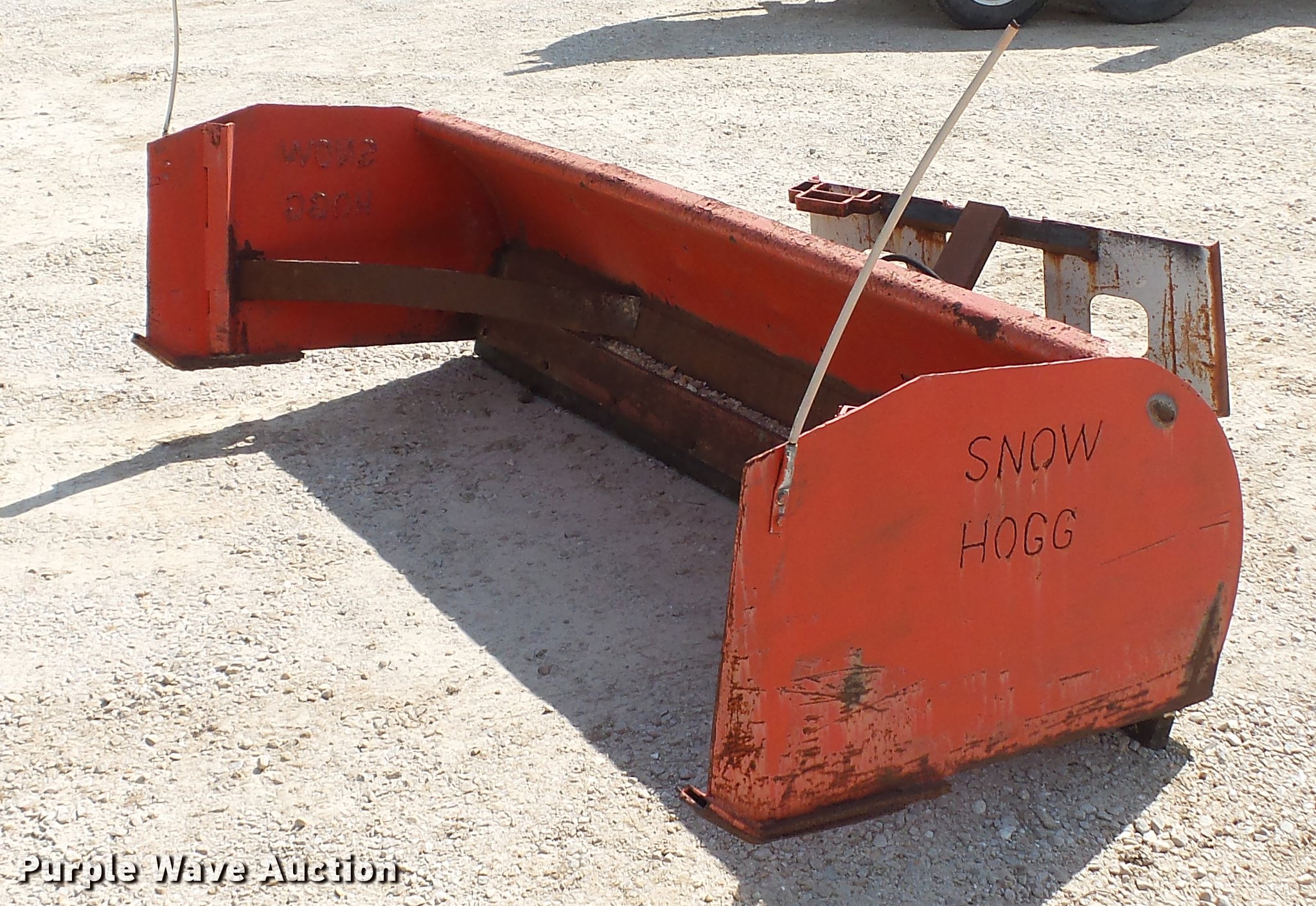 Purple Wave is selling a used Skid Steer Attach. in Missouri. This item is a Snow Hogg skid steer snow plow with the following: 95"W, Bolt-on rubber cutting edge, Left and right hydraulic angle