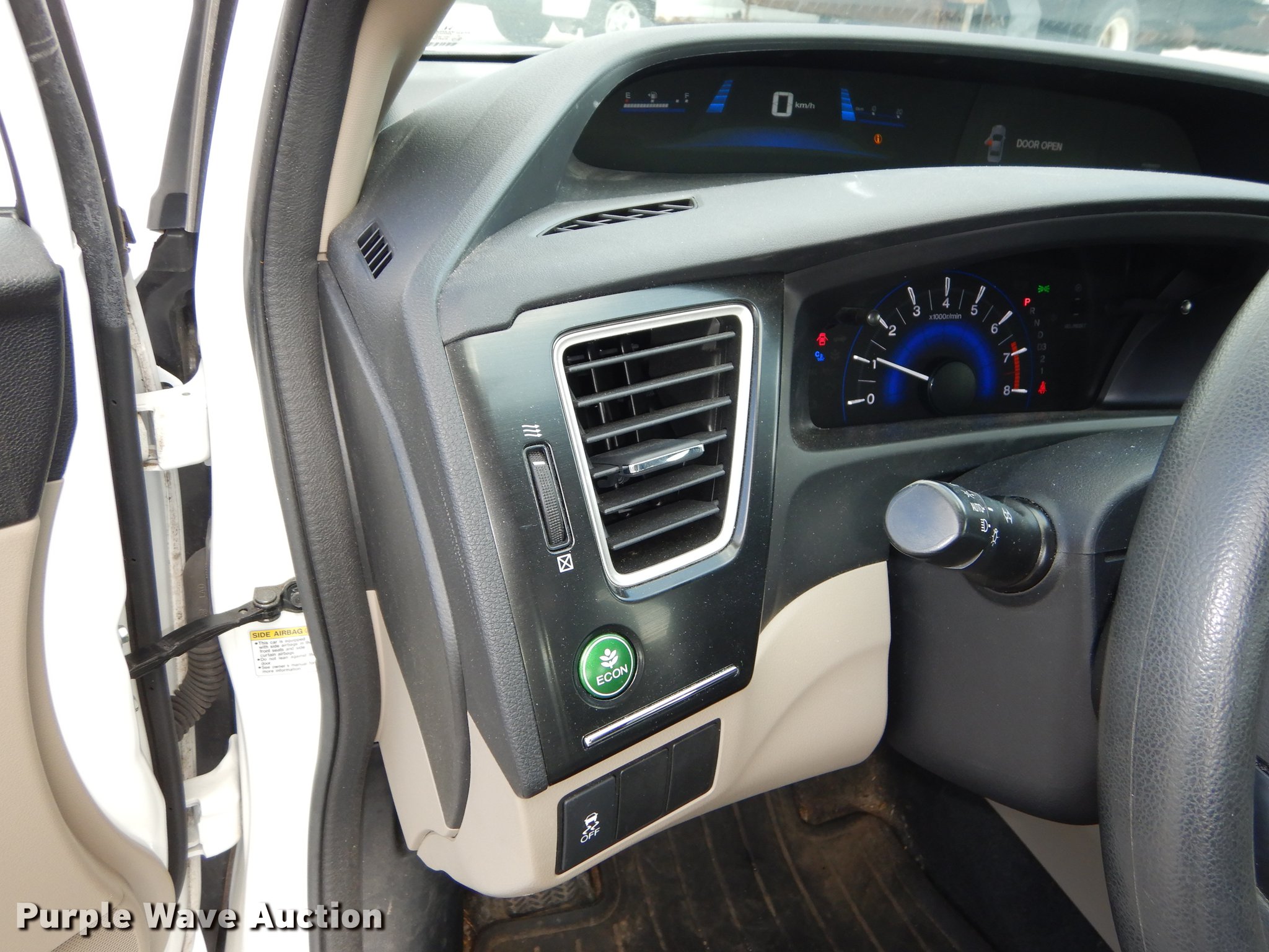 Purple Wave is selling a used Passenger Vehicle in Kansas. This item is a 2013 Honda Civic with the following: 29,921 km on meter, 1.8L L4 SOHC 16V CNG engine, Automatic transmission, AC and heat, Tilt, Cruise, AM/FM/CD, Power windows, locks, and mirrors, Cloth interior, 195/65R15 tires