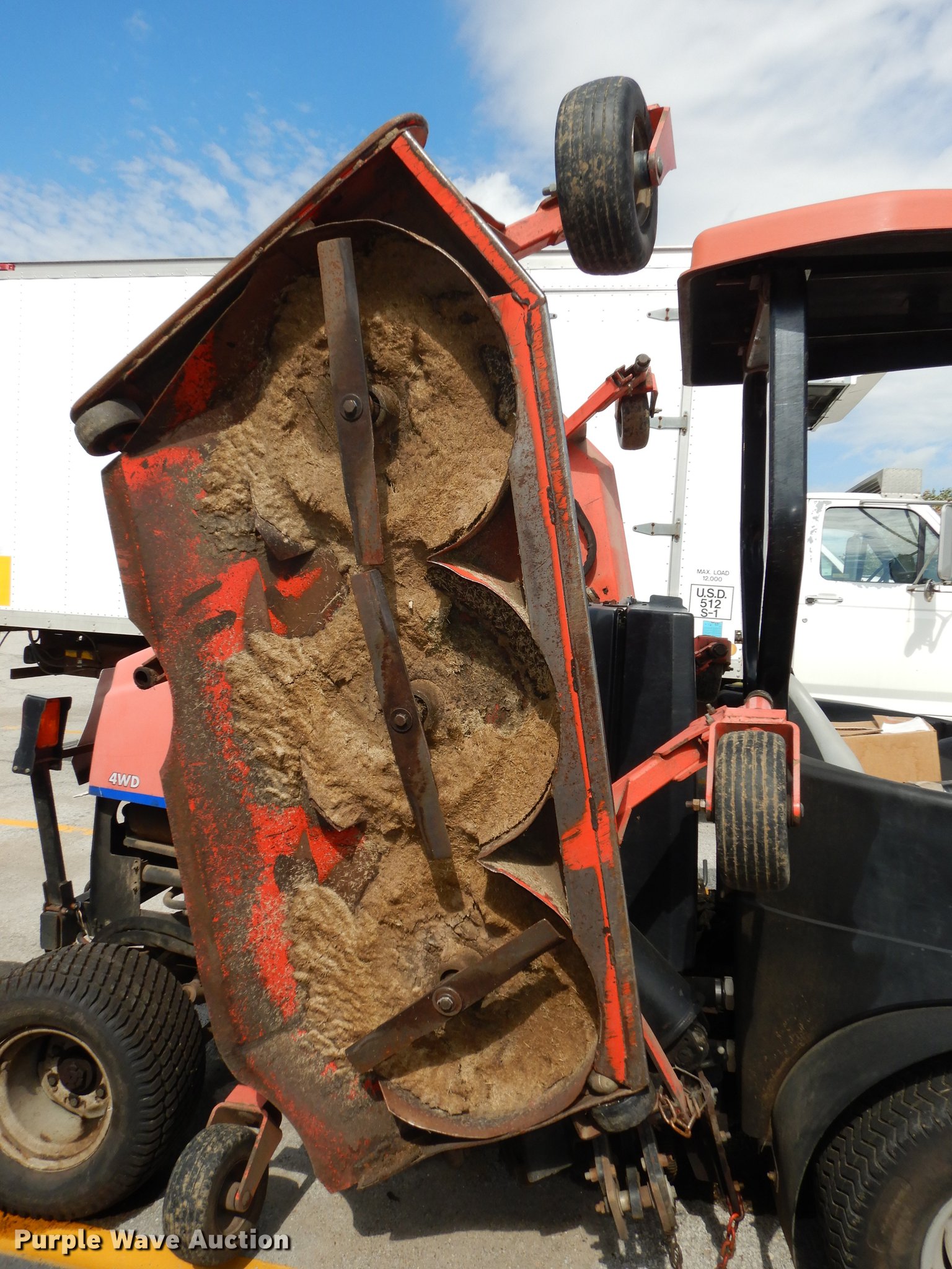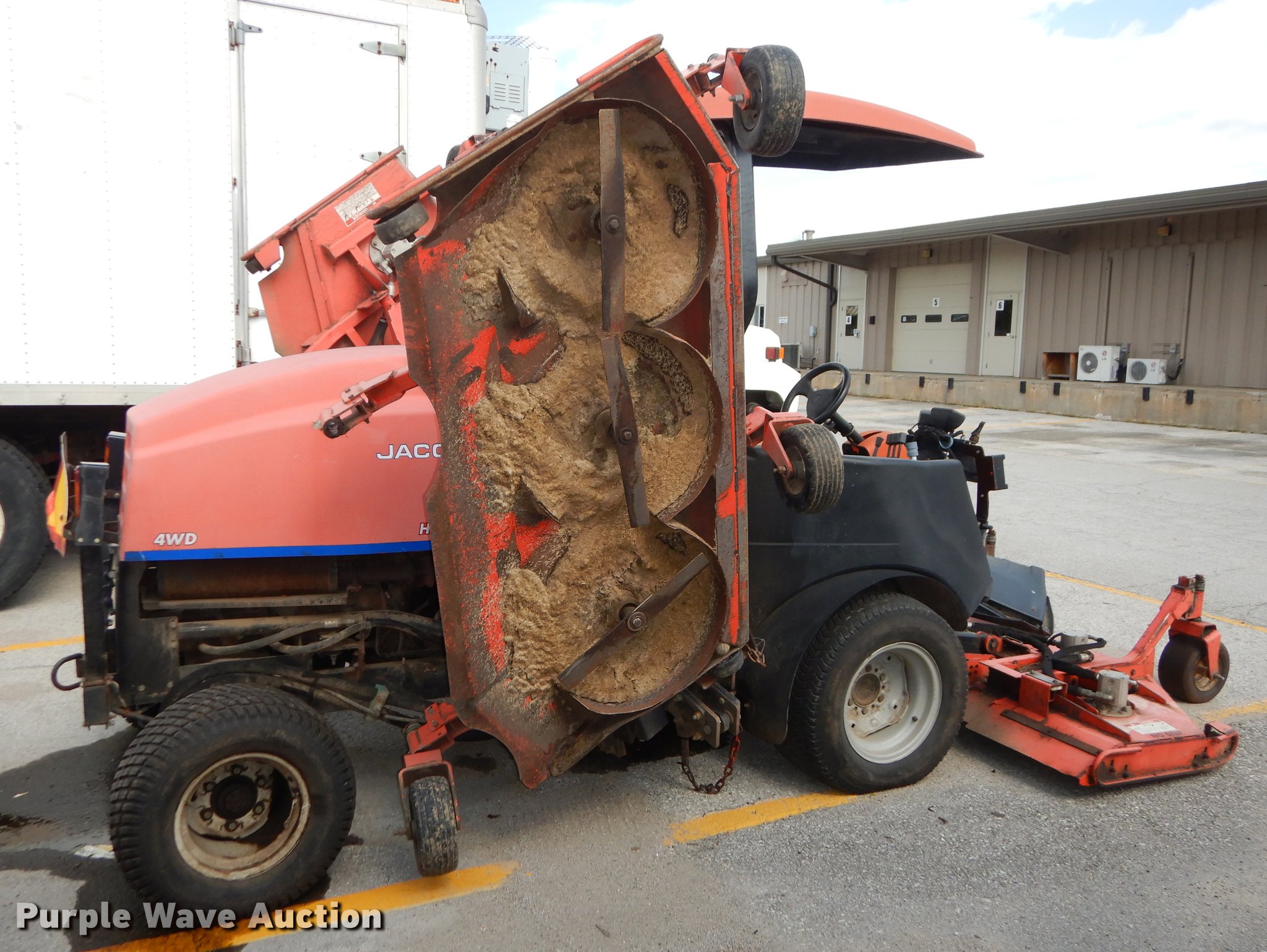 Purple Wave is selling a used Commercial Turf Mower in Kansas. This item is a Jacobsen HR9016 lawn mower with the following: 3,289 hours on meter, 18'W cut, Four cylinder turbo diesel engine, Hydrostatic transmission, Four wheel drive, Hydraulic lift and fold, 24x14.00-15 front tires, 24x12.00-12 rear tires, Engine issues, Injector pump and injector issues, Non-operational unit, Serial 70524