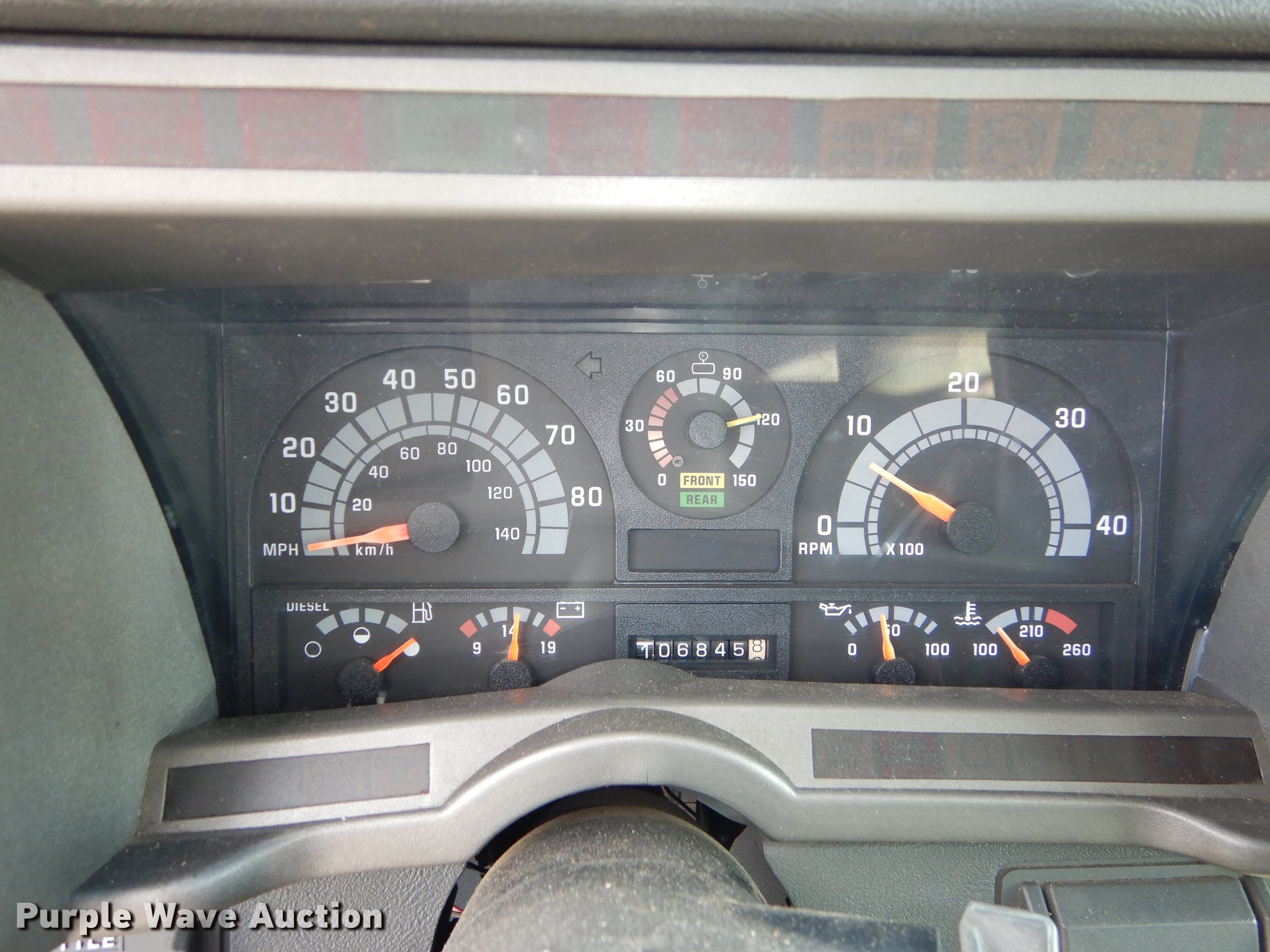Purple Wave is selling a used Box Truck in Kansas. This item is a 2002 GMC C6500 box truck with the following: 106,845 miles on odometer, Caterpillar 3126 7.2L six cylinder turbo diesel engine, 210 HP, Allison automatic transmission, Single axle, Heat, Air suspension seat, Brown box bed, 20'L x 8'W, Wood floor, Translucent roof, Roll up rear door, Waltco end gate lift, 3,500 lbs capacity,, Single fuel tank, Spring suspension, Air brakes, 11R22.5 tires, GVWR 25,950 lbs