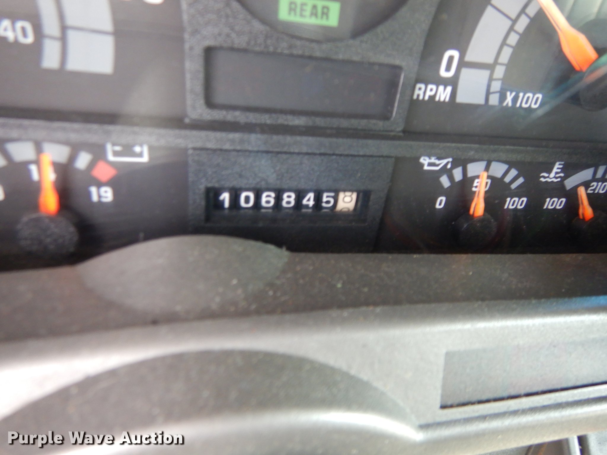 2002 GMC C6500 box truck. 106,845 miles on odometer, Caterpillar 3126 7.2L six cylinder turbo diesel engine 210 HP, Allison automatic transmission, Single axle, Heat, Air suspension seat, Brown box bed 20'L x 8'W, Wood floor, Translucent roof, Roll up rear door, Waltco end gate lift 3,500 lbs capacity, Single fuel tank, Spring suspension, Air brakes, 11R22.5 tires, GVWR 25,950 lbs. Kansas title. Title distribution may be delayed up to 14 days from verification of funds. 1GDK7H1C12J513052. Shawnee Mission School District. Overland Park, KS 66210