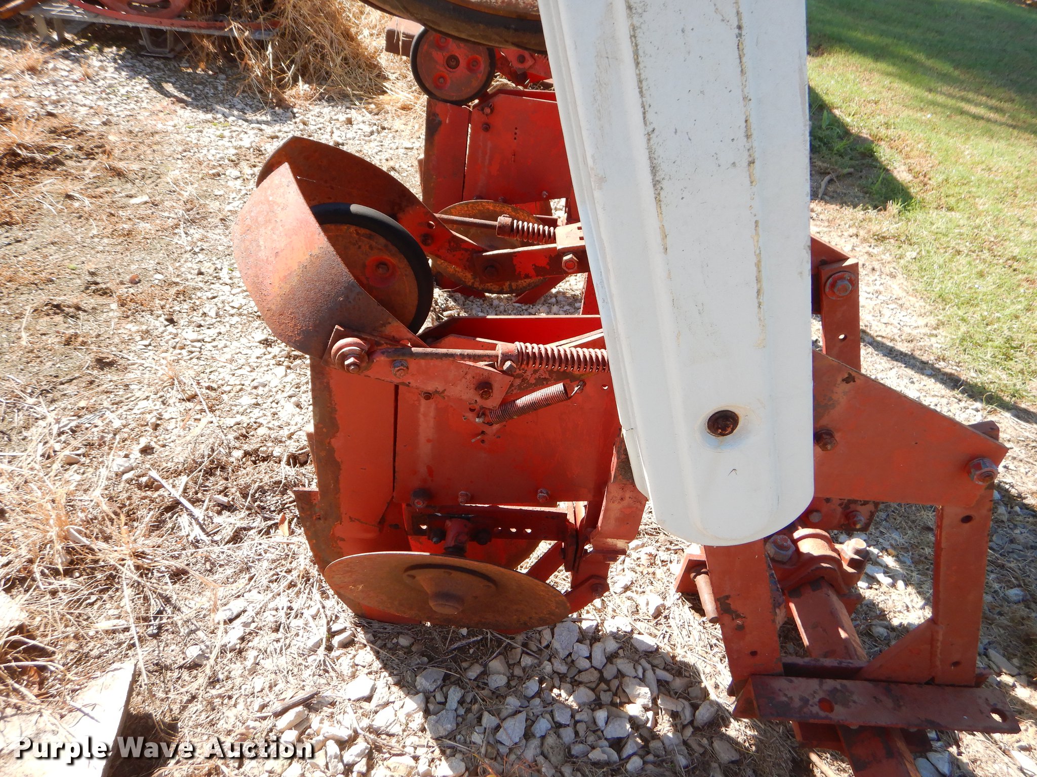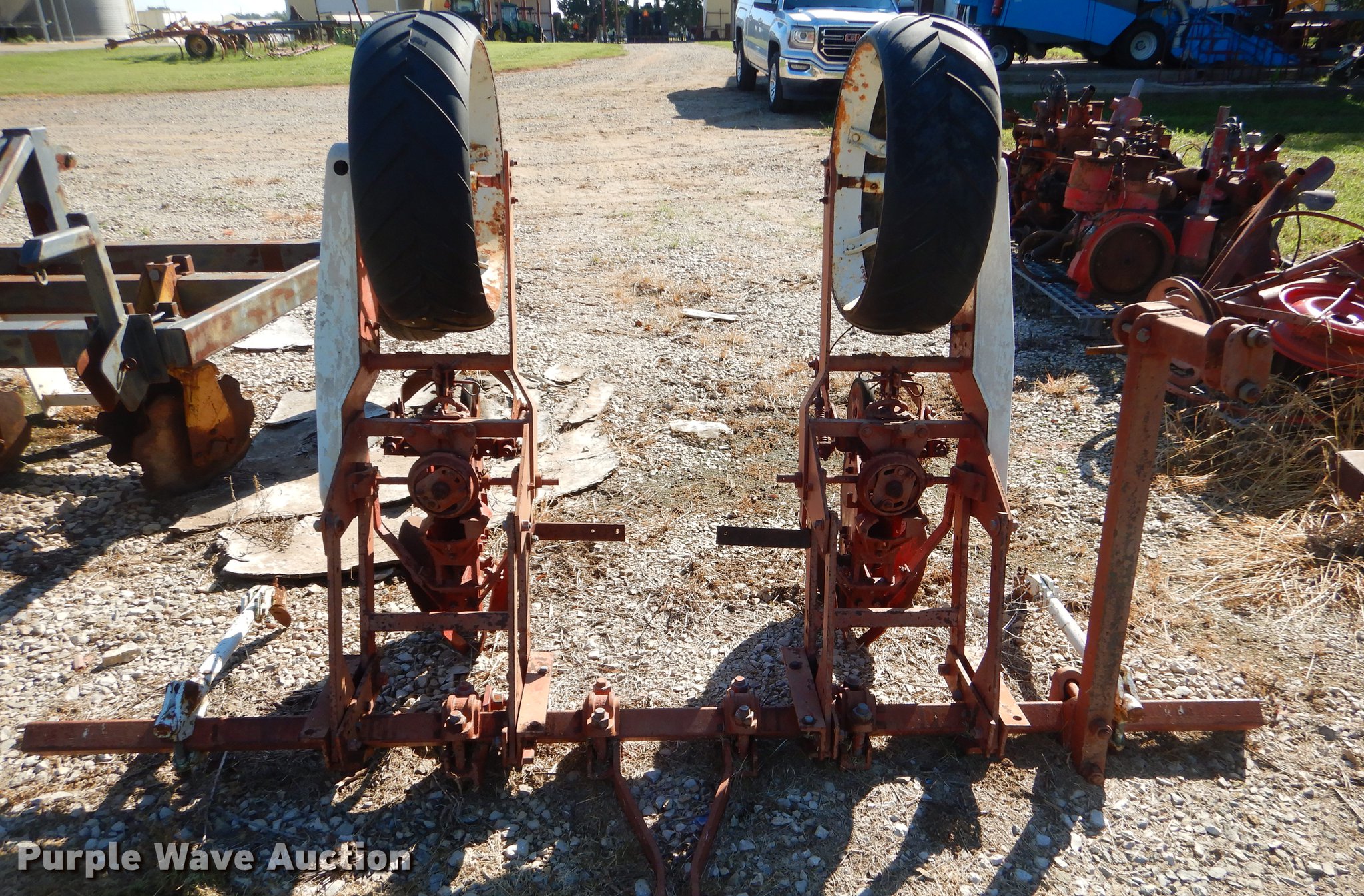 Purple Wave is selling a used Planter in Oklahoma. This item is a Two row planter with the following: 92"W, 12" diameter front blades, 37" spacing, Disk scrapers, Two point, 21" solid tires, Unknown operating condition, Parts may be missing, Sale# 1914-KP