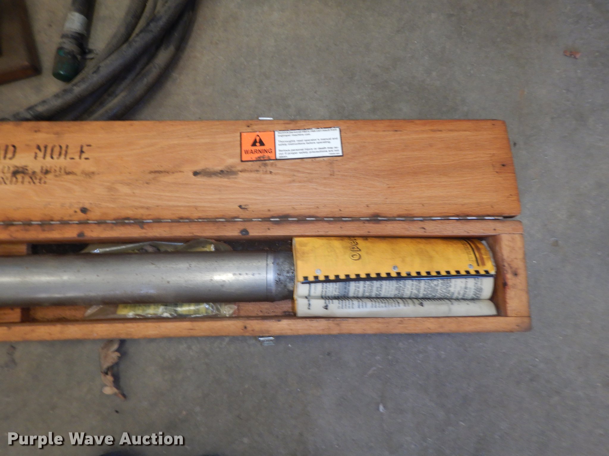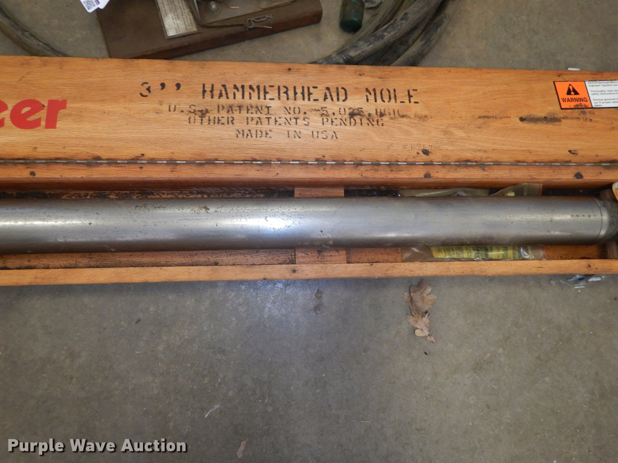 Purple Wave is selling a used Pipe Pusher or Piercing Mole in Kansas. This item is a Vermeer hammer head mole with the following: 3', Hose, Oiler