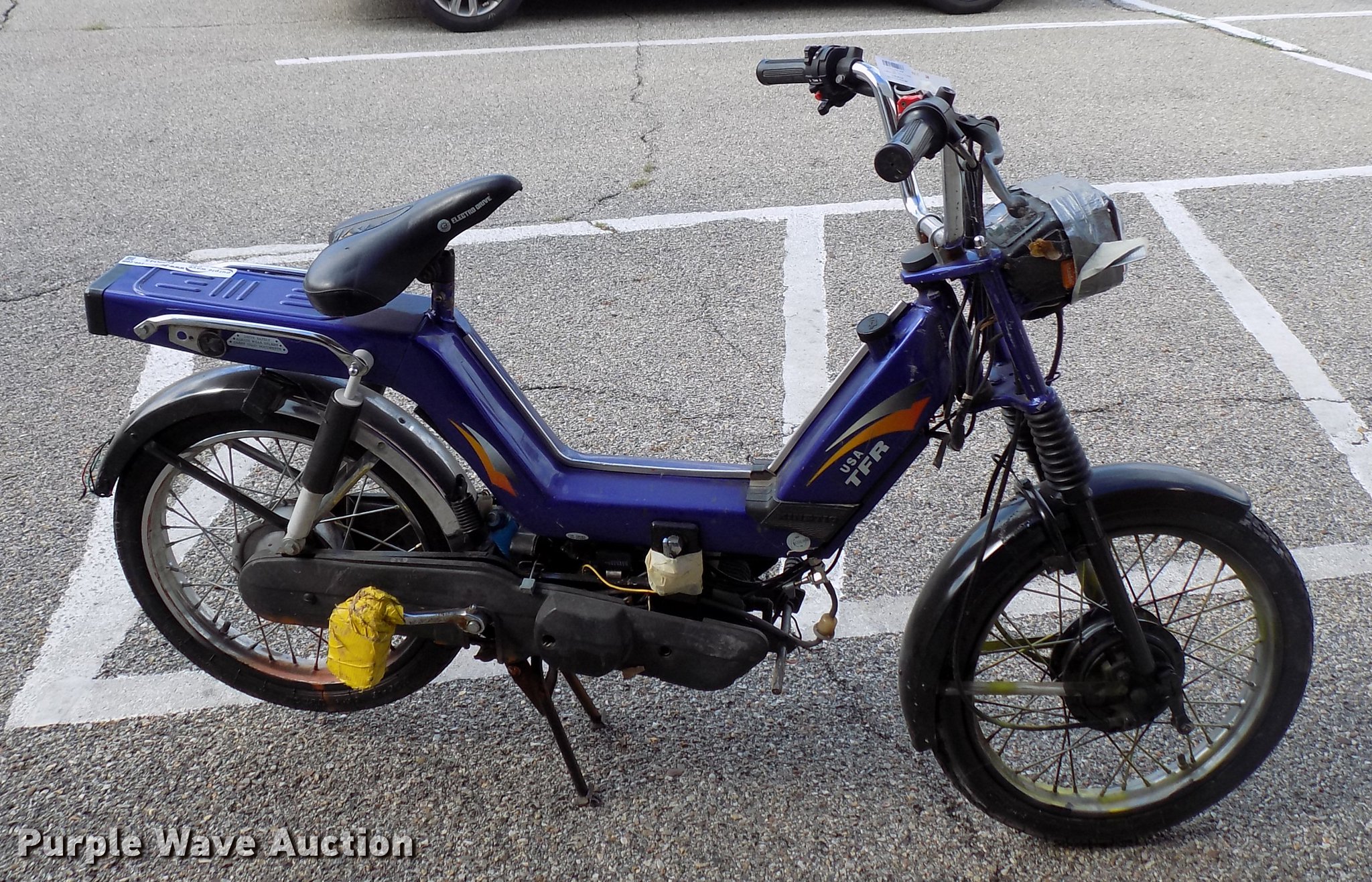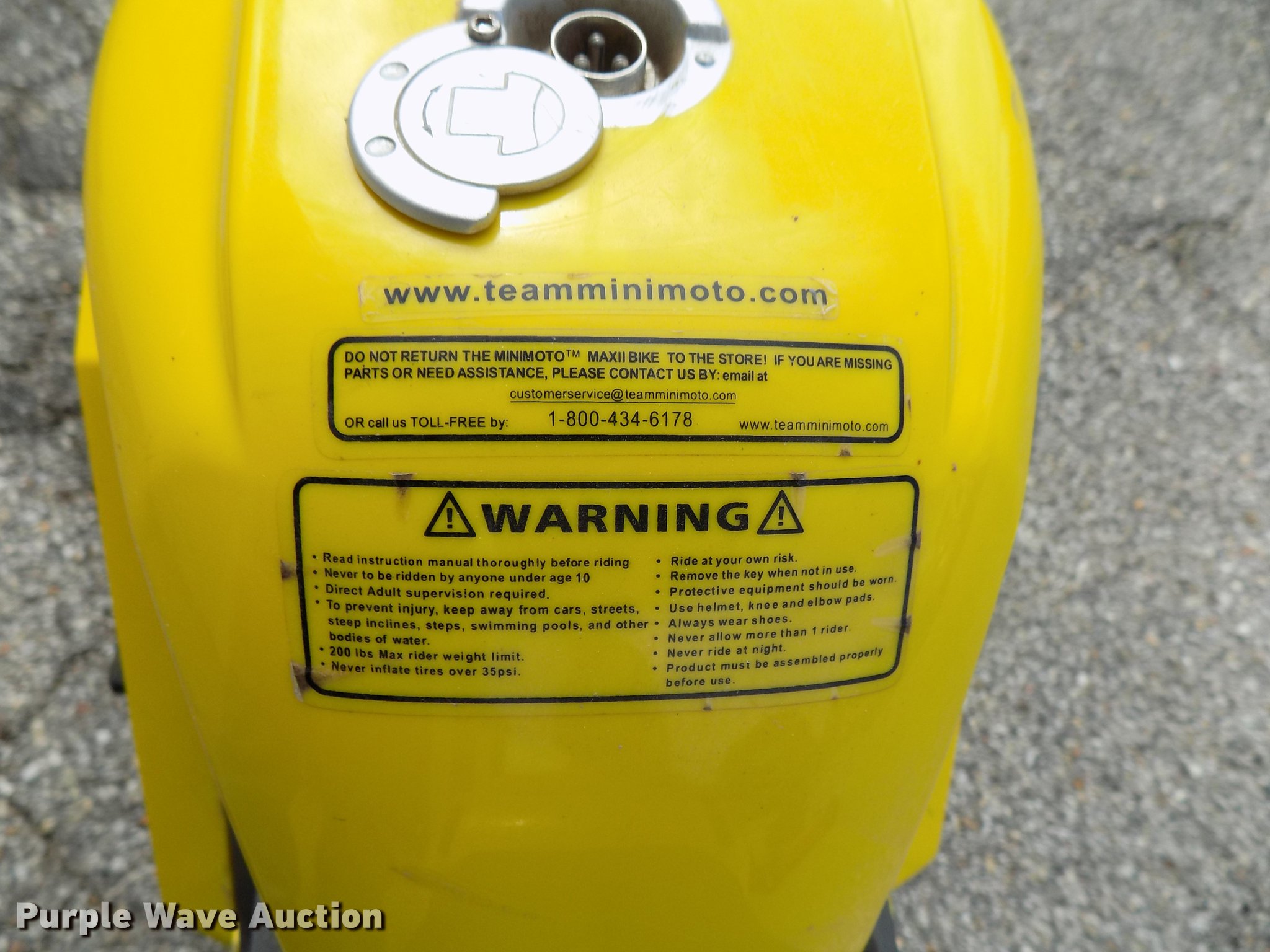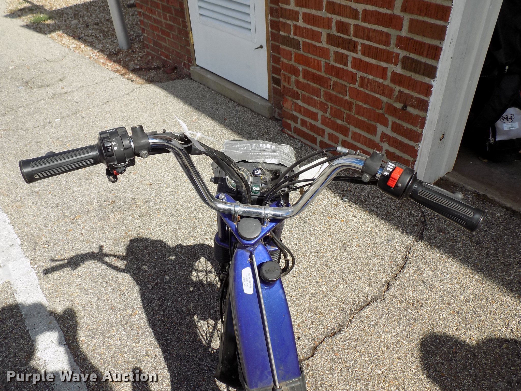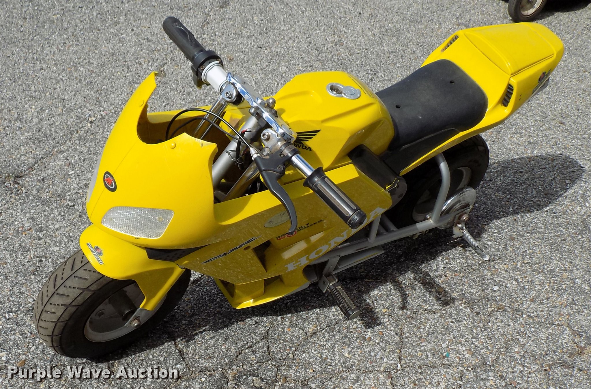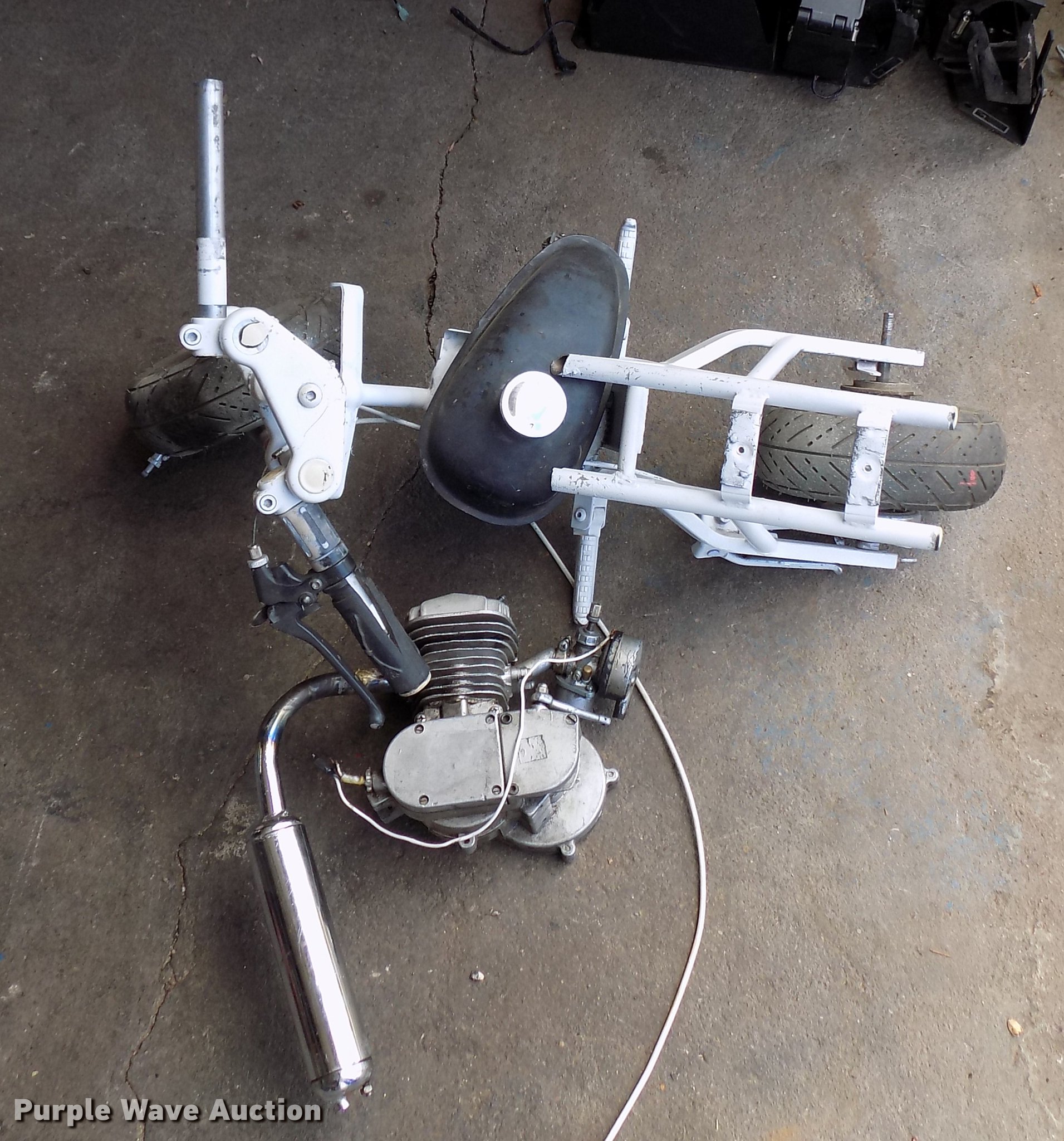 Purple Wave is selling a used Sporting Goods in Kansas. This item is a USA TRF gas powered bicycle with the following: Honda Mini Moto mini bike 36V electrical system, Unknown operating condition, Wizard lawn mower, 20"W cutting capacity, Briggs & Stratton gas engine, Unknown operating conditions