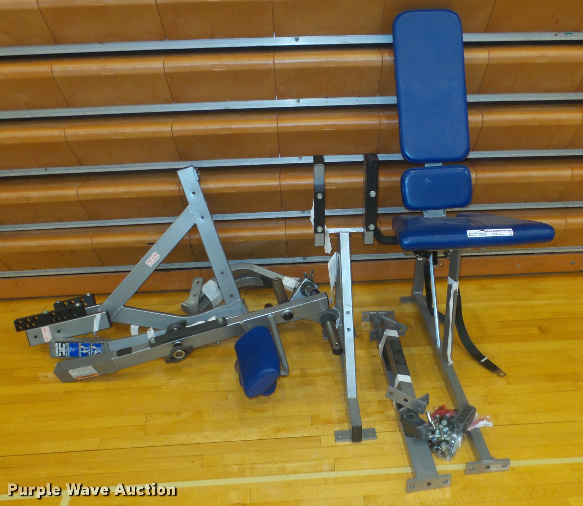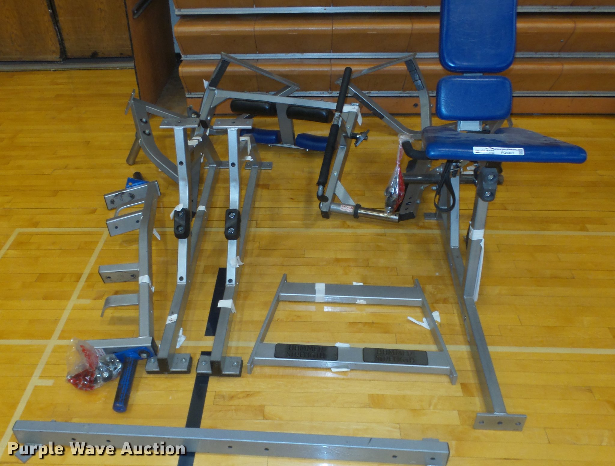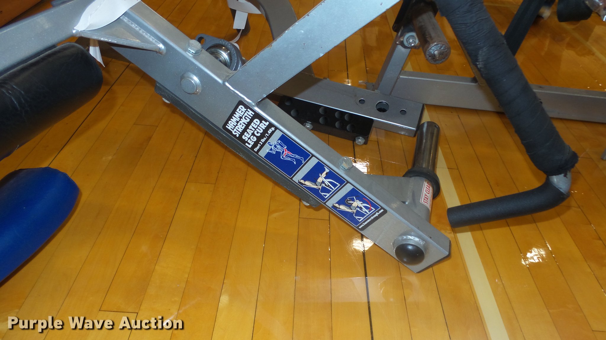 Purple Wave is selling a used Sporting Goods in Kansas. This item is a Hammer Strength exercise equipment with the following: Seated leg curl, Seated dip, Leg extension, Incline press, Ground Base twist left and right, ISO lateral row, Four way neck, Seated calf, Jammer with platform and more, Units are disassembled