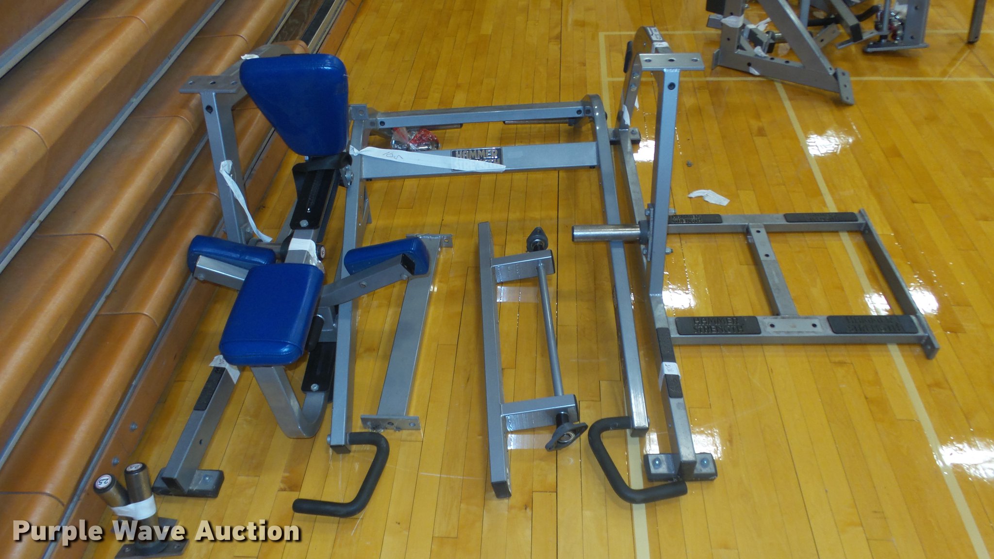 Hammer Strength exercise equipment. Seated leg curl, Seated dip, Leg extension, Incline press, Ground Base twist left and right, ISO lateral row, Four way neck, Seated calf, Jammer with platform and more, Units are disassembled. Andover High School. 1744 N Andover Rd. Andover, KS 67002