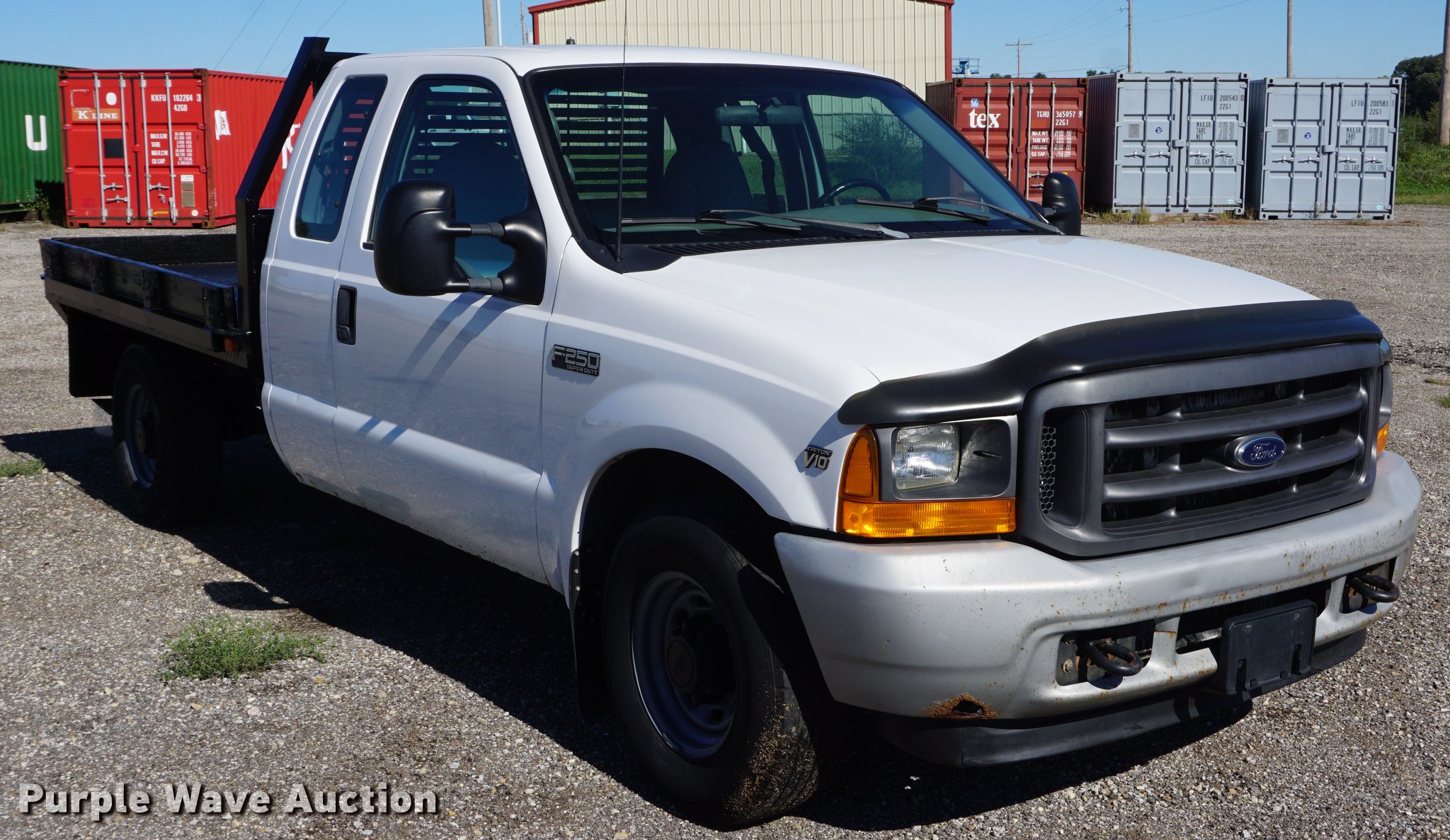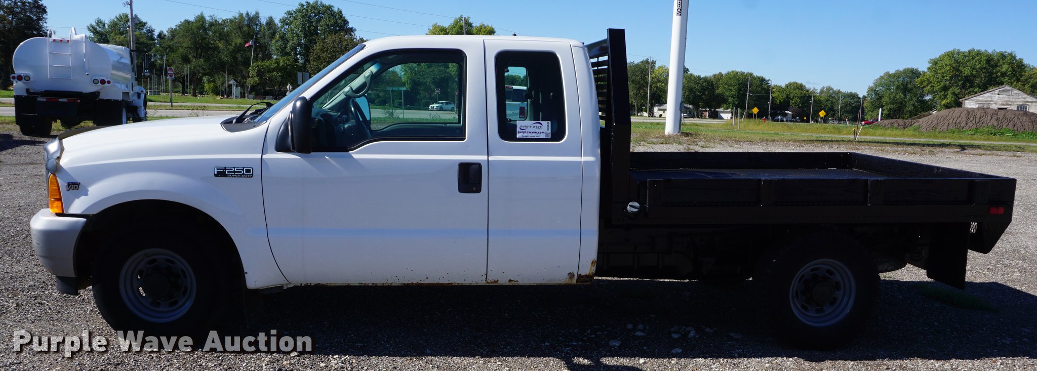 2001 Ford F250 Super Duty SuperCab flatbed pickup truck
