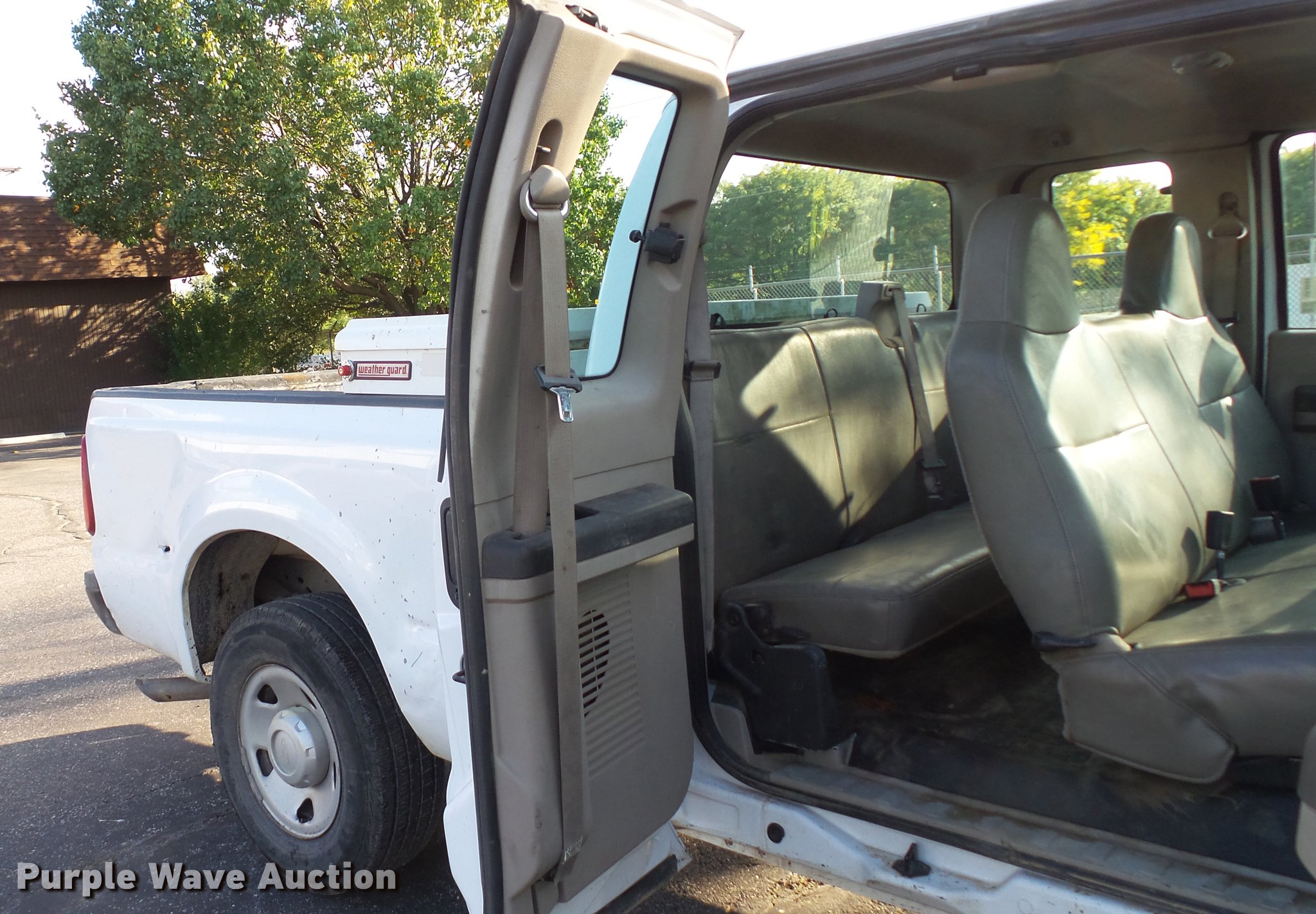 2008 Ford F250 Super Duty XL SuperCab pickup truck. 255,822 miles on odometer, 5.4L V8 SOHC 16V gas engine, Automatic transmission, AC and heat, AM/FM, Vinyl interior, Front tow hook, Bed mat, Toolbox, Receiver hitch, Trailer wiring, 265/70R17 tires, Unit# 110111. Missouri title. 1FTNX205X8ED69746. Pace Construction. 1620 Woodson Rd. Overland, MO 63114