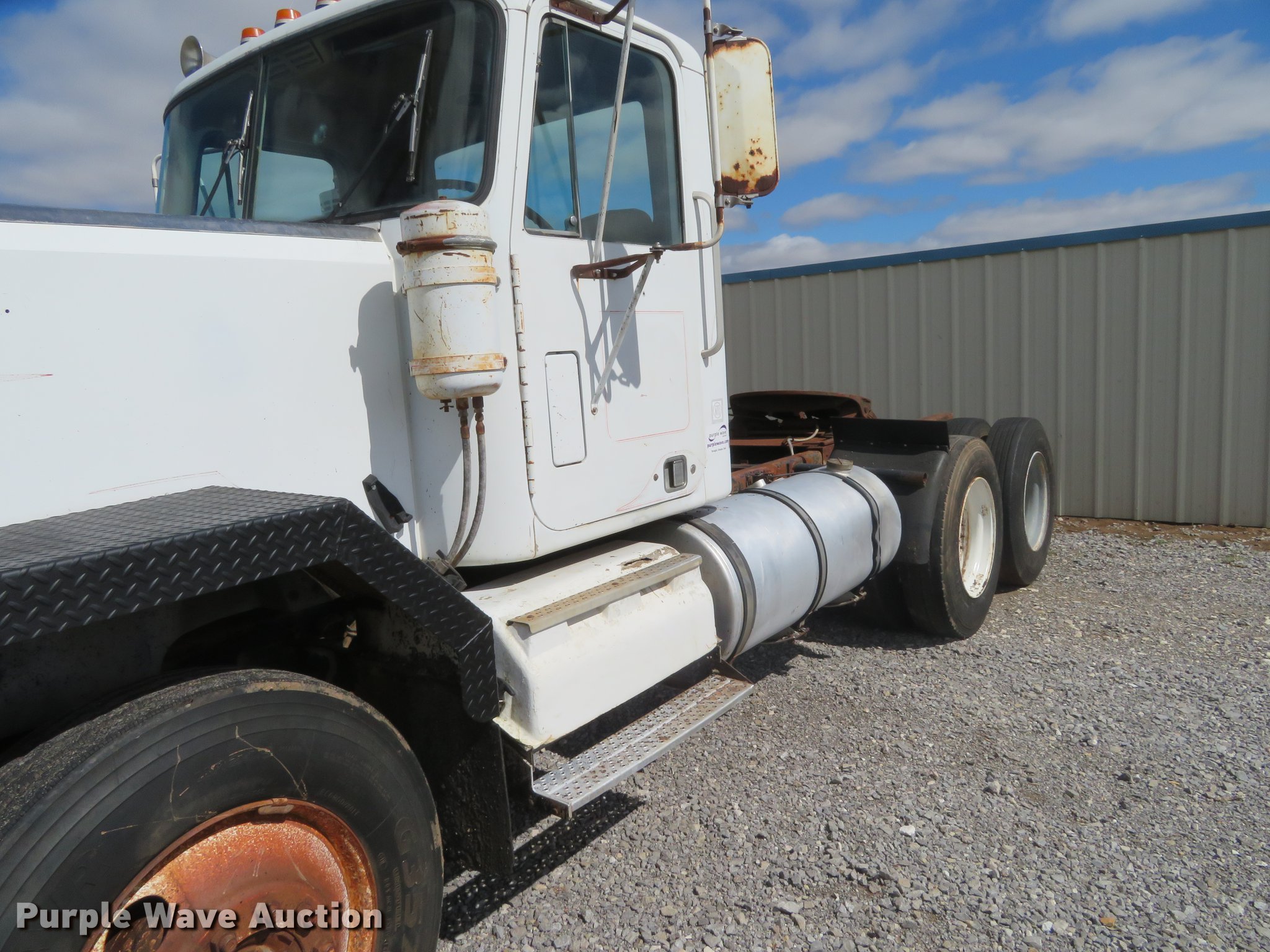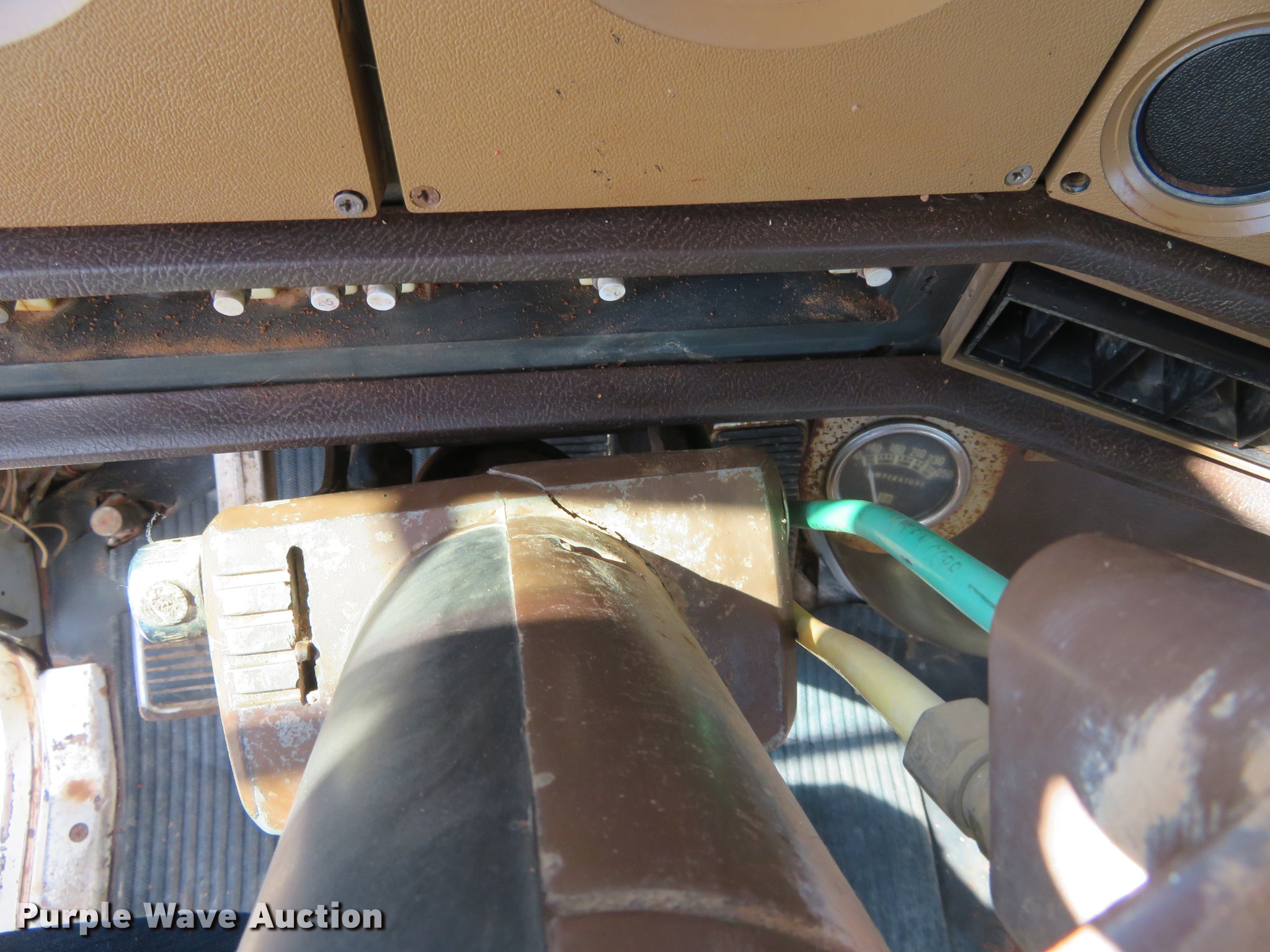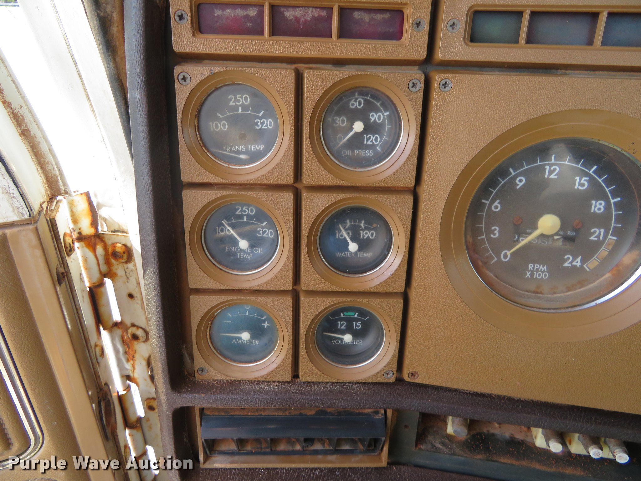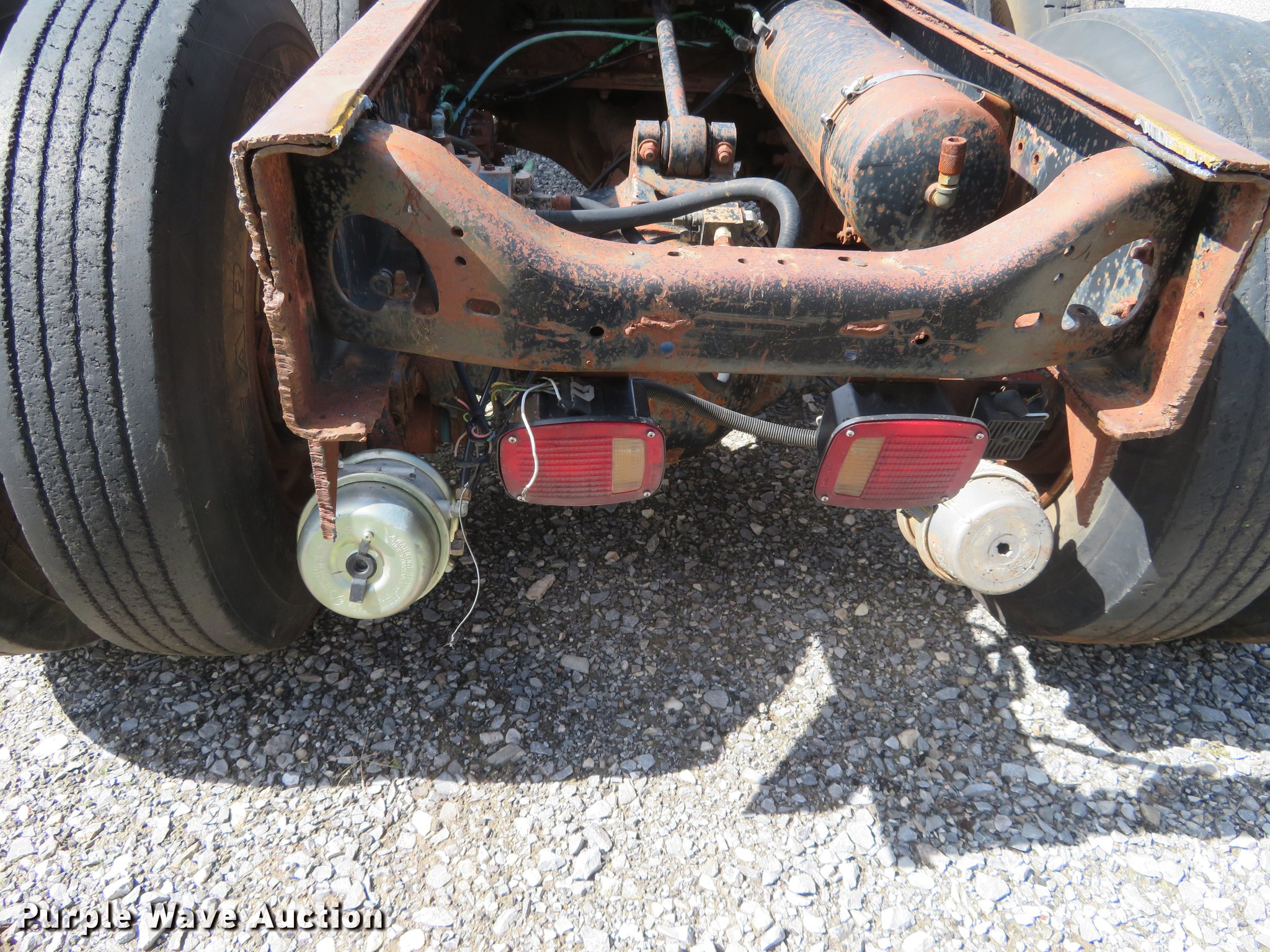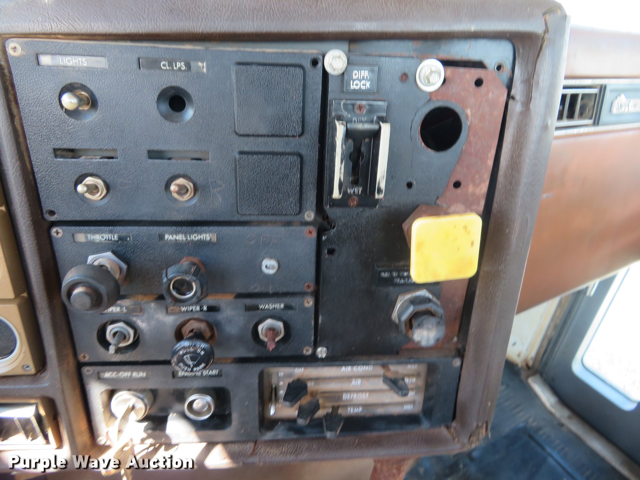 Purple Wave is selling a used Truck Tractor in Oklahoma. This item is a 1980 Chevrolet Bison semi truck with the following: 283,584 miles on odometer, 6,552 hours on meter, Cummins six cylinder diesel engine, 10 speed manual transmission, Tandem axle, Heat, Sliding fifth wheel plate, Air brakes, Spring suspension, 11R24.5 tires, GVWR 50,000 lbs, FAWR 12,000 lbs, RAWR 38,000 lbs, Engine block cracked