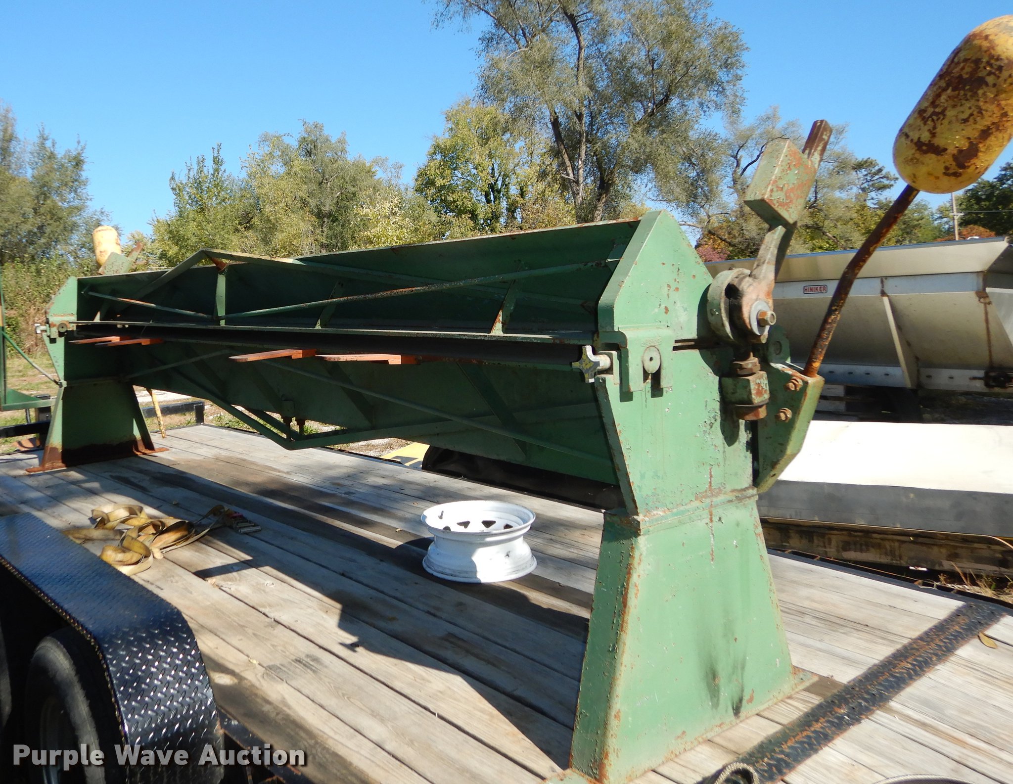 Purple Wave is selling a used Forming Equip. in Kansas. This item is a Wysong 168-22 metal brake with the following: 14'W, 22 gauge capacity, Counterweights, Trailer not included, Serial HB5-129