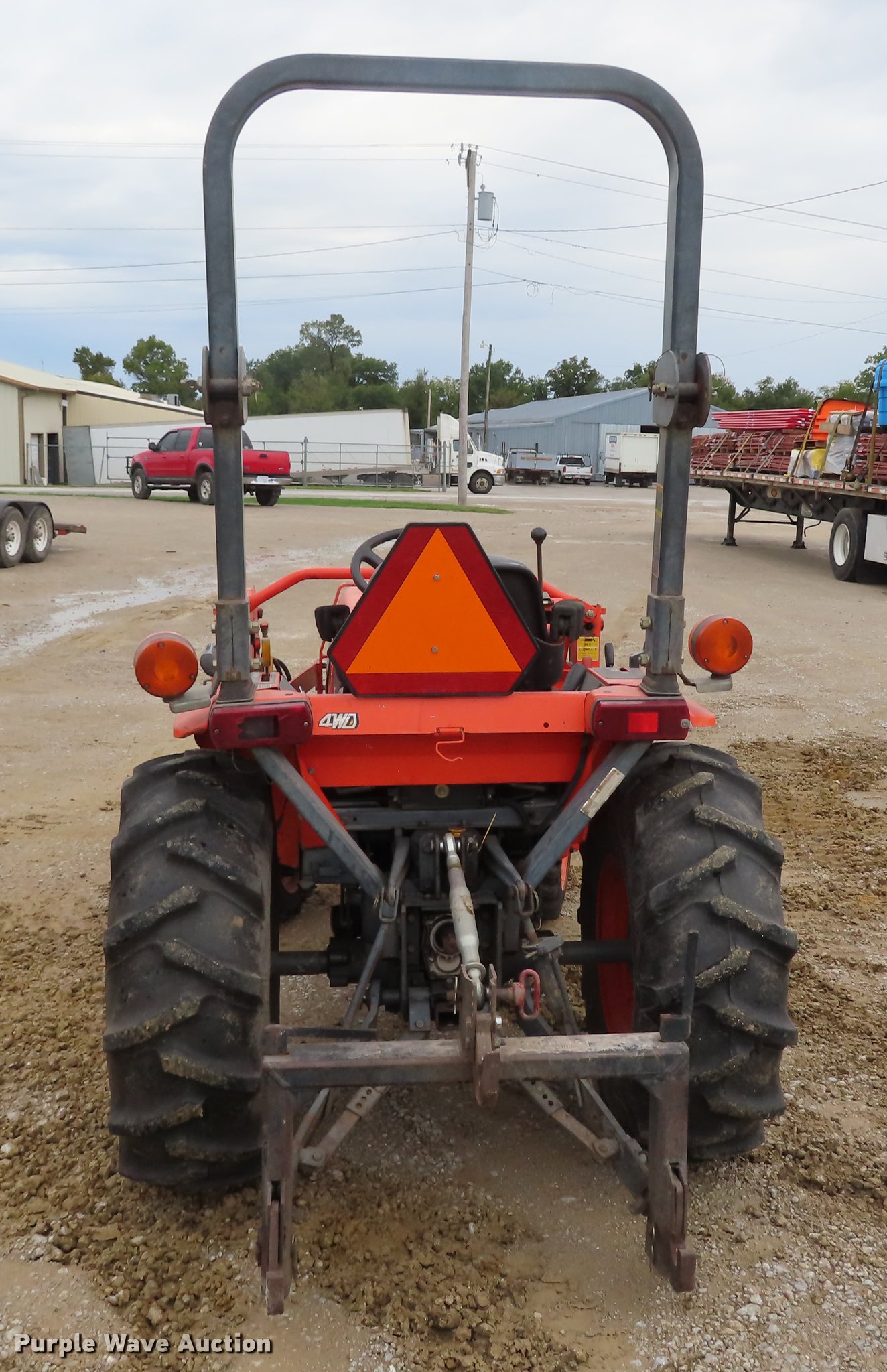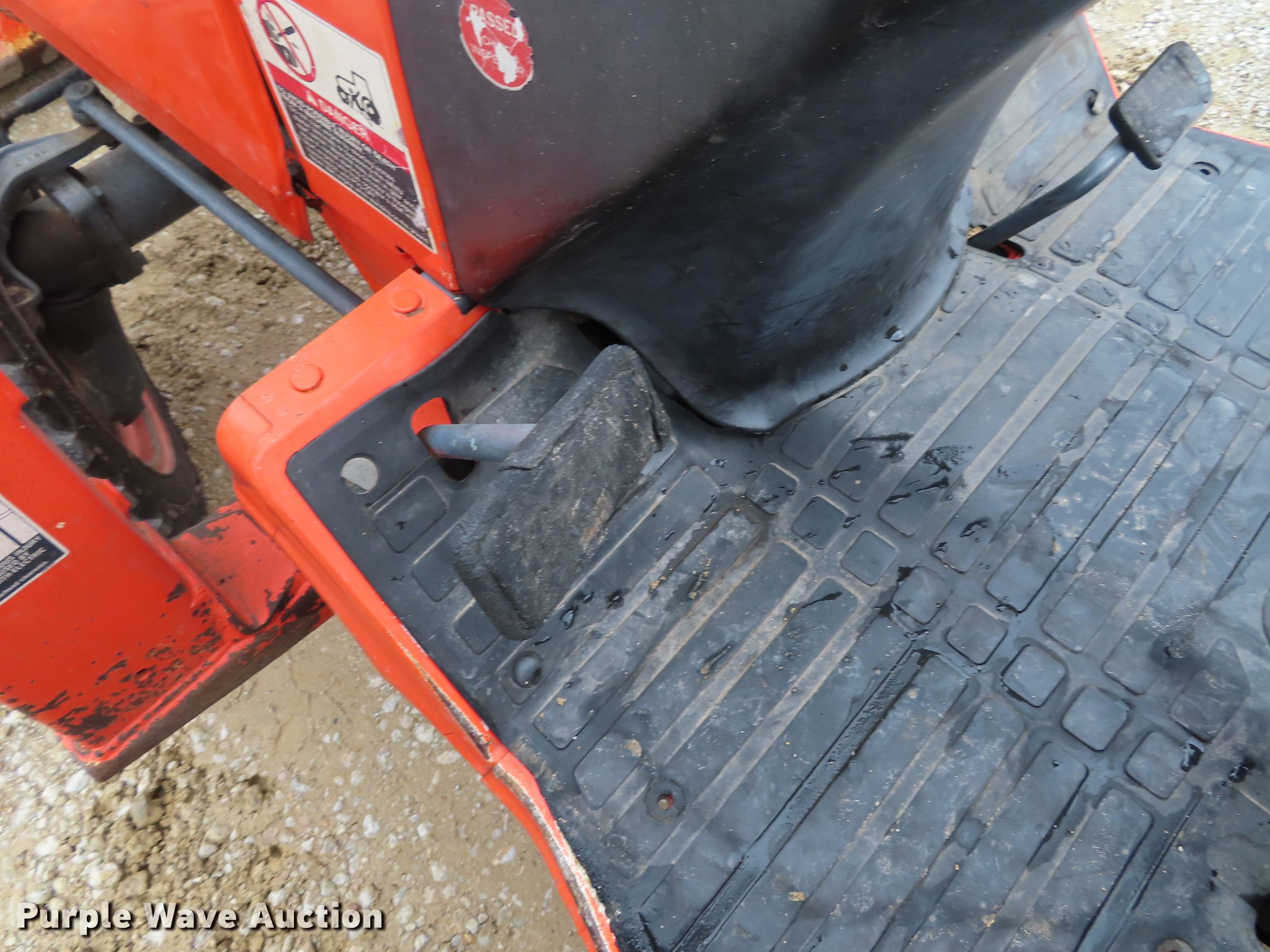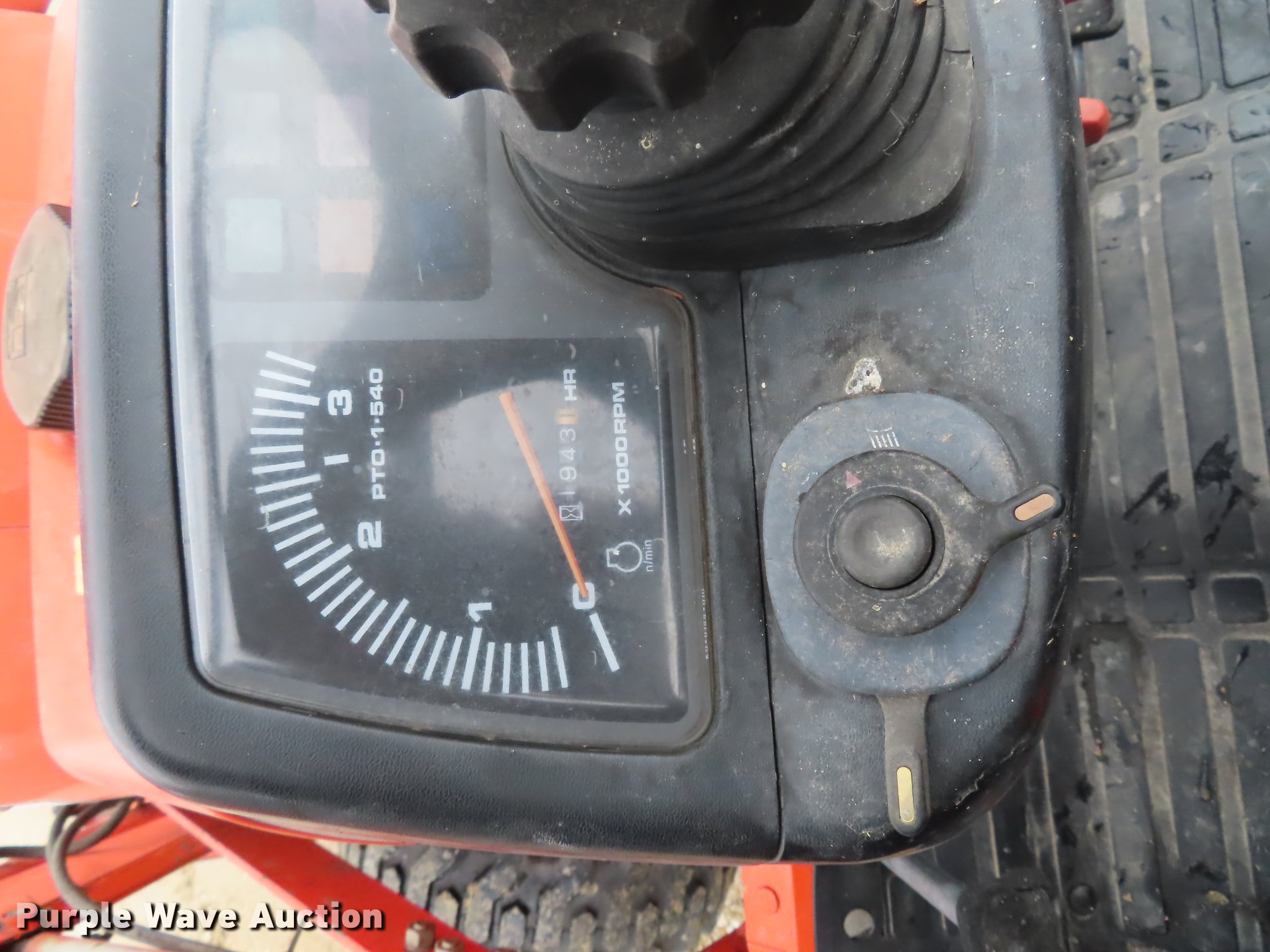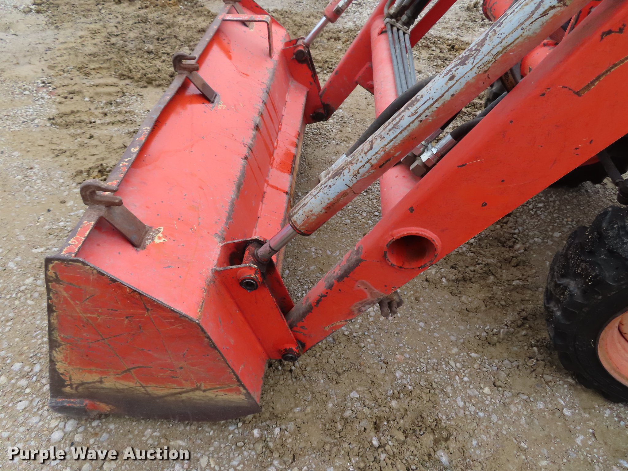 Purple Wave is selling a used Tractor in Kansas. This item is a Kubota B2910 MFWD tractor with the following: 1,943 hours on meter, Kubota four cylinder diesel engine, Hydrostatic transmission, 3F-3R gears, Differential lock, Kubota LA402 loader, 53"W bucket, Joystick controls, Three point, Top link, Quick attach, 540 PTO, 23-8.50-14 front tires, 12.4-16 rear tires, Serial B2910HSP53601