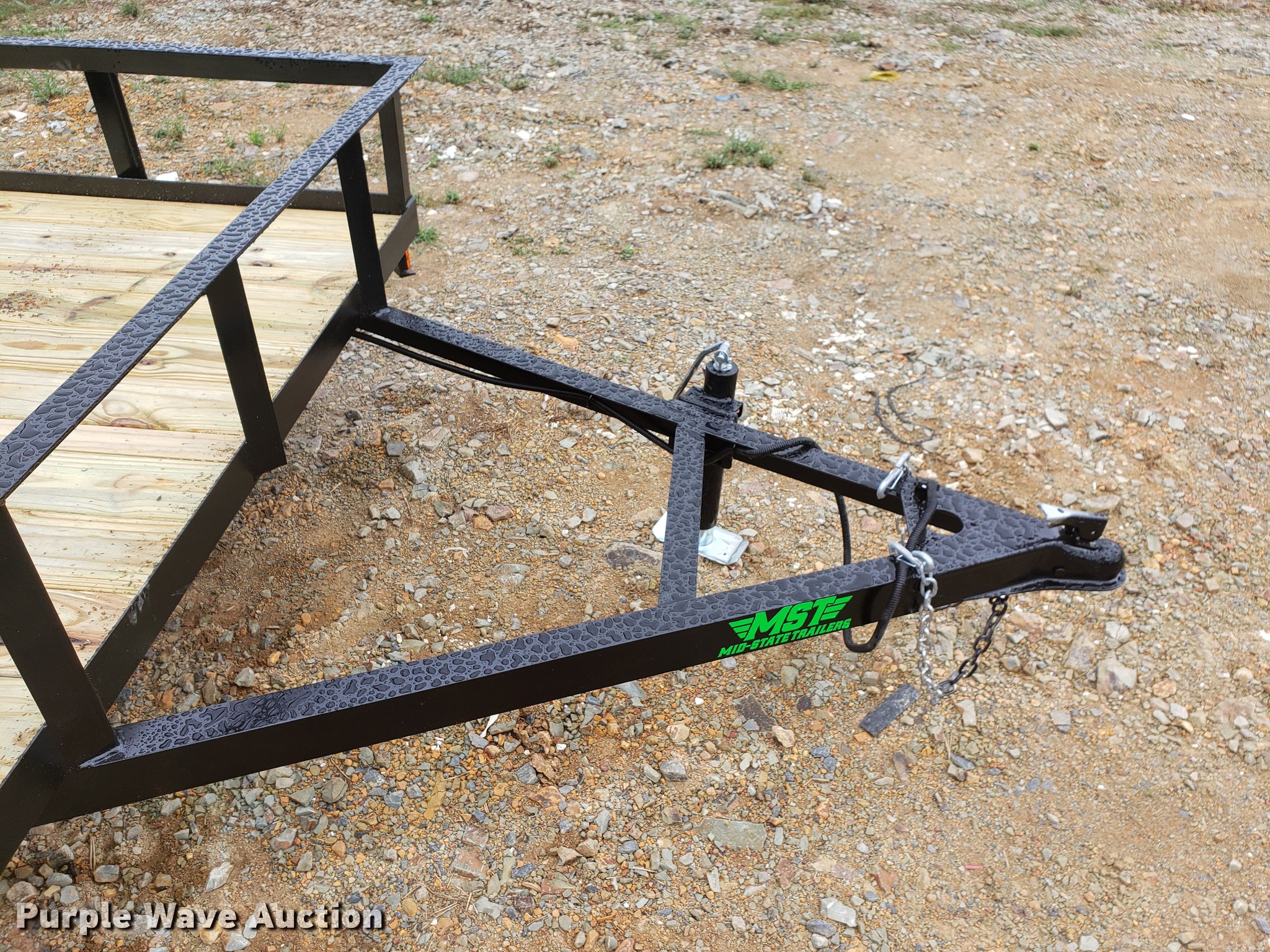 2018 MST 6X12 utility trailer. 16'L x 91"W overall, 10'L x 72"W wood deck, 2'L dovetail, 3'L ramps, 2" ball hitch, Single leg landing gear, Spring suspension, Electric brakes, Aluminum wheels, 205/75R15 tires, GVWR 3,500 lbs. Transfer of ownership documentation will be a manufacturer's certificate of origin and a bill of sale. 4M91U1211JN065394. Mid-State Trailers. 6542 NC-47. Denton, NC 27239