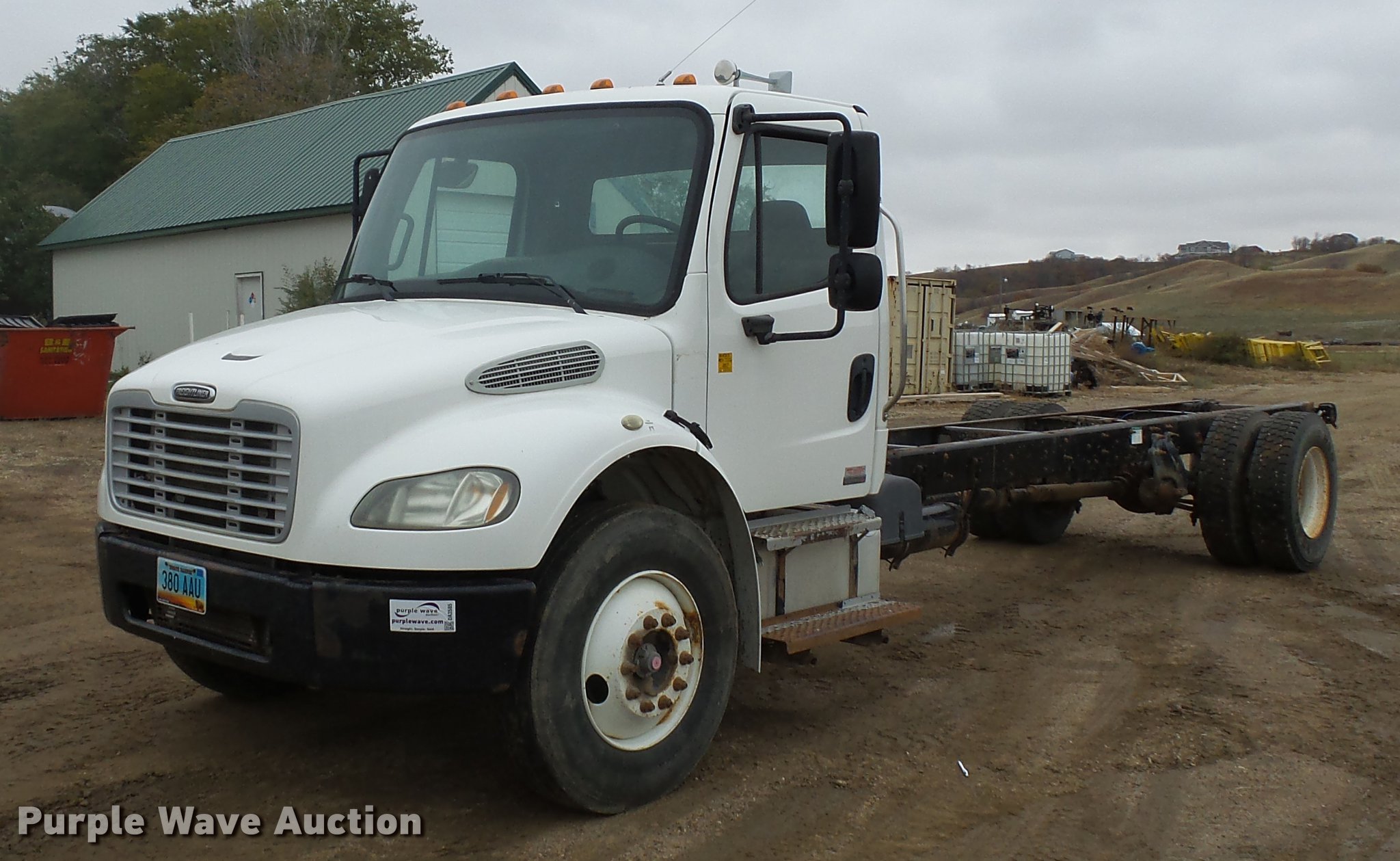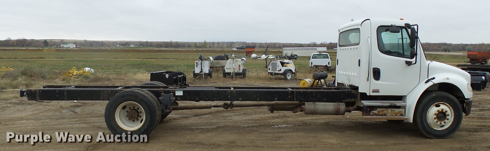 Purple Wave is selling a used Truck Chassis in North Dakota. This item is a 2005 Freightliner Business Class M2 truck cab and chassis with the following: 240,798 miles on odometer, 8,291 hours on meter, Caterpillar C7 7.2L L6 turbo diesel engine, Automatic transmission, Single axle, Heat, AM/FM, Air suspension seat, Block heater, Single fuel tank, Air suspension, Air brakes, 11R22.5 tires, GVWR 26,000 lbs