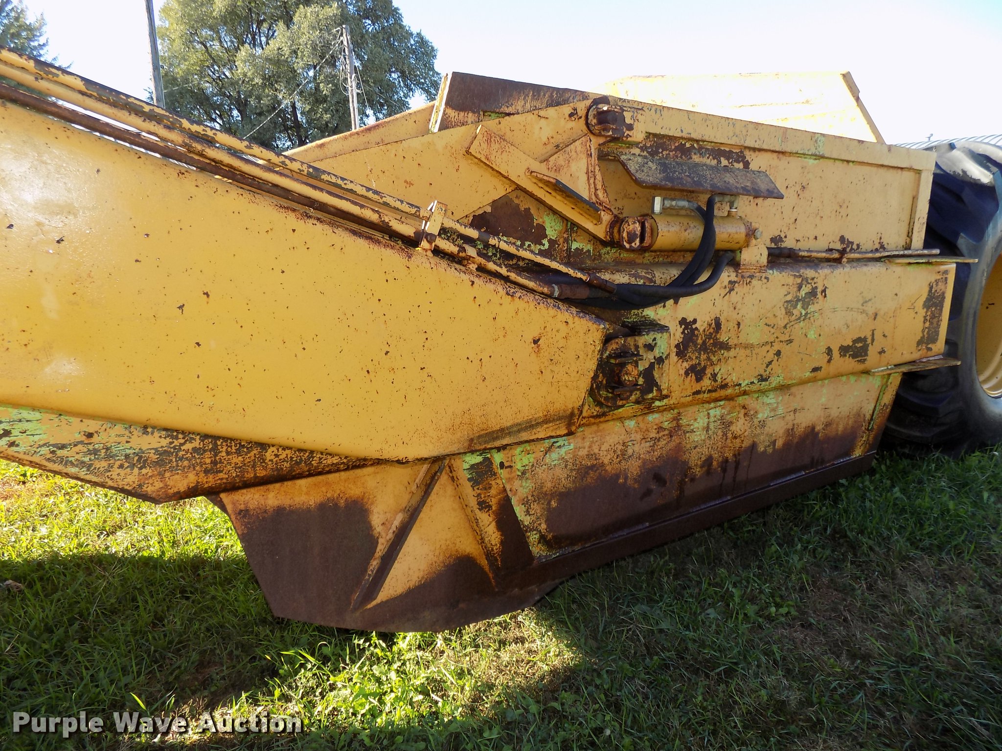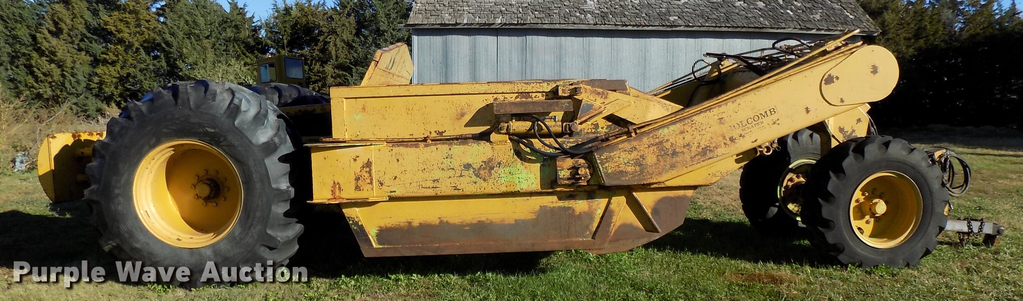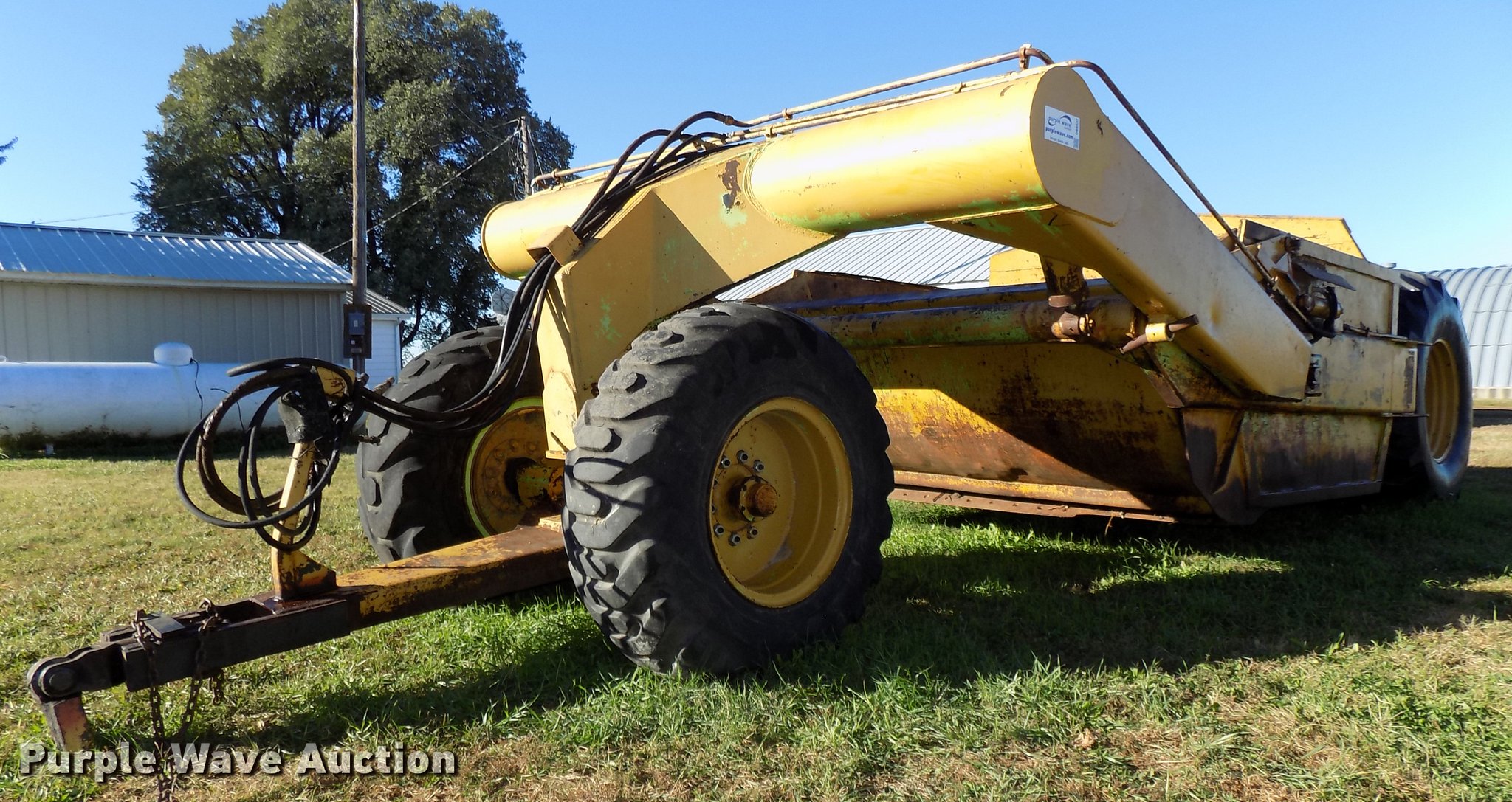 Purple Wave is selling a used Pull Type Scraper in Nebraska. This item is a Steiger scraper with the following: 16 cu.yd. bowl capacity, Rear push block, Pin hitch, BF Goodrich 17.5-25 front tires, Goodyear 30.5L-32 rear tires, Hoses cracked and weathered
