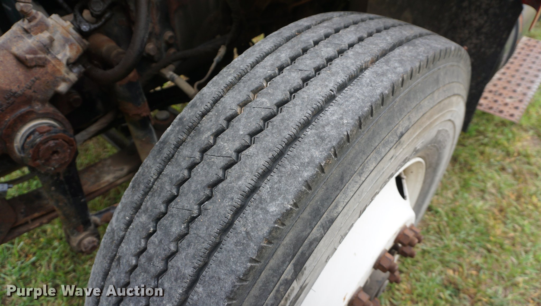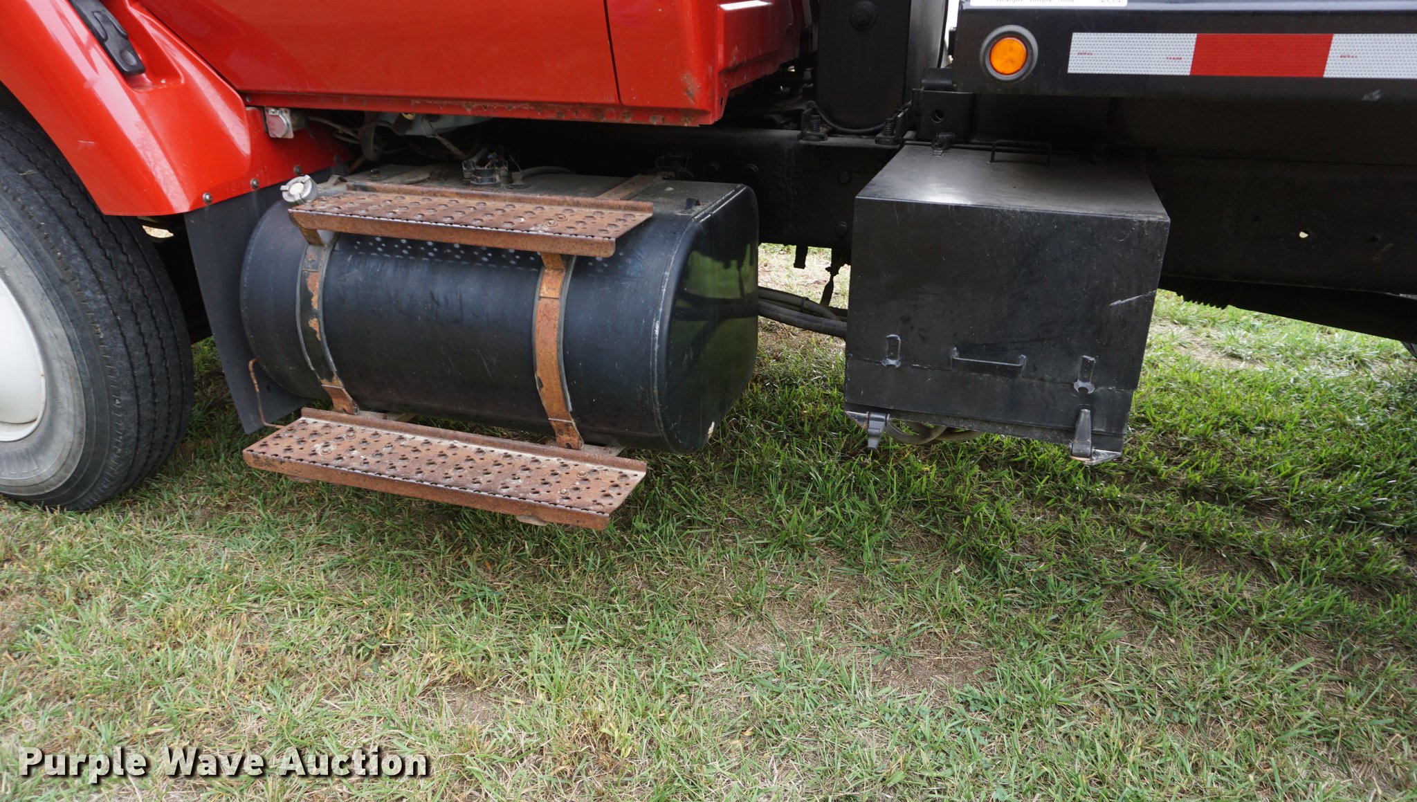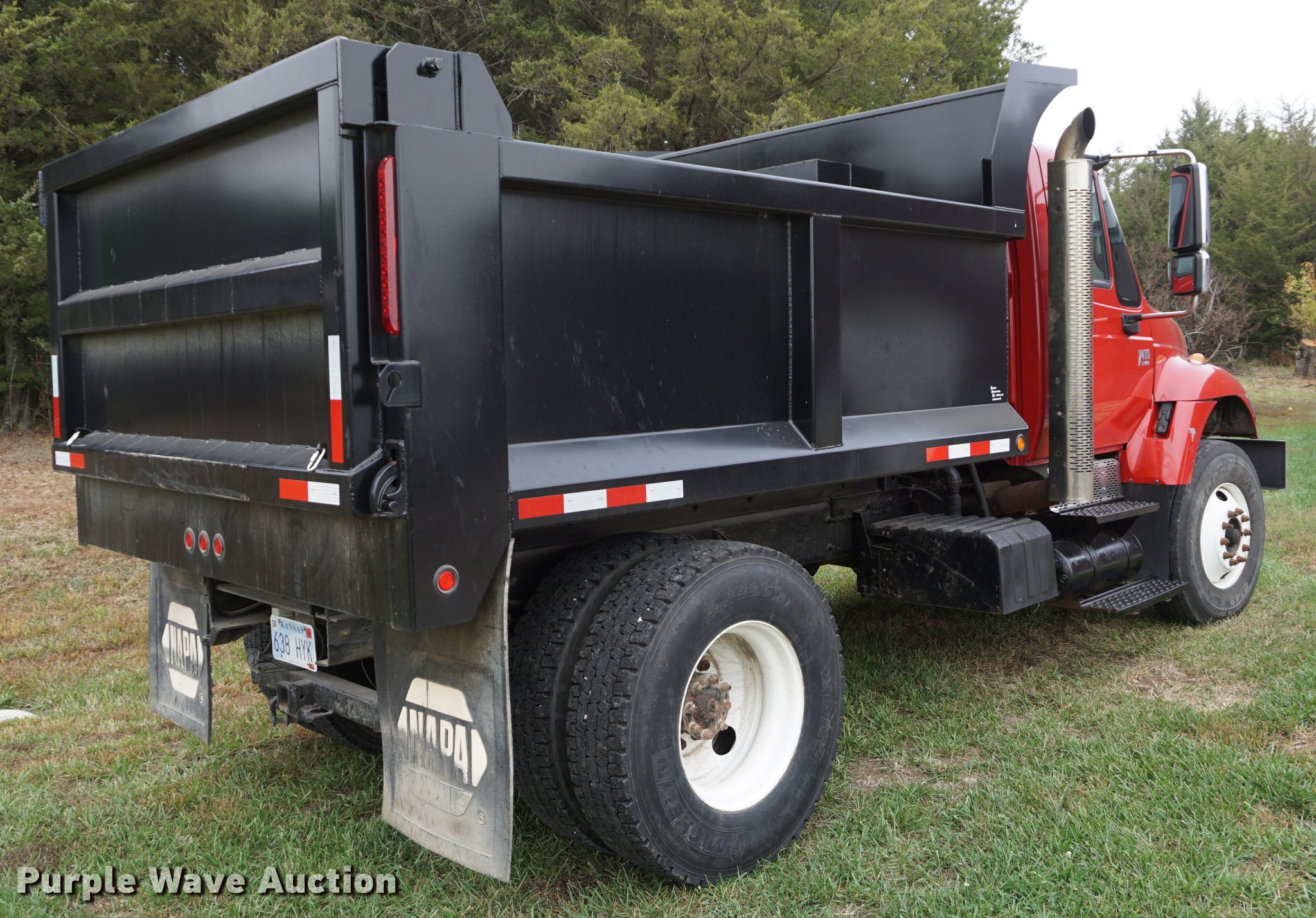 Purple Wave is selling a used Construction Dump Truck in Kansas. This item is a 2003 International 7400 dump truck with the following: 62,807 miles on odometer, International DT466 7.6L L6 turbo diesel engine, Allison automatic transmission, Single axle, AC and heat, Tilt, Cruise, AM/FM, Heated mirrors, Air suspension seat, Front mounted PTO, 2016 Fannin steel dump bed, 10'L x 94"W, 36" side height, Single ram hoist, Air operated end gate, Single fuel tank, Receiver hitch, Spring suspension, Air brakes, 12R22.5 tires, GVWR 37,000 lbs, FAWR 14,000 lbs, RAWR 23,000 lbs