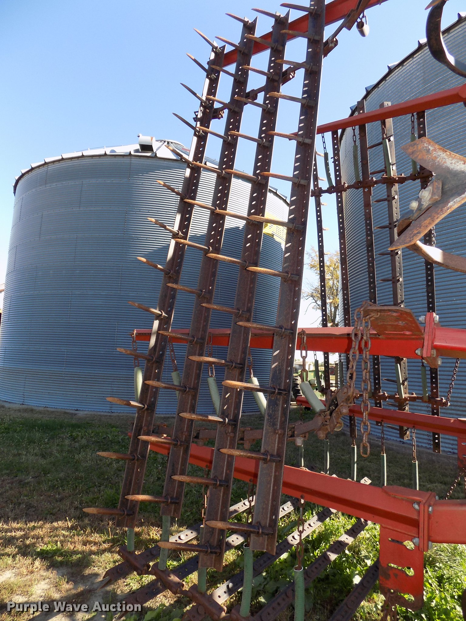 Purple Wave is selling a used Mulcher Finisher in Missouri. This item is a Sunflower 6332-26 mulch finisher with the following: 26'W, (34) approx. 8" to 10" sweep widths, 19.5" diameter front blades, 7.5" spacing, Rear drag, 9.5'W wings, 8'W center, Hydraulic lift and fold, Clevis hitch, 11L-15SL tires, One lift bracket damaged, Serial 6397-109