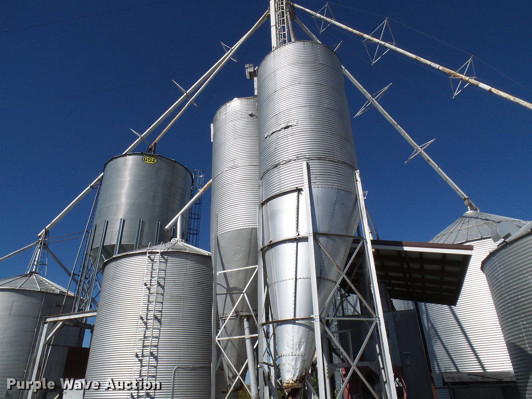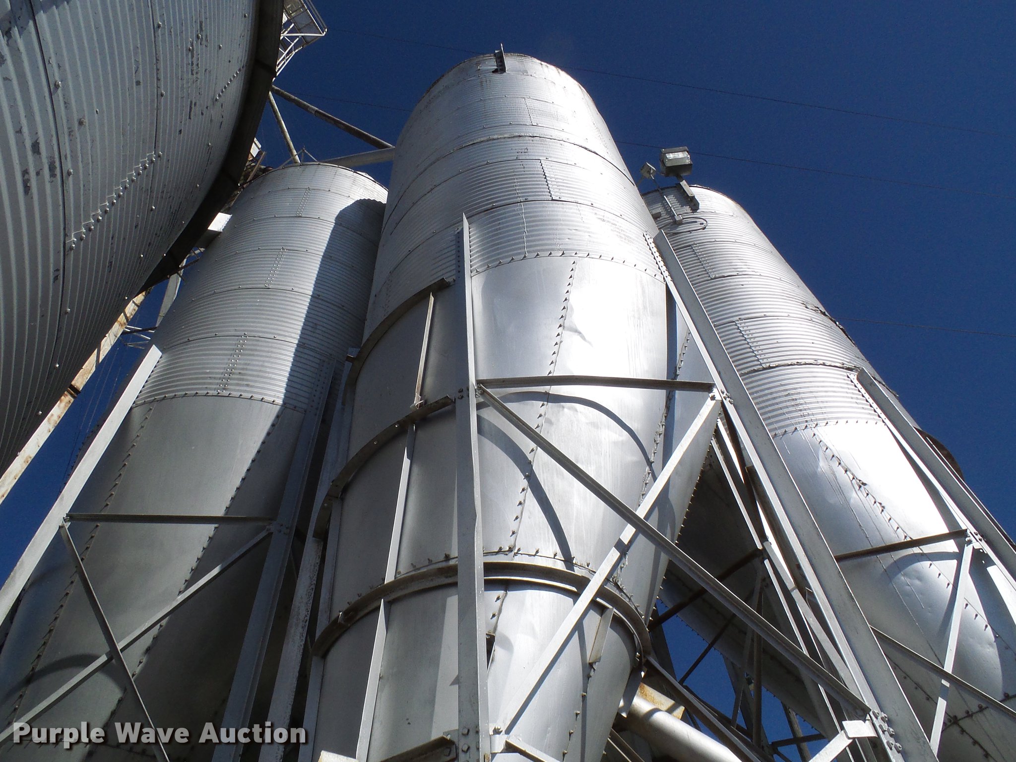 Purple Wave is selling a used Other Grain or Fertilizer Handling in Missouri. This item is a (3) overhead grain bins with the following: Approx. 1,500 bushel capacity