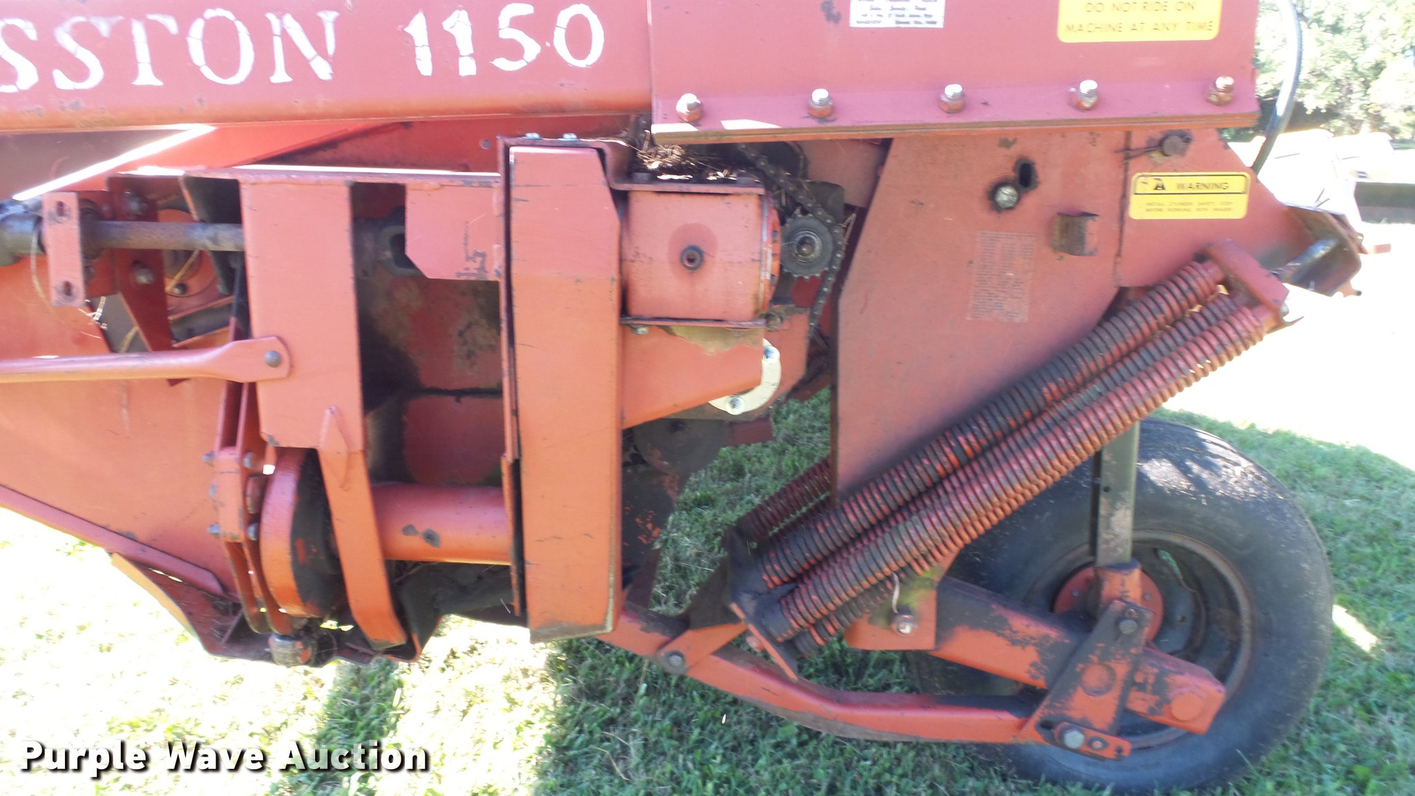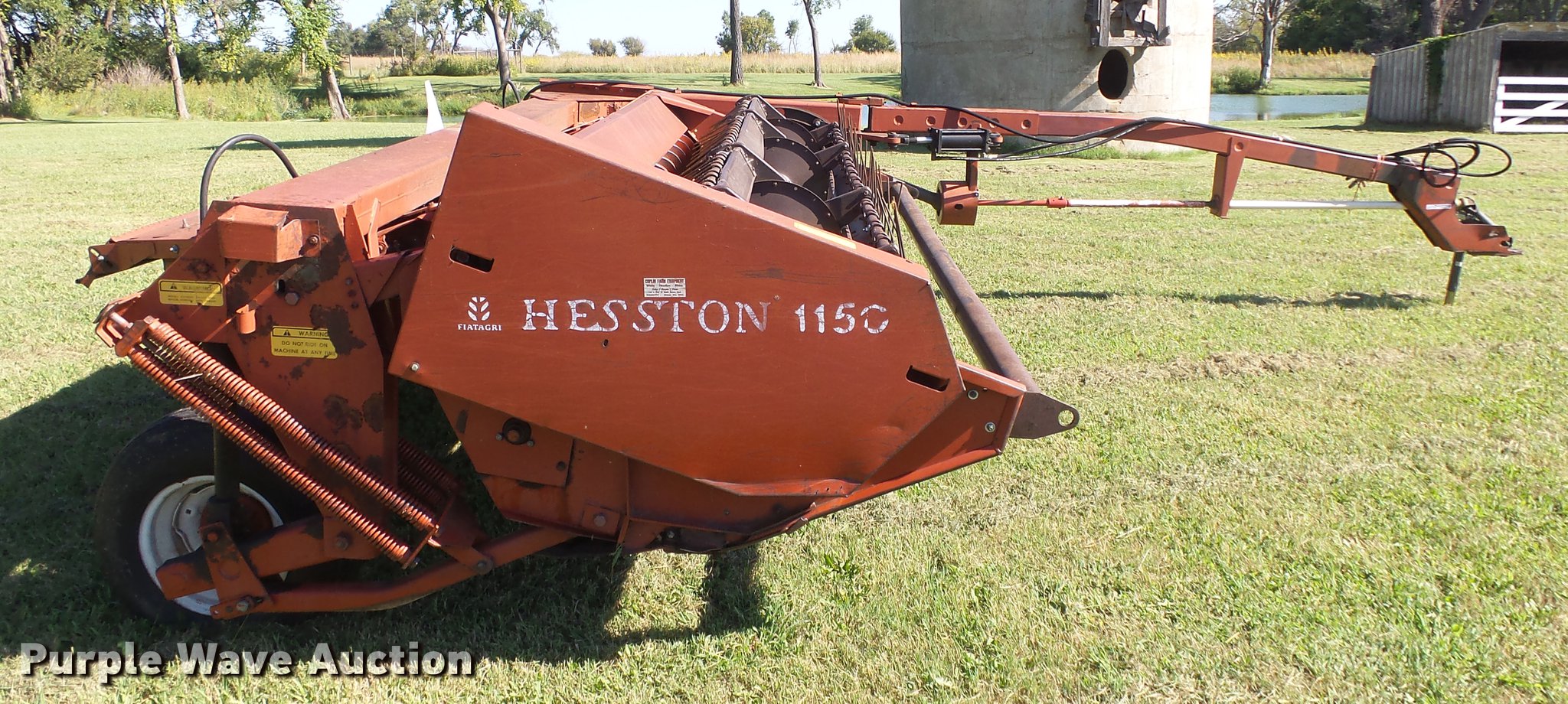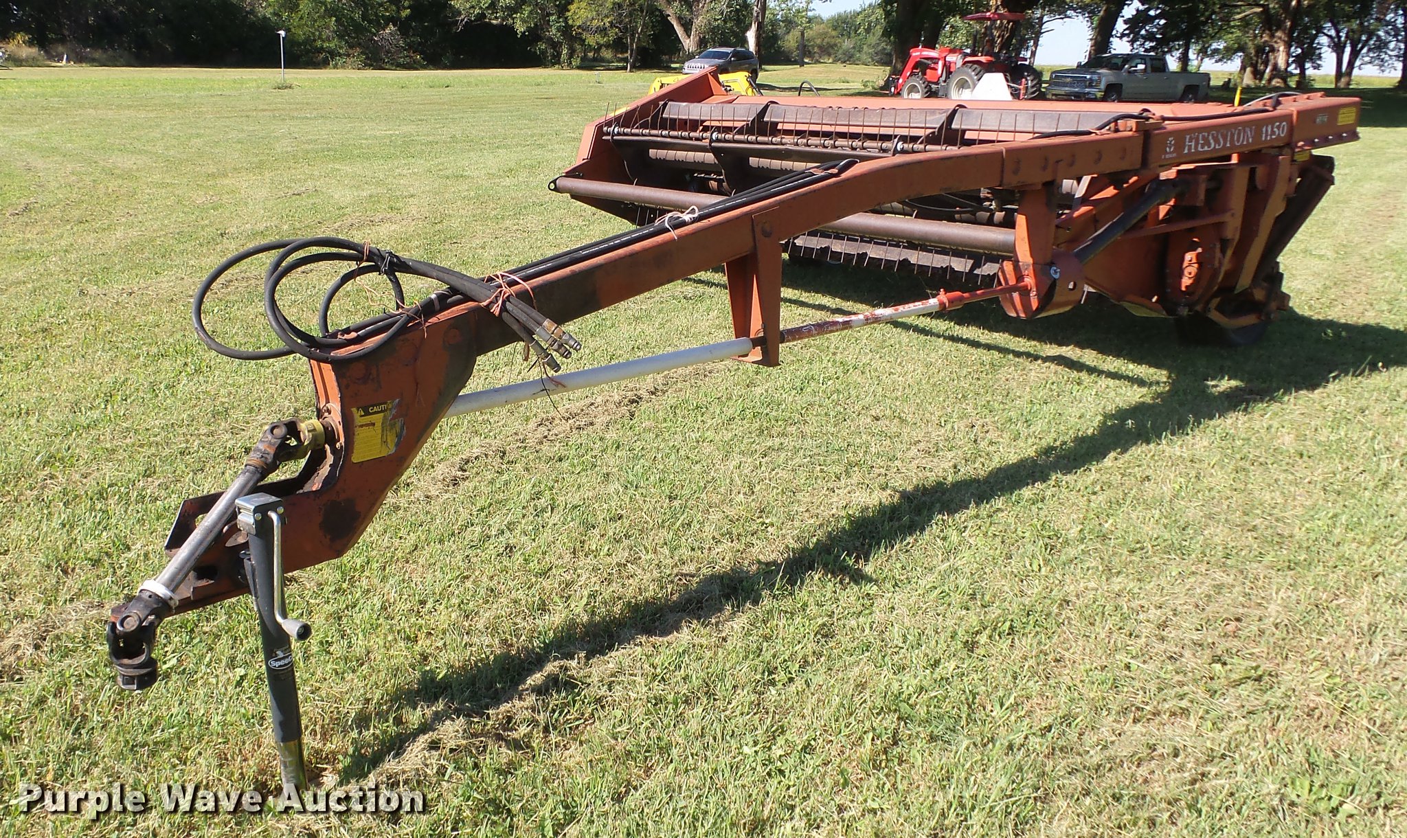Purple Wave is selling a used Windrower Pull Type in Kansas. This item is a Hesston 1150 Hydroswing swather with the following: 12'W, Steel/rubber conditioners, 540 PTO, Pin hitch, 9.5L-15 transport tires, Serial 1150-00105