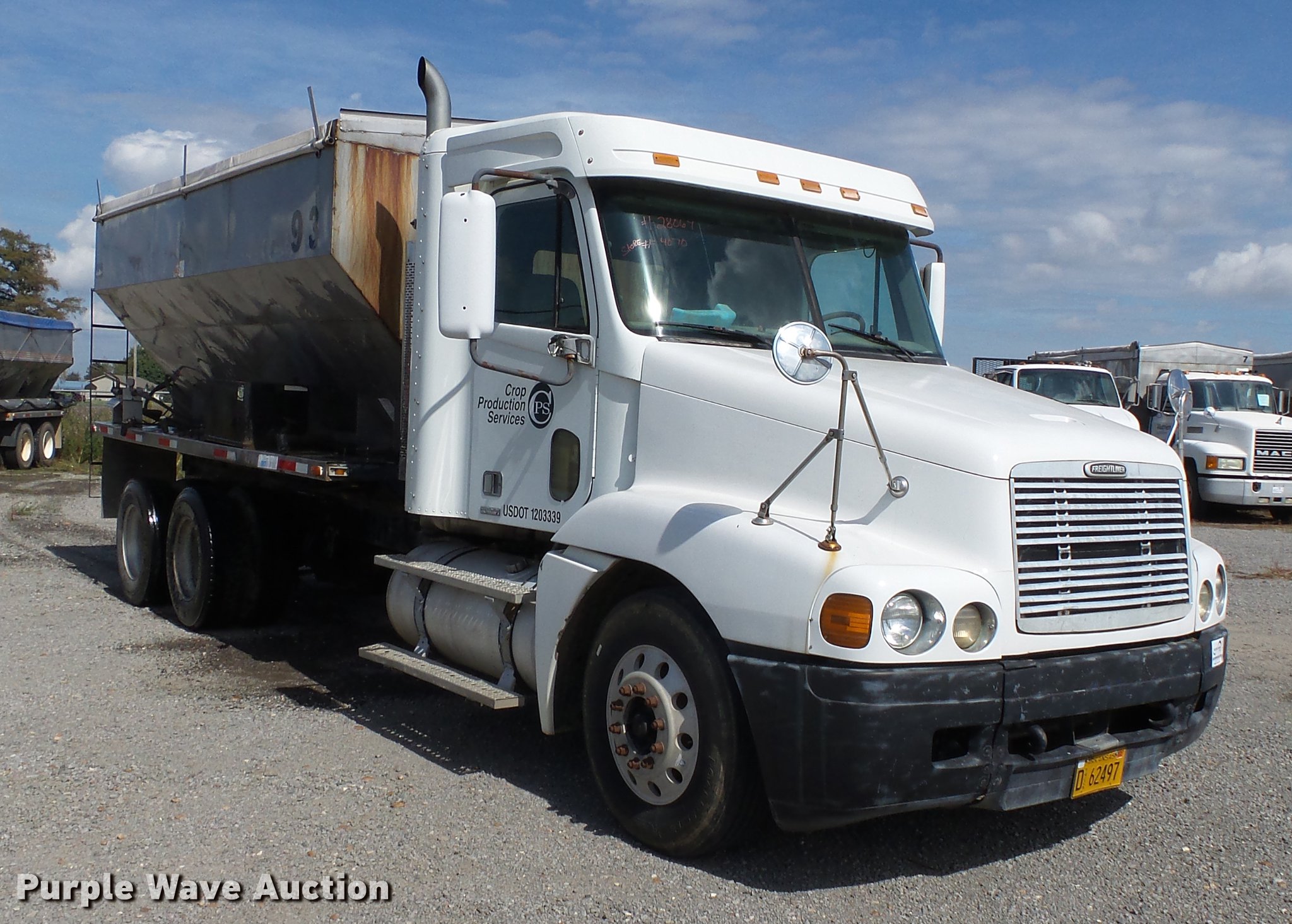 2001 Freightliner Century Class fertilizer tender truck. 993,080 miles on odometer, Detroit Diesel Series 60 12.7L L6 turbo diesel engine 470 HP, Eaton Fuller 10 speed manual transmission, Tandem axle, Inter-axle differential lock, AC and heat, Cruise, Power windows and mirrors, Air suspension seat, Air ride cab, Adams fertilizer tender bed 17'L, (2) compartments, 20'L x 9" diameter side discharge auger Hydraulic lift, Roll tarp, Air suspension, Air brakes, 219" wheelbase, 295/75R22.5 tires, Unit# 28069. Arkansas title. Title distribution may be delayed up to 30 days from verification of funds and title assignment. 1FUYSSEB11LG56738. Nutrien Ag Solutions. 501 Cemetary Rd. Caraway, AR 72419
