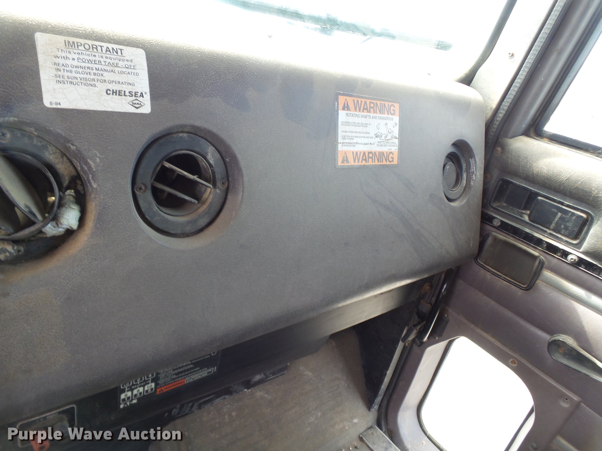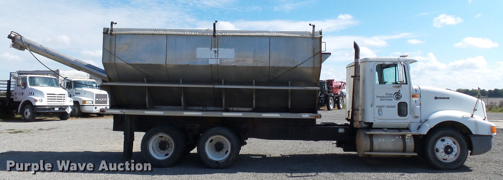 Purple Wave is selling a used Fertilizer or Feed Delivery Truck in Arkansas. This item is a 1994 International 9400 fertilizer tender truck with the following: 271,144 miles on odometer, Detroit Diesel Series 60 11.1L L6 turbo diesel engine, 365 HP, Eaton Fuller 10 speed manual transmission, Tandem axle, Inter-axle differential lock, AC and heat, Cruise, Adams fertilizer tender bed, (2) compartments, 10'L x 9" diameter rear discharge auger, Hydraulic lift, Rear/ground controls, Roll tarp, Air suspension, Air brakes, 238" wheelbase, 11R22.5 front tires, 295/75R22.5 rear tires, Auger will not rotate, Unit# 8607