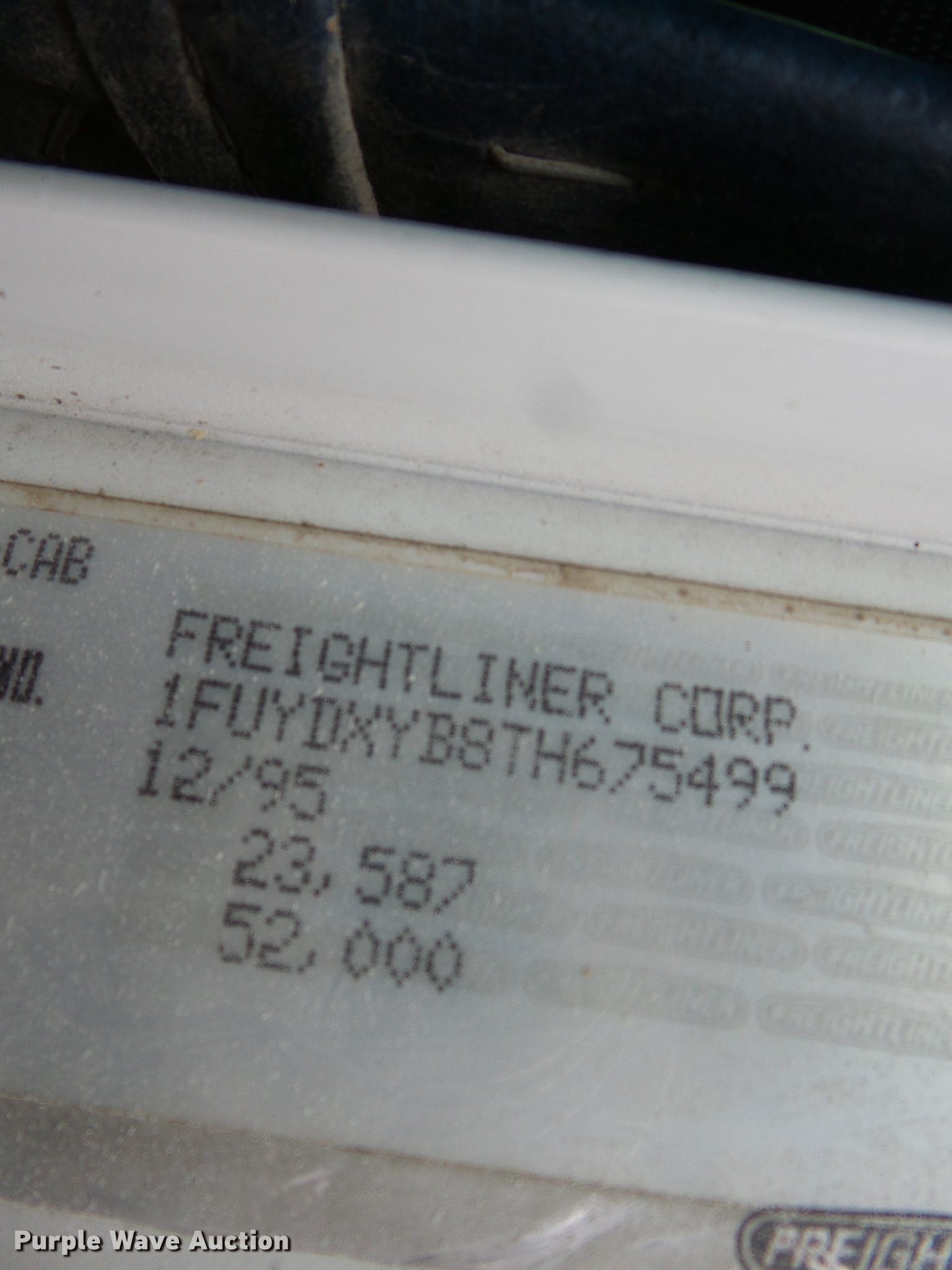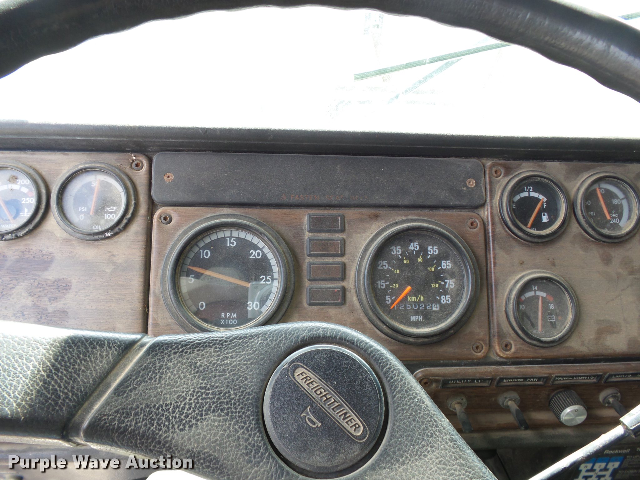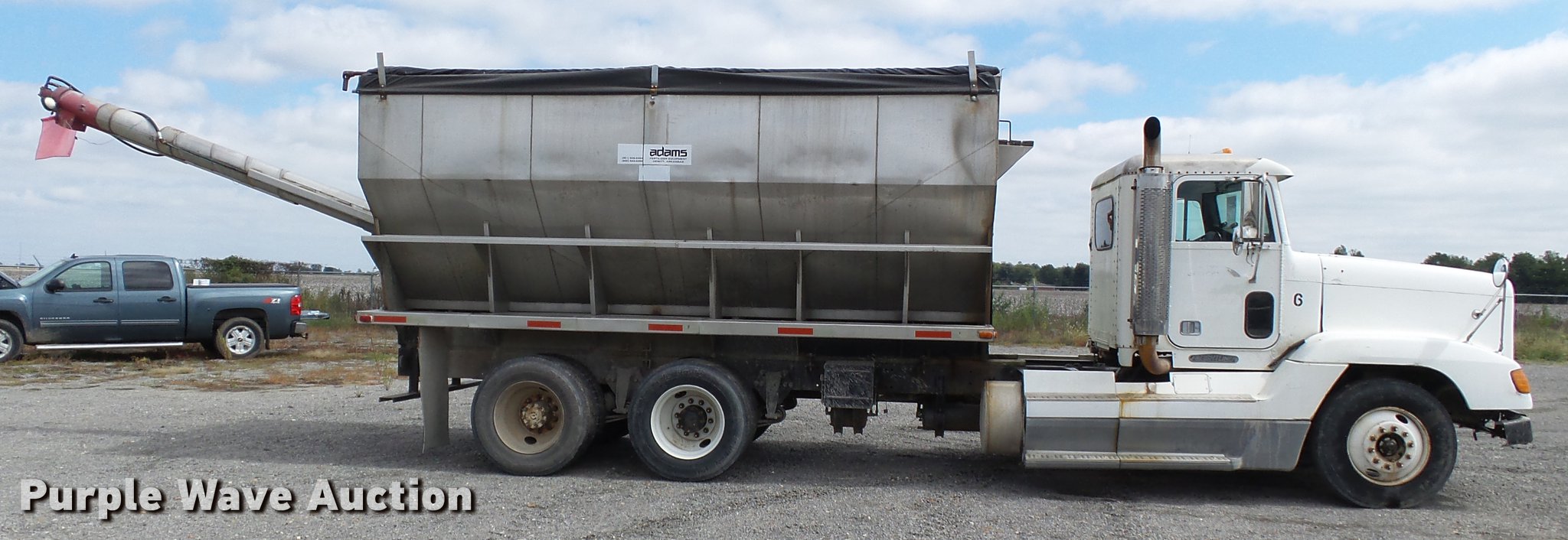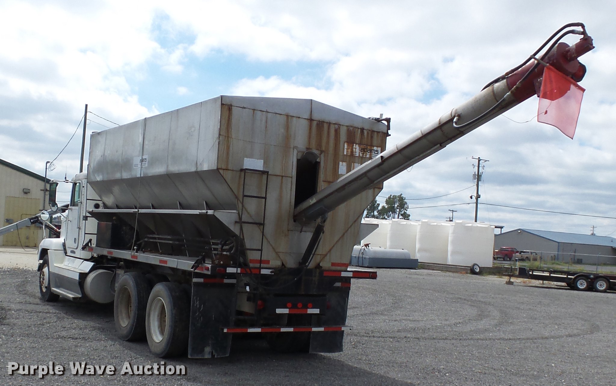 Purple Wave is selling a used Fertilizer or Feed Delivery Truck in Arkansas. This item is a 1996 Freightliner FLD fertilizer tender truck with the following: 129,022 miles on odometer, Actual miles unknown, Caterpillar 3406 14.6L L6 turbo diesel engine, 435 HP, Serial 5EK69077, Rockwell RM, RMX 10 speed manual transmission, Tandem axle, Inter-axle differential lock, AC and heat, Cruise, Heated mirrors, Air suspension seat, Adams fertilizer tender bed, 17'L, (2) compartments, 9" diameter rear discharge auger, Hydraulic lift, Rear/ground controls, Roll tarp, Air suspension, Air brakes, 236" wheelbase, 295/75R22.5 front tires, 275/80R22.5 rear tires, GVWR 52,000 lbs, FAWR 12,000 lbs, IAWR 20,000 lbs, RAWR 20,000 lbs, Unit# 10419