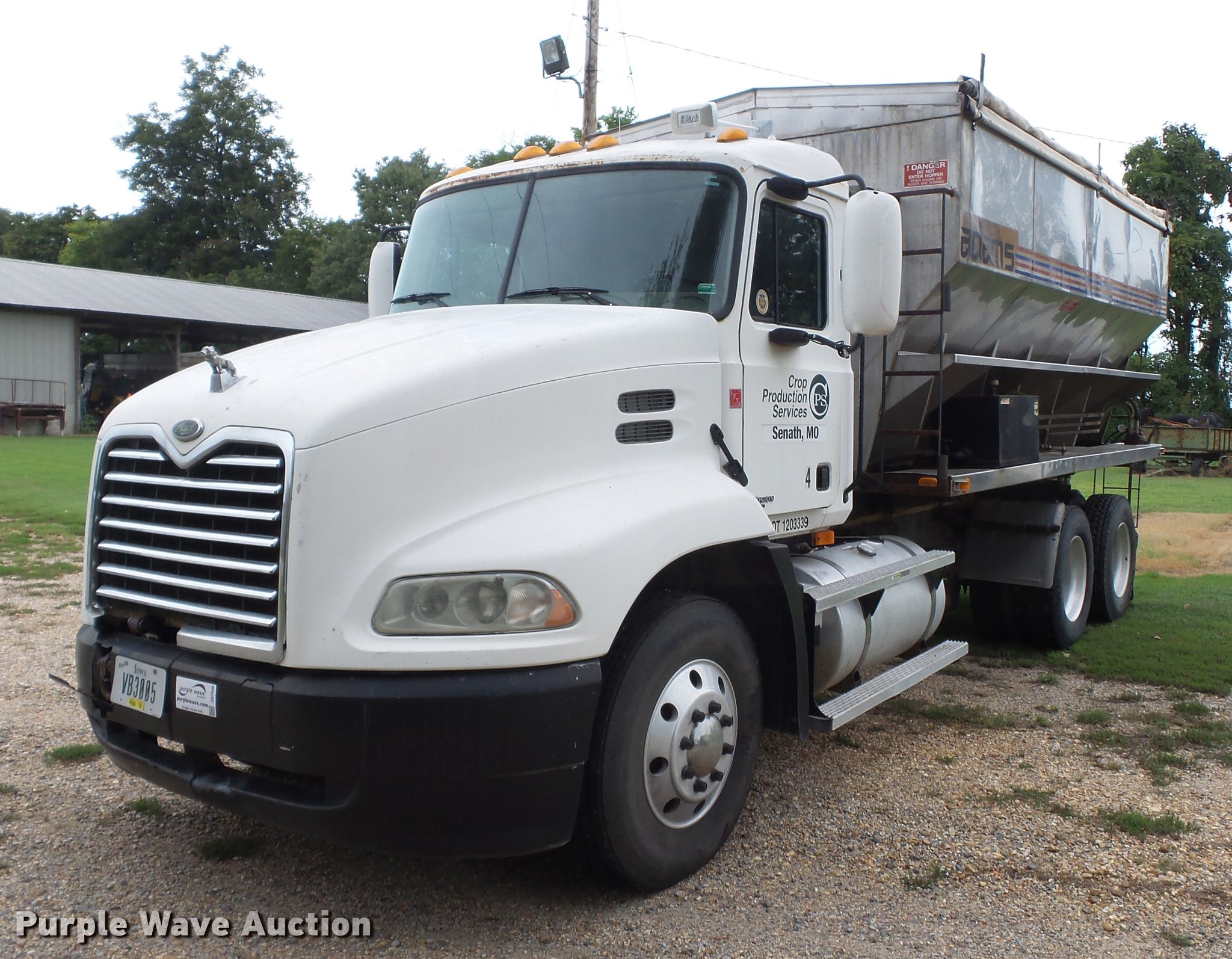 Purple Wave is selling a used Fertilizer or Feed Delivery Truck in Missouri. This item is a 2001 Mack CX613 fertilizer tender truck with the following: 3,289 miles on odometer, Actual miles unknown, 25,442 hours on meter, Mack E7-330/350 12.0L L6 turbo diesel engine, Serial 0J2275, Eaton Fuller 10 speed manual transmission, Tandem axle, Inter-axle differential lock, AC and heat, Tilt, Cruise, AM/FM, Power windows and locks, Air suspension seat, Block heater, Adams fertilizer tender bed, 17'L, (2) compartments, 12.5'L x 9" diameter rear discharge auger, Hydraulic lift, Rear/ground controls, Vibrator, Roll tarp, Air suspension, Air brakes, 210" wheelbase, 11R22.5 front tires, 295/75R22.5 rear tires