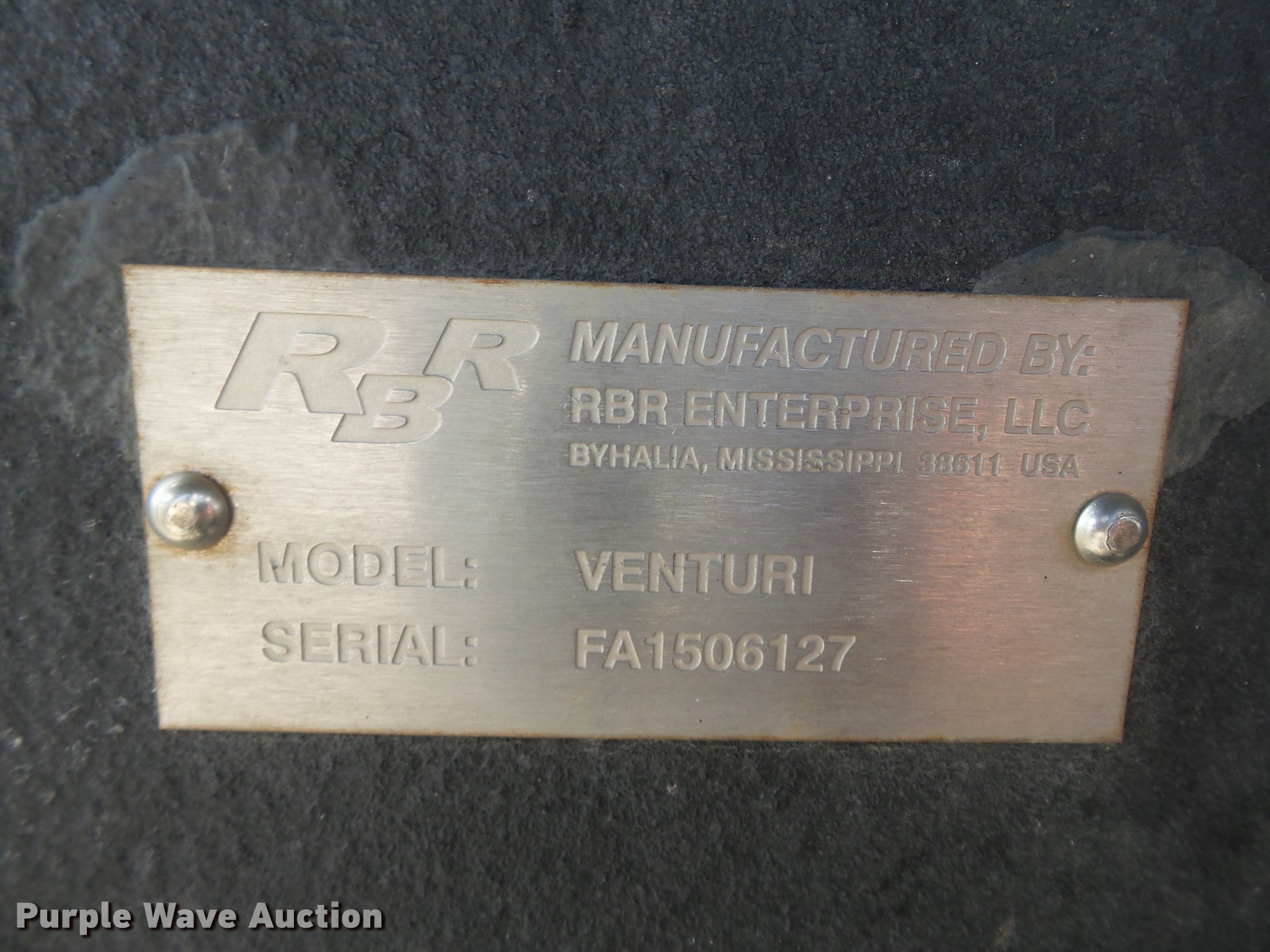 Purple Wave is selling a used Applicator Self Propelled in Arkansas. This item is a 2015 RBR Venturi 350 Case IH applicator with the following: 2,061 hours on meter, Cummins 540 C.I.D. six cylinder turbo diesel engine, 350 HP, Allison automatic transmission, Four wheel drive, AC and heat, AM/FM, Air suspension seat, Work lights, Light bar, Raven GPS monitor, Raven Titan 4000 spray controls, Case IH Flex Air 810 dry fertilizer bed, 287 cu. ft. capacity, Roll tarp, 70'W boom, Four boom sections, Hydraulic boom fold,, Belly shield, Hydraulic ladder, Fenders, VF380/90R46 row crop tires, Serial FA1506127