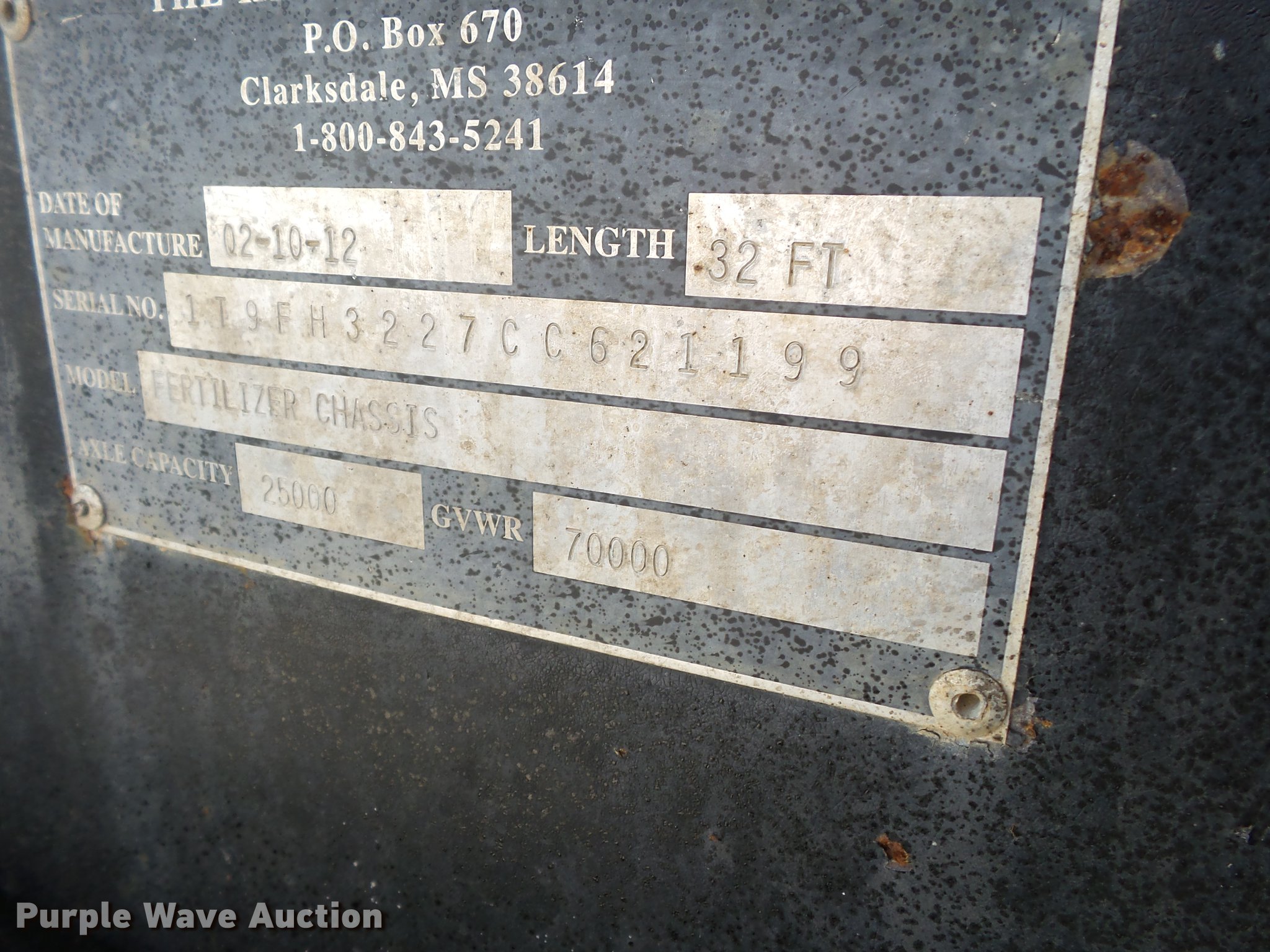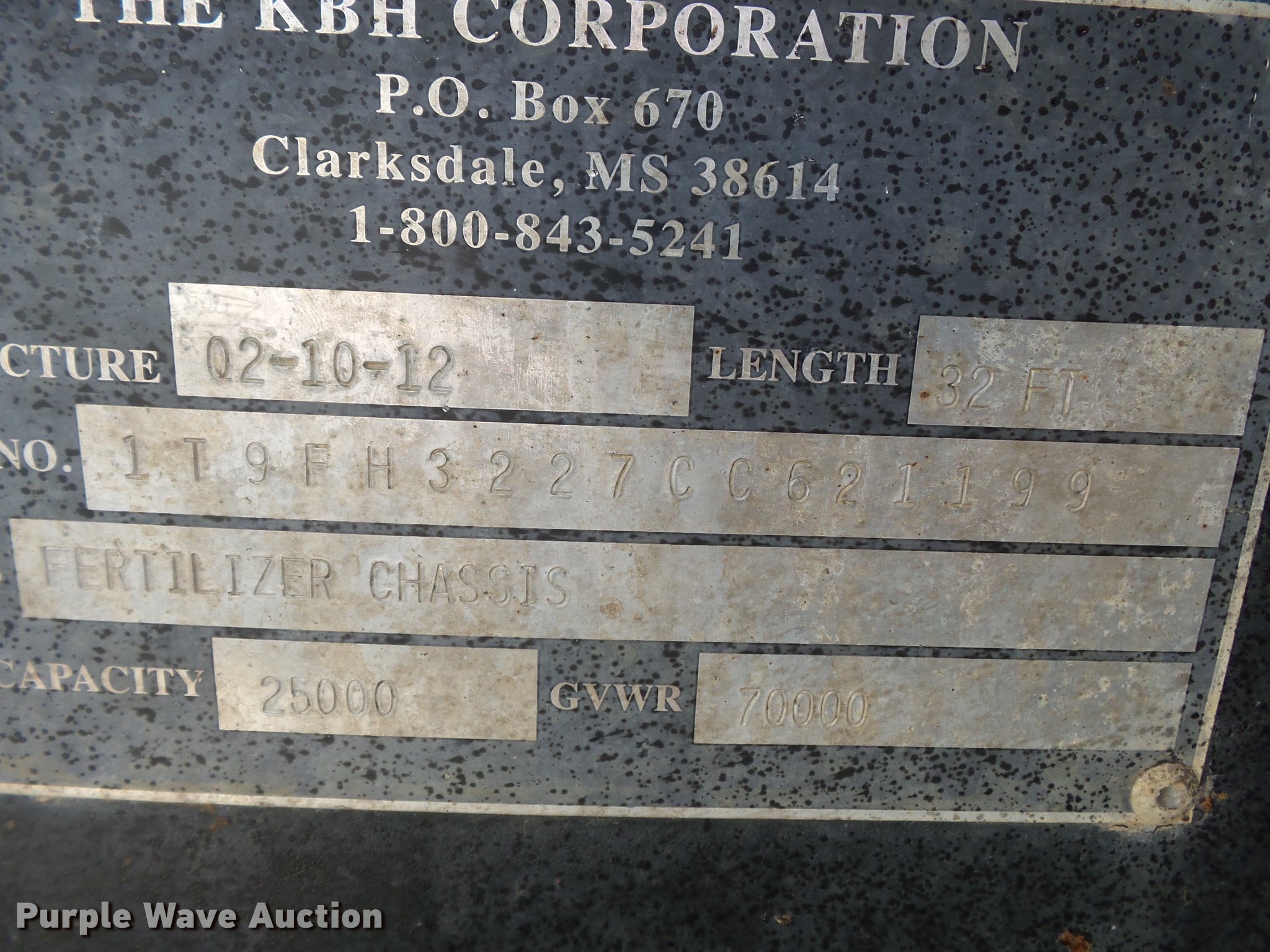 This 2012 KBH fertilizer tender trailer will sell to the highest bidder regardless of price.