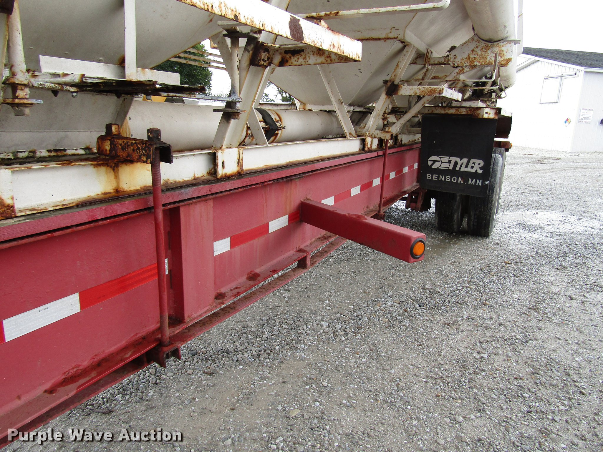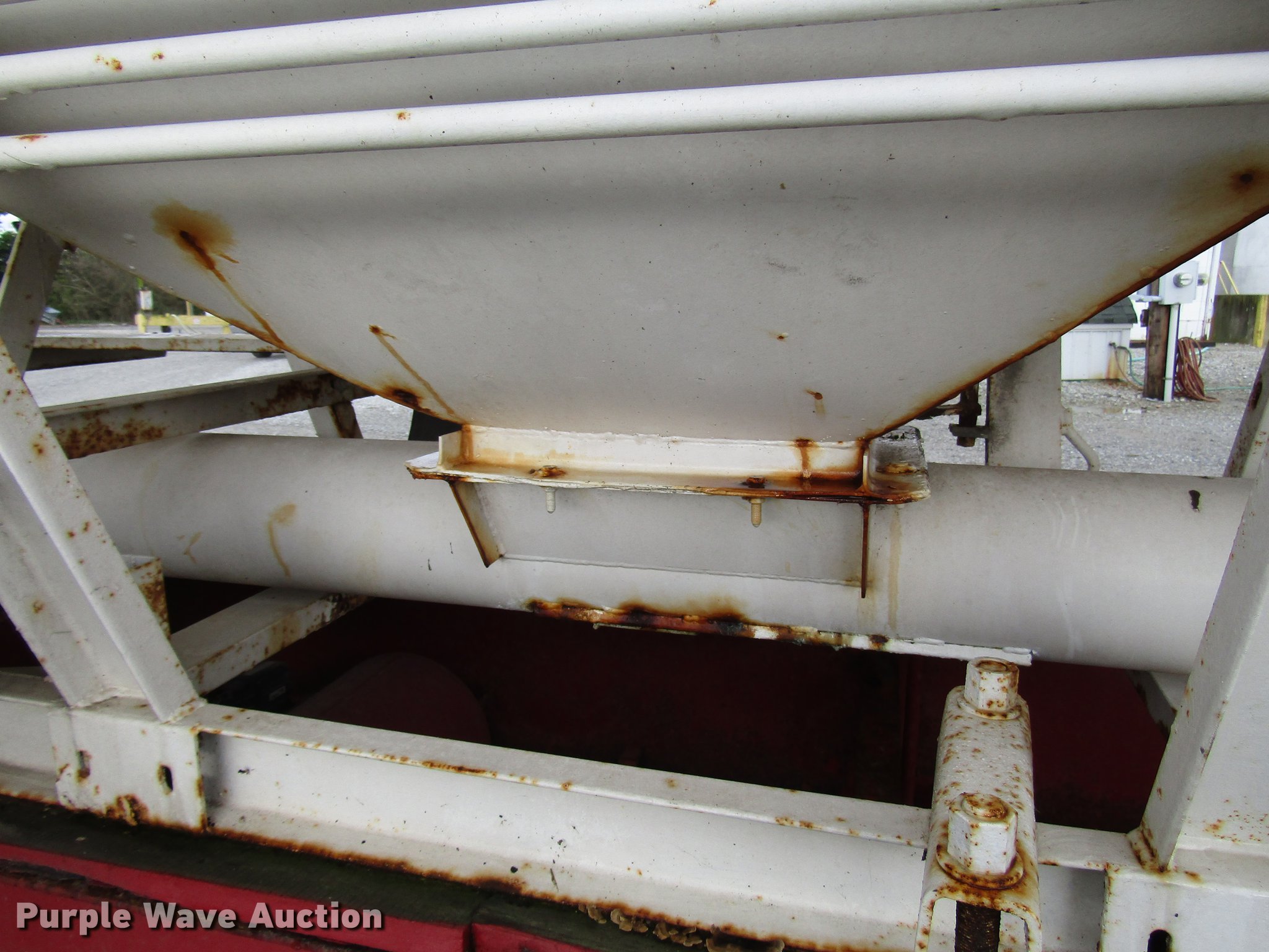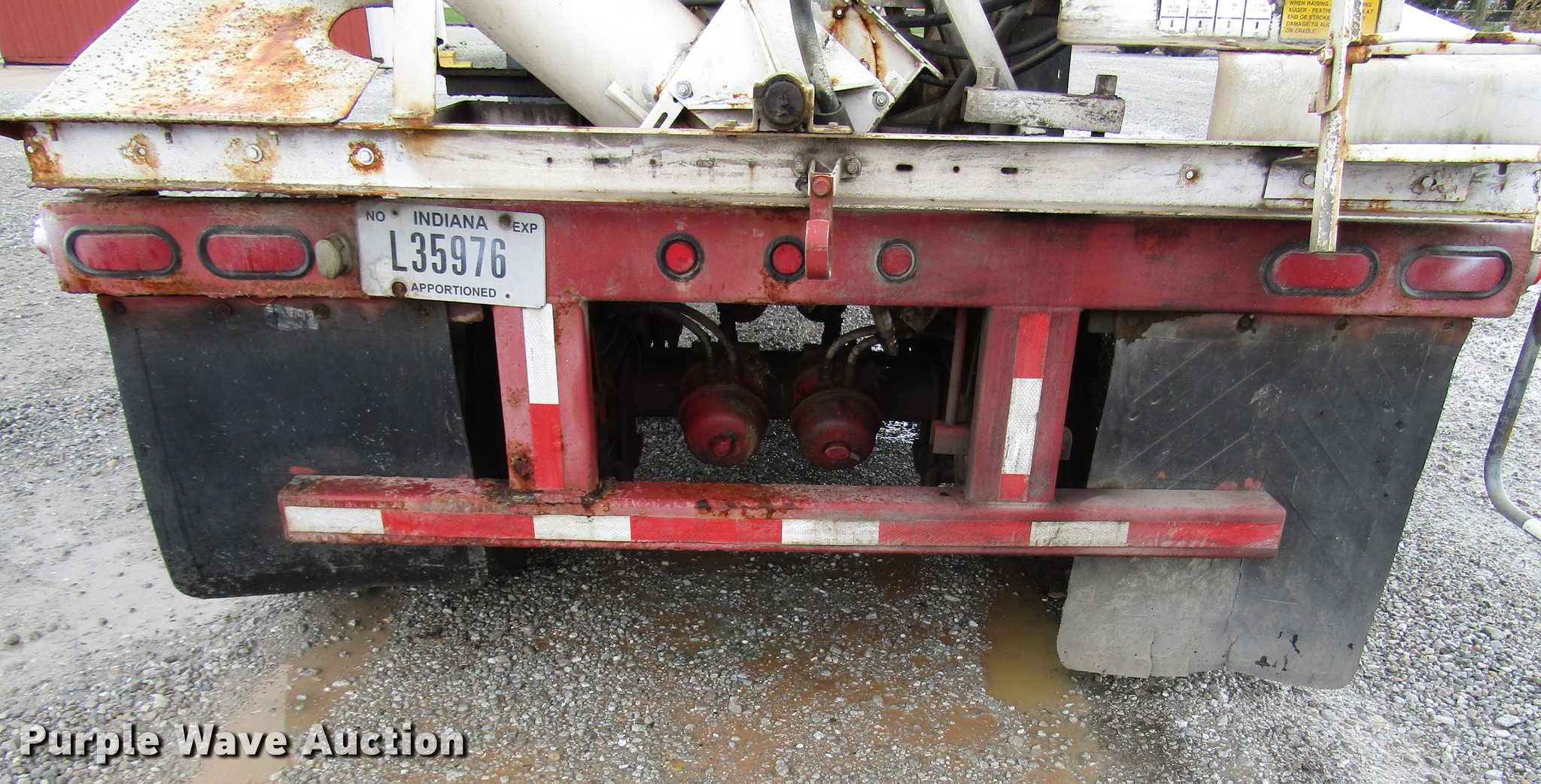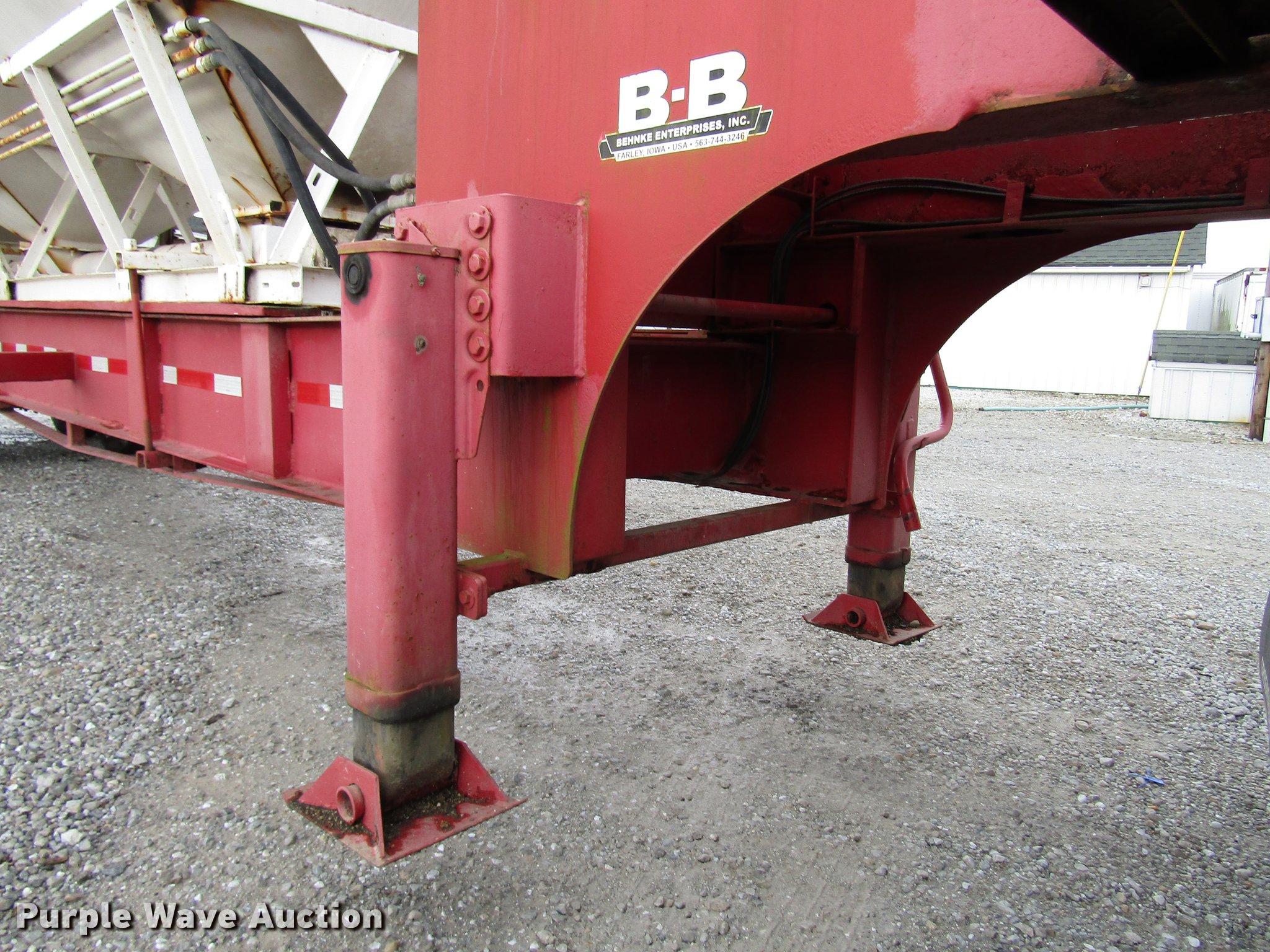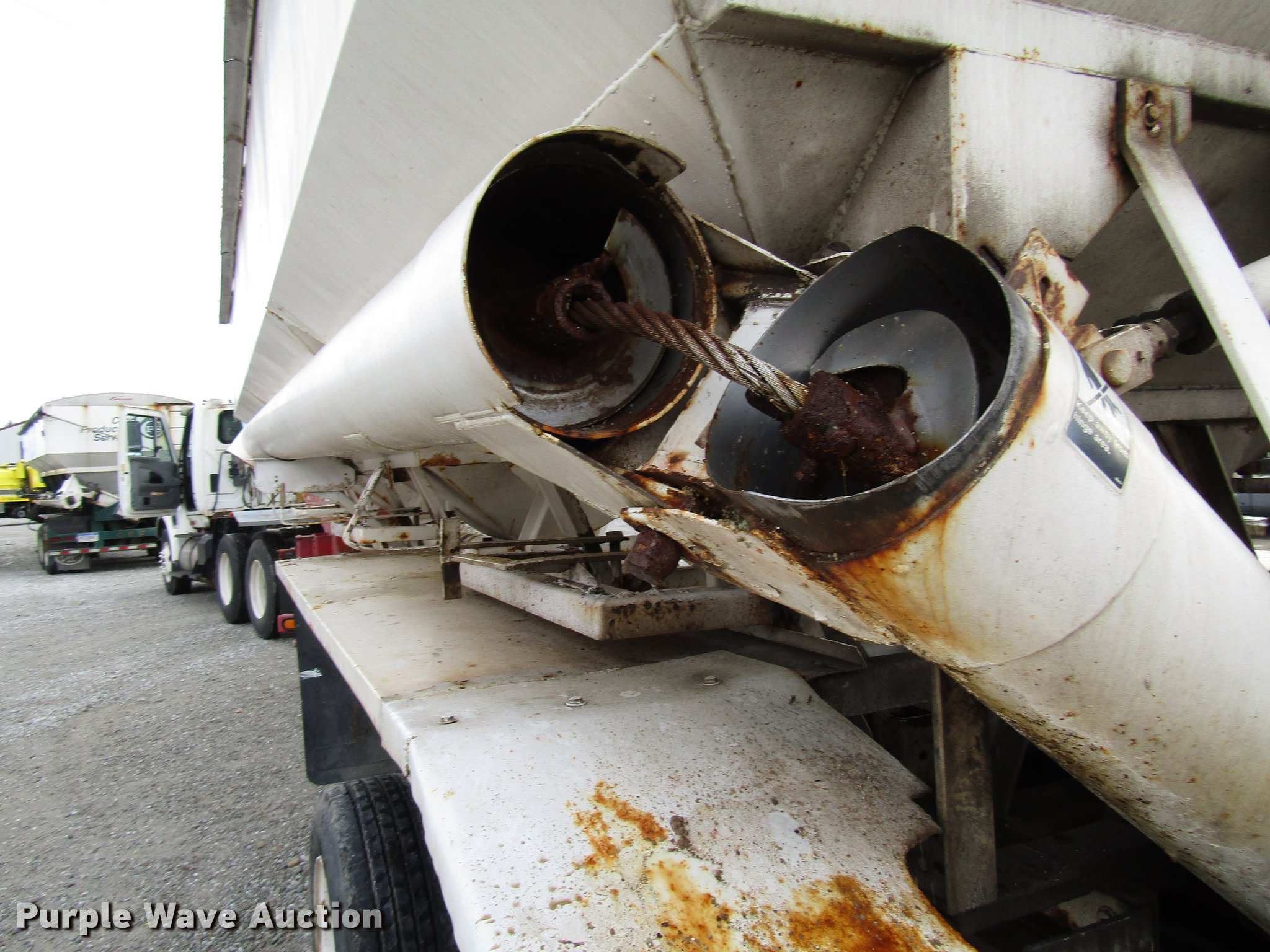 Purple Wave is selling a used Fertilizer or Feed Delivery Trailer in Indiana. This item is a 2005 B-B tender trailer with the following: 36'L, 25'L tender bed, (3) compartments, 24 ton capacity, 20'L x 10" diameter discharge auger, Hand controls, Roll tarp, Steel construction, Fifth wheel plate, Dual leg two speed landing gear, Spring suspension, Air brakes, Tandem axle, Steel wheels, 255/70R22.5 tires