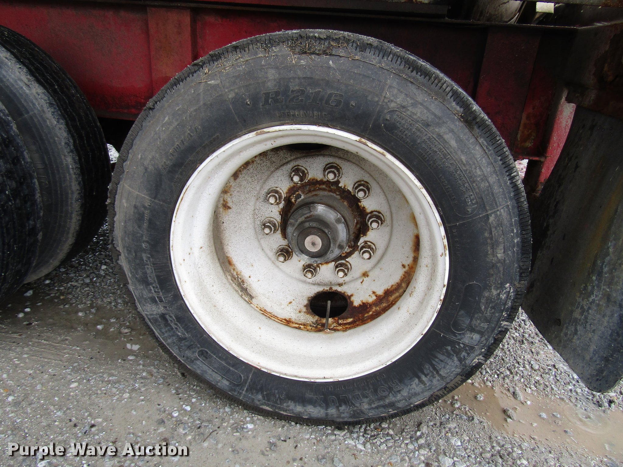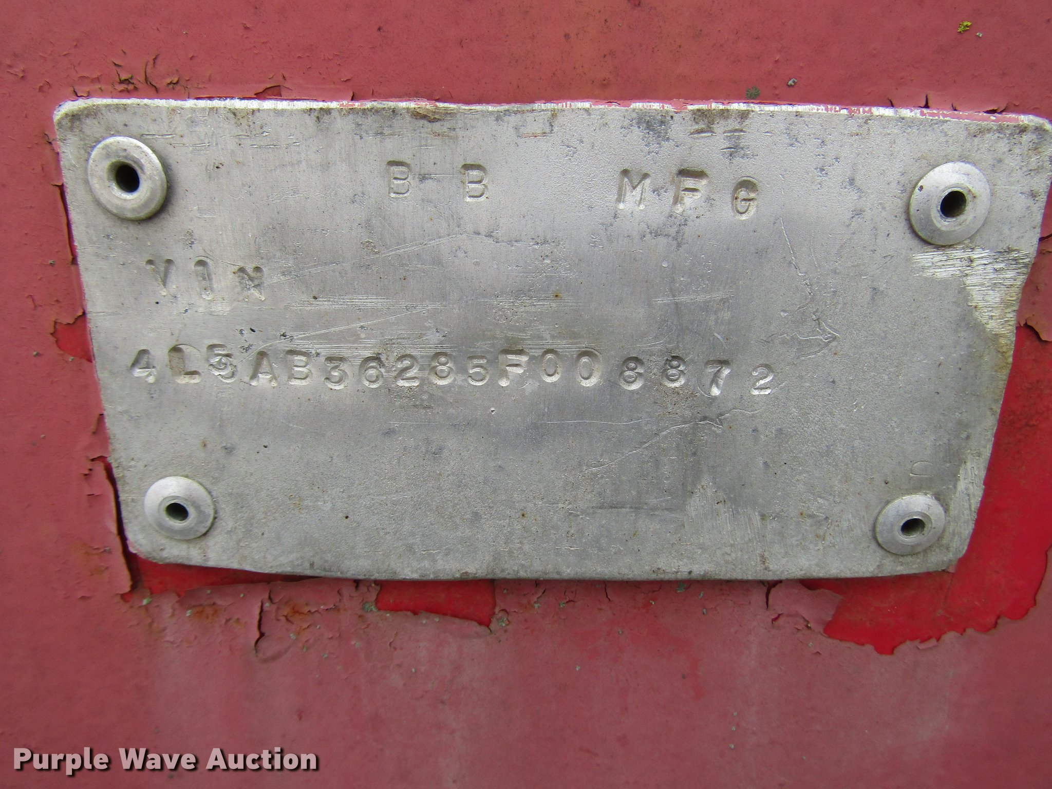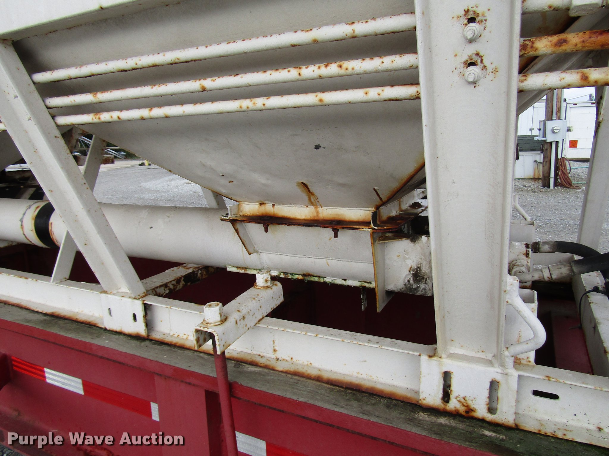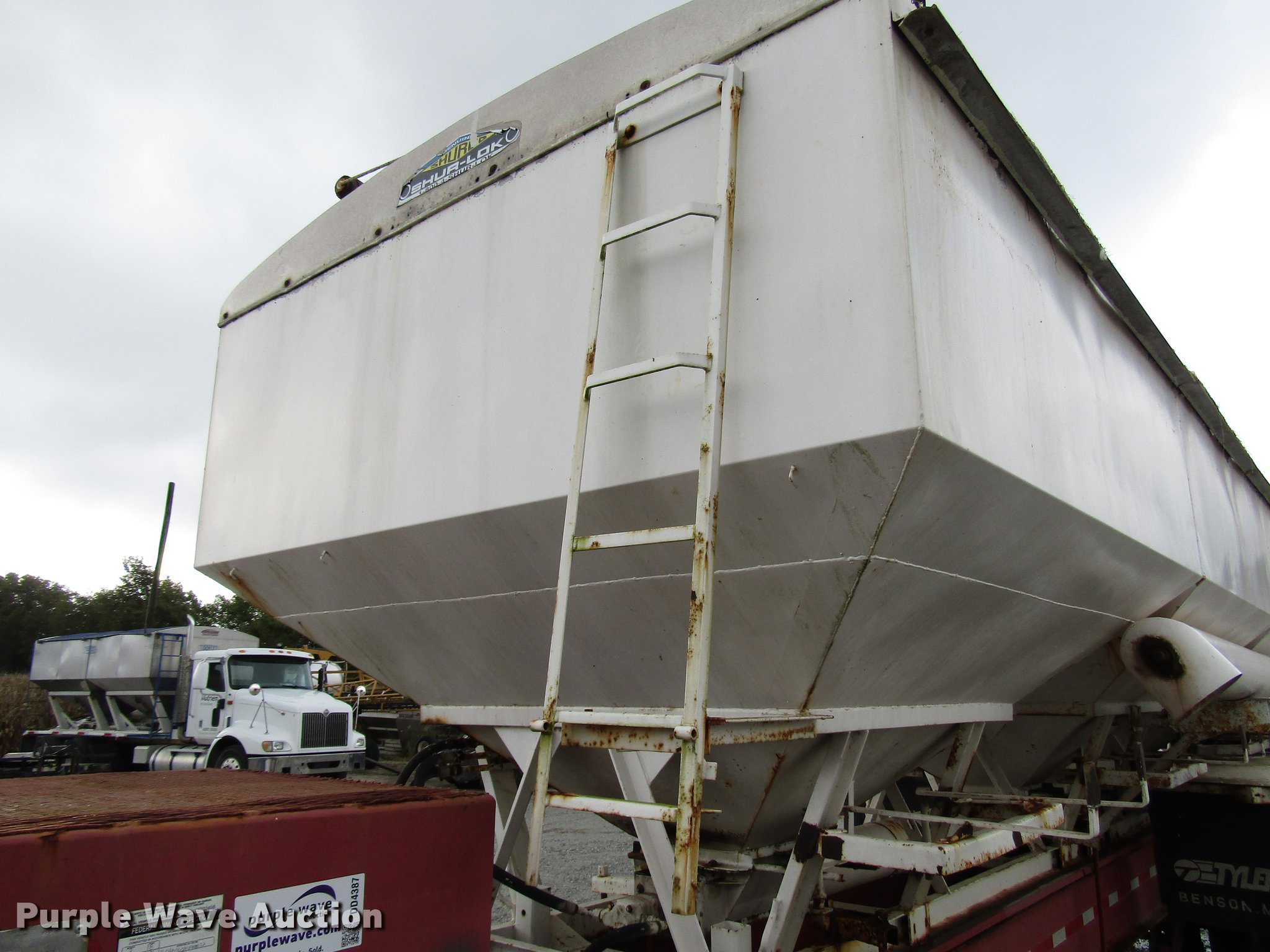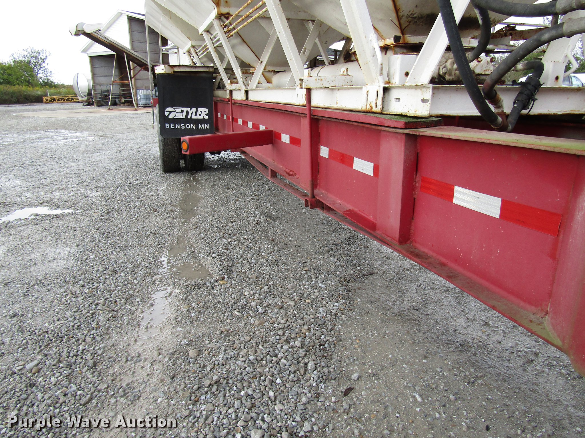 Purple Wave is selling a used Fertilizer or Feed Delivery Trailer in Indiana. This item is a 2005 B-B tender trailer with the following: 36'L, 25'L tender bed, (3) compartments, 24 ton capacity, 20'L x 10" diameter discharge auger, Hand controls, Roll tarp, Steel construction, Fifth wheel plate, Dual leg two speed landing gear, Spring suspension, Air brakes, Tandem axle, Steel wheels, 255/70R22.5 tires