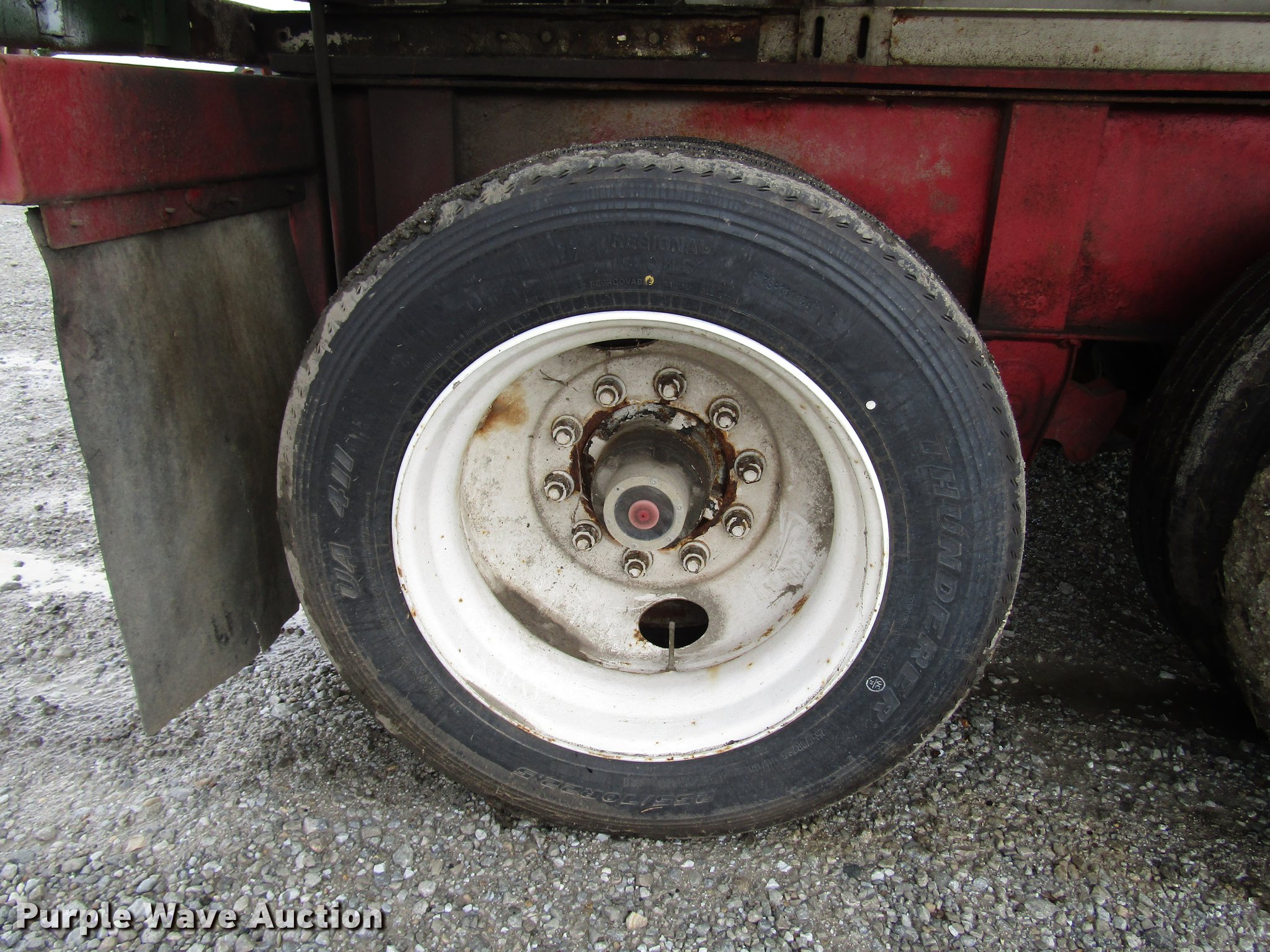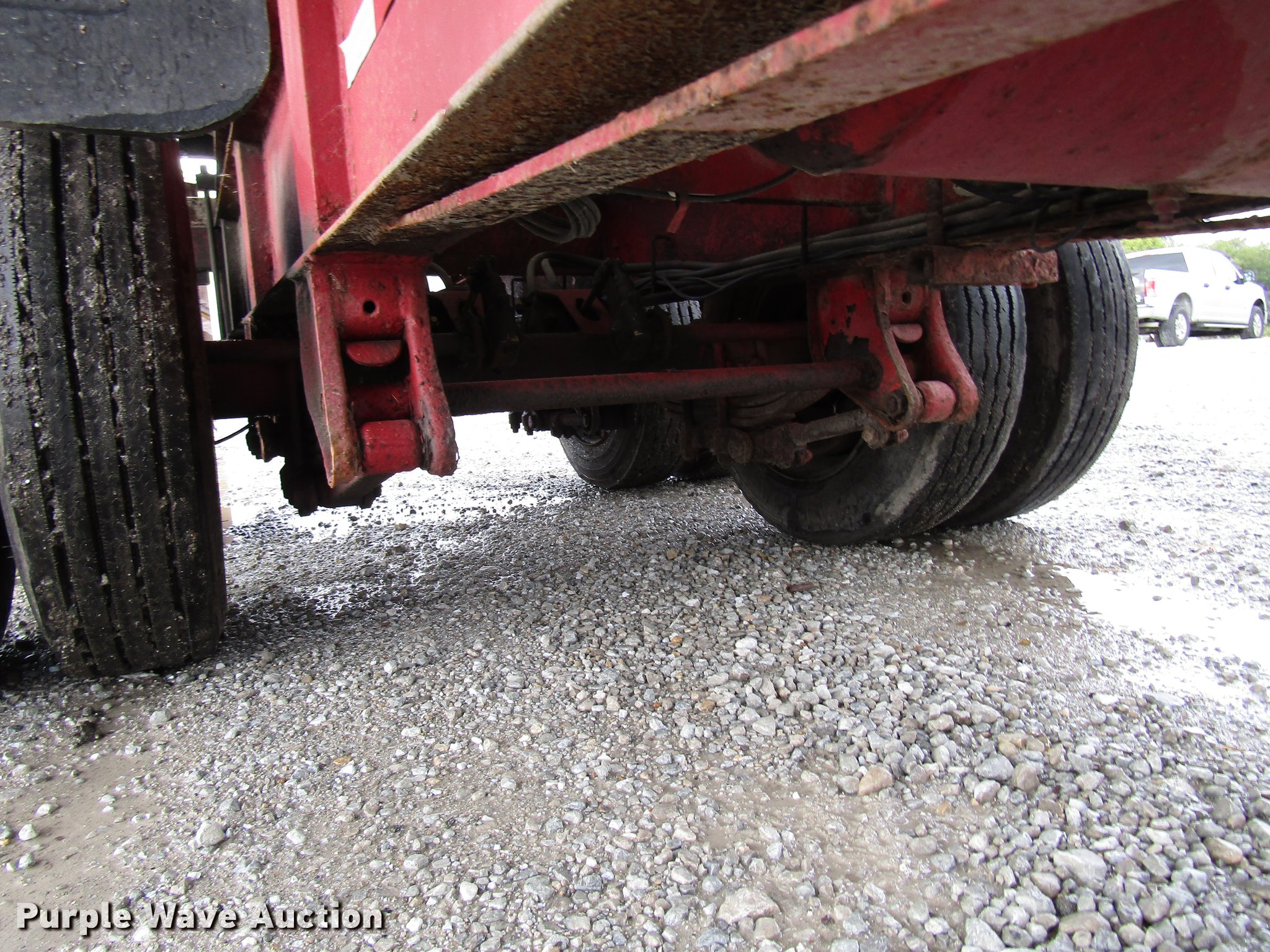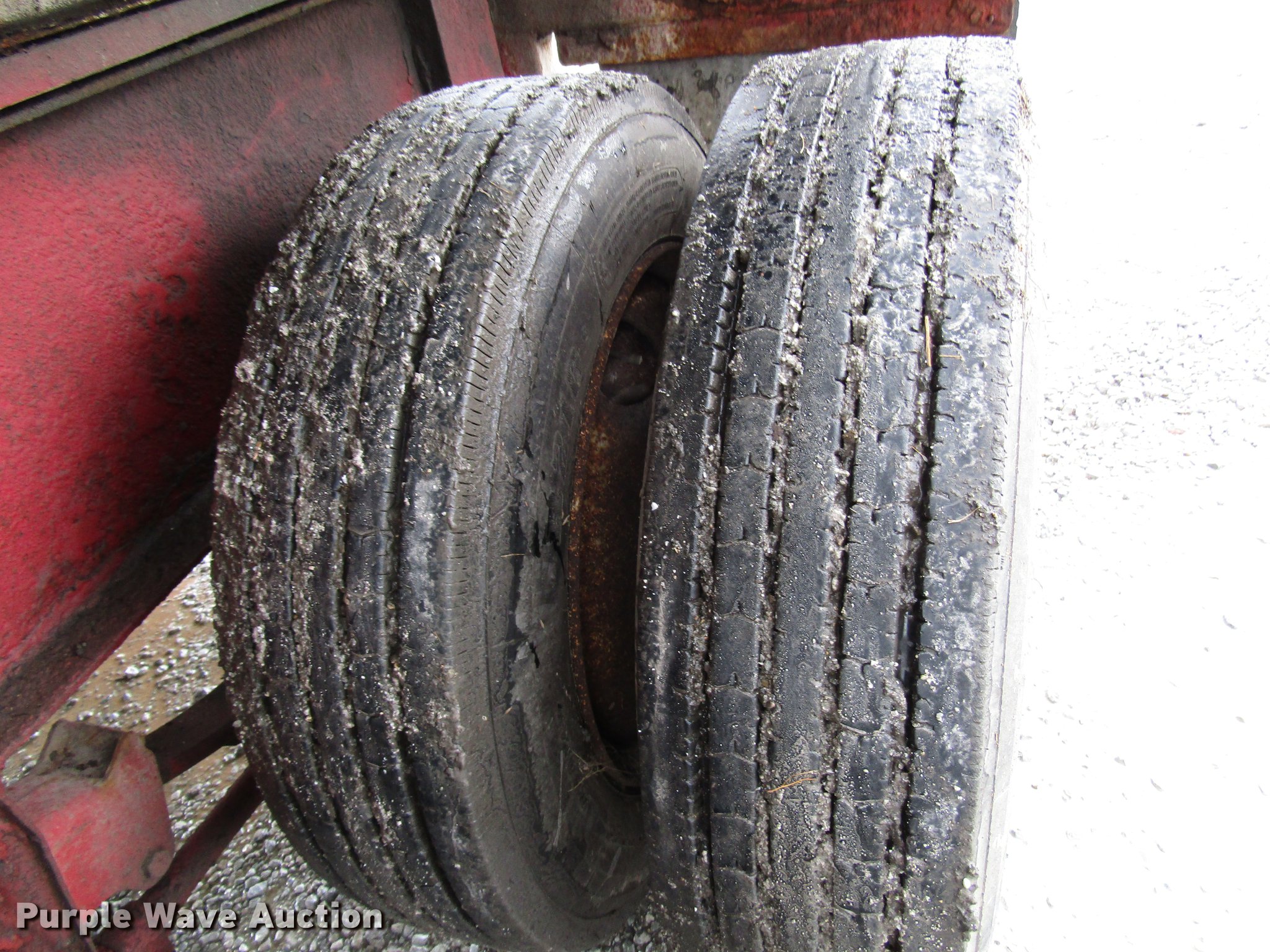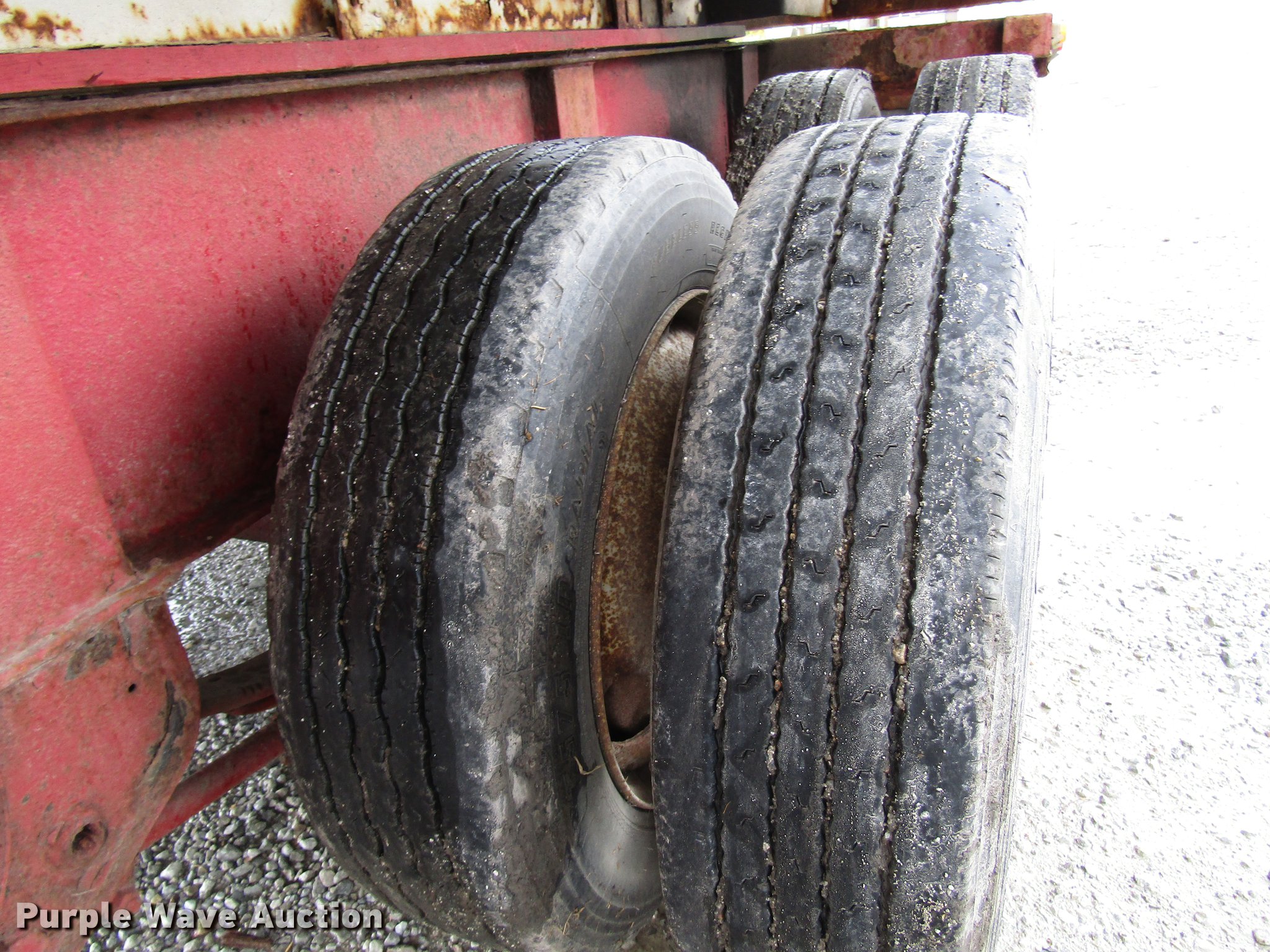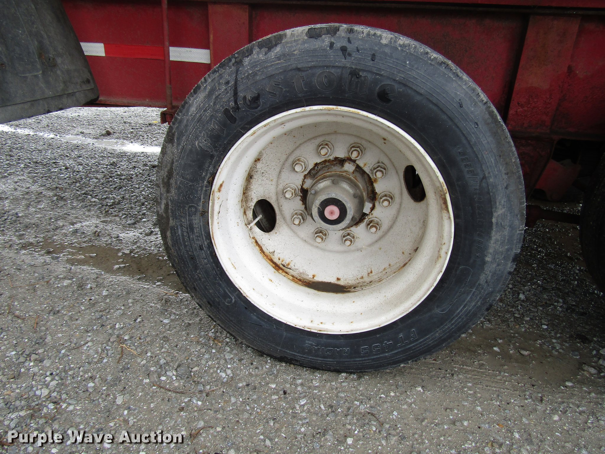 Purple Wave is selling a used Fertilizer or Feed Delivery Trailer in Indiana. This item is a 2005 B-B tender trailer with the following: 36'L, 25'L tender bed, (3) compartments, 24 ton capacity, 20'L x 10" diameter discharge auger, Hand controls, Roll tarp, Steel construction, Fifth wheel plate, Dual leg two speed landing gear, Spring suspension, Air brakes, Tandem axle, Steel wheels, 255/70R22.5 tires