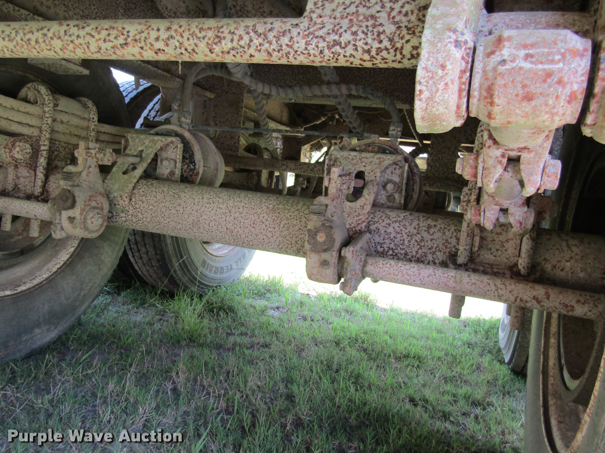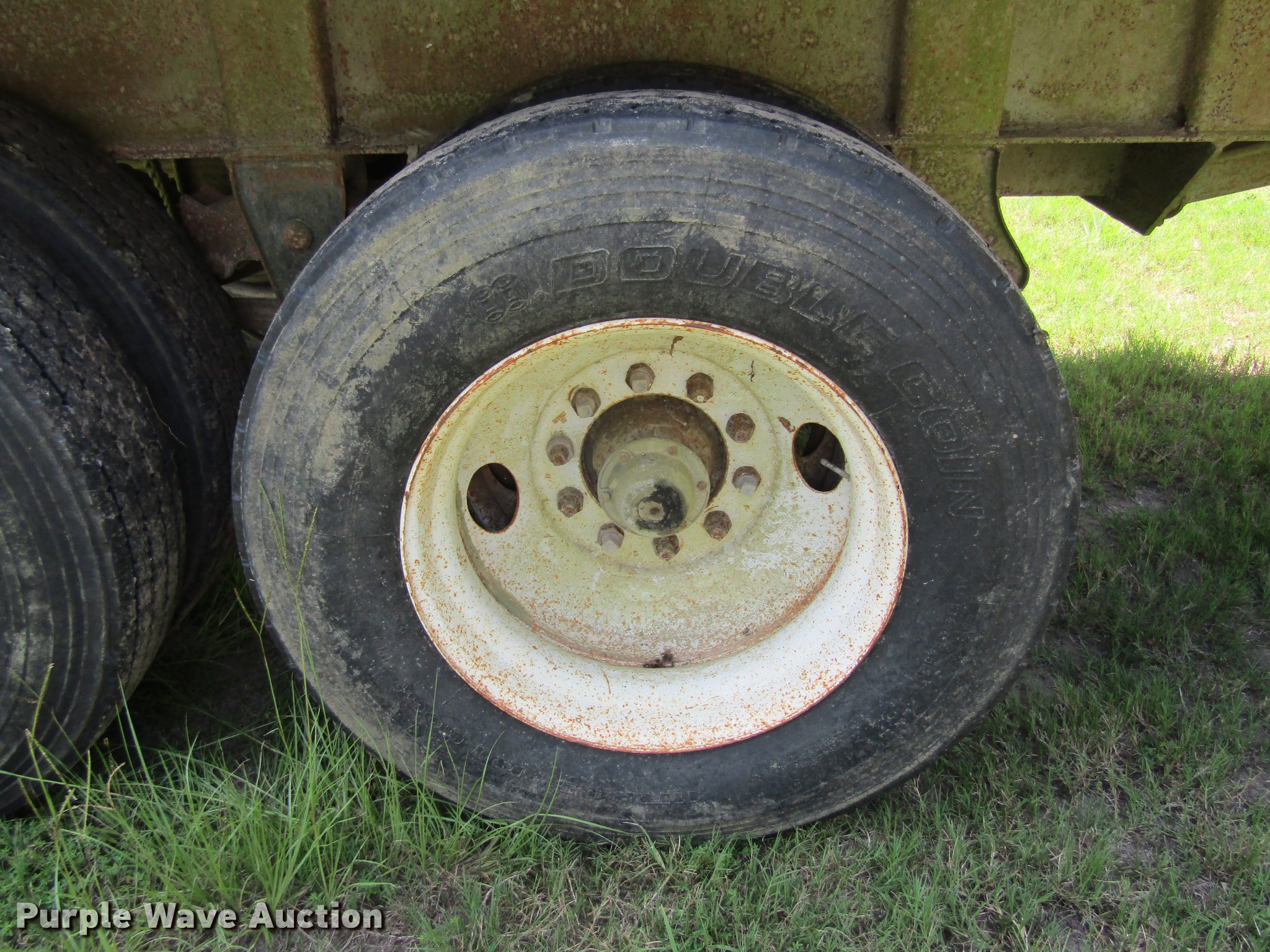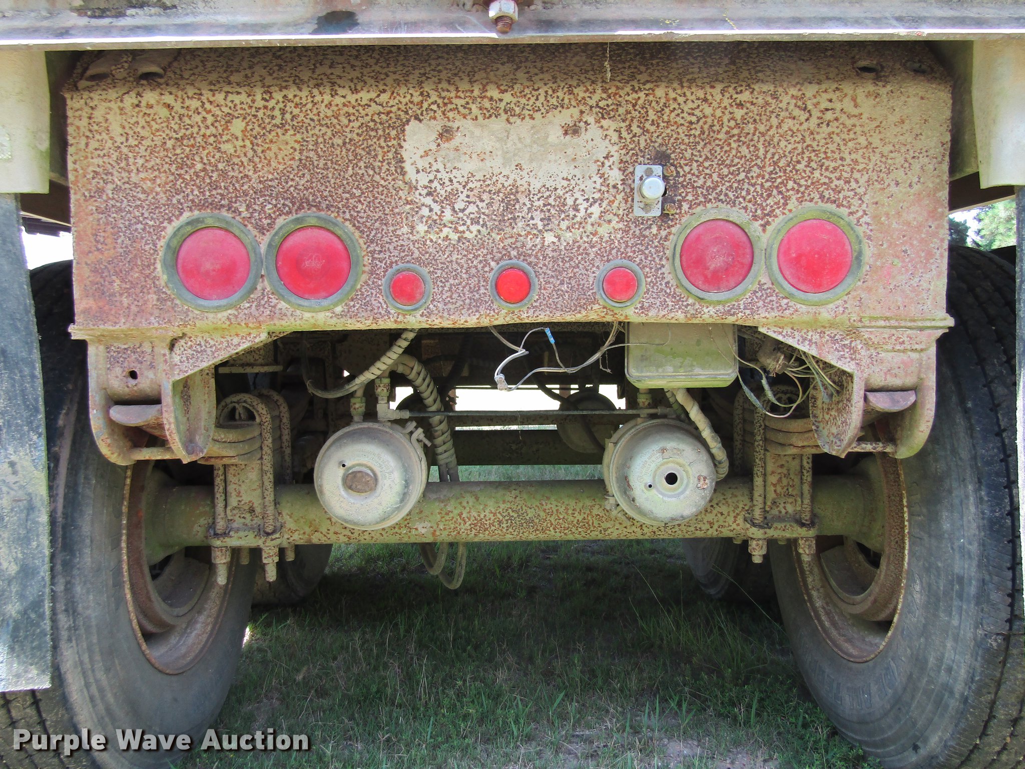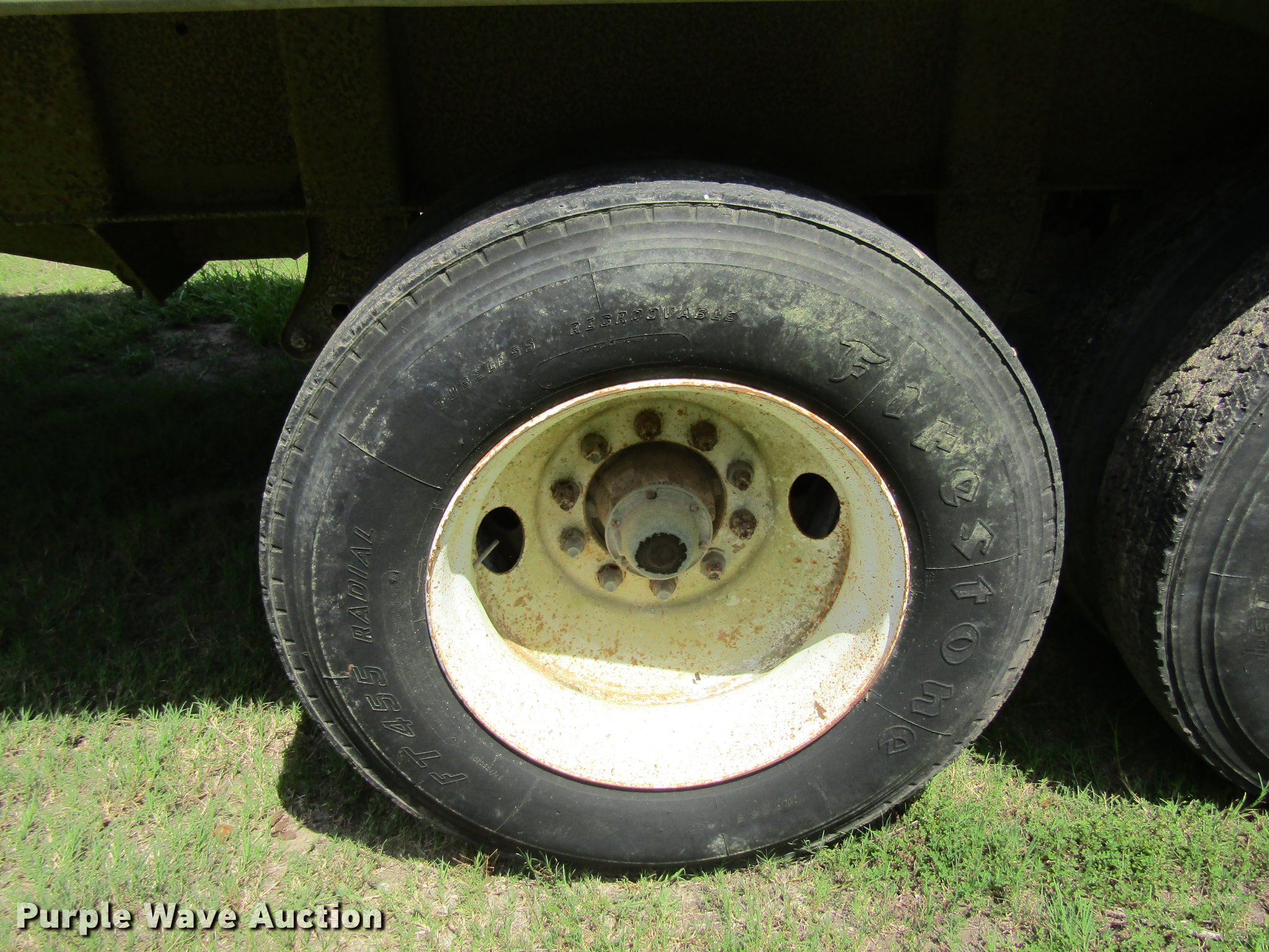Purple Wave is selling a used End Dump Rock Trailer in Texas. This item is a 1998 Mate 26 end dump trailer with the following: 27.5'L overall, 26'L body, 60" side height, Single hydraulic cylinder, End gate, Aluminum construction, Fifth wheel plate, Dual leg landing gear, Spring suspension, Air brakes, Tandem axle, Steel wheels, 11R24.5 tires, GVWR 34,000 lbs