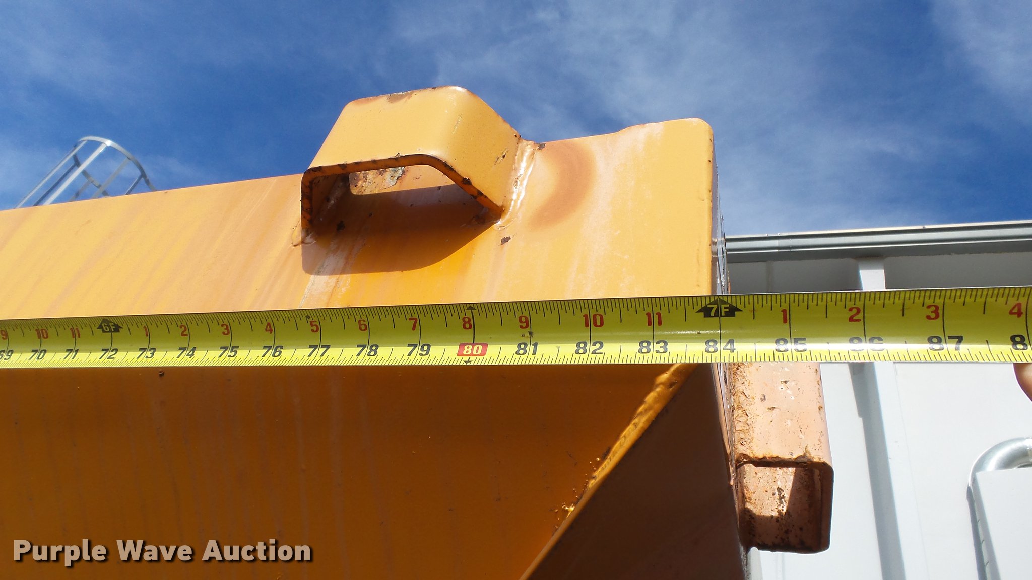Henderson WSHX917X48 spreader. Approx. 9'L x 7'W, Hydraulic belt, Single disk spinner Hydraulic drive, Serial WSH-26642. Newton Public Schools. 100 S Evans Ave. Newton, KS 67114