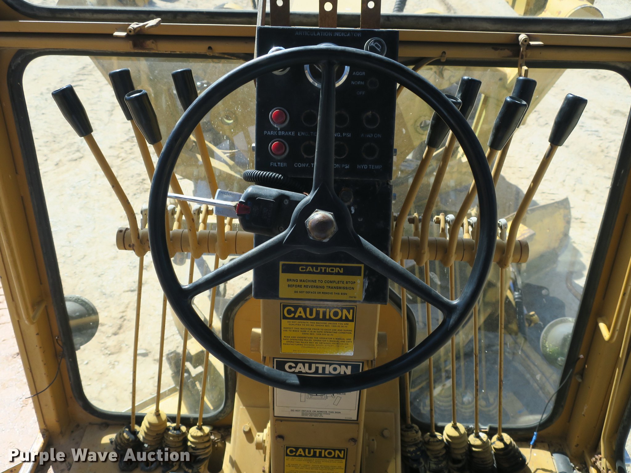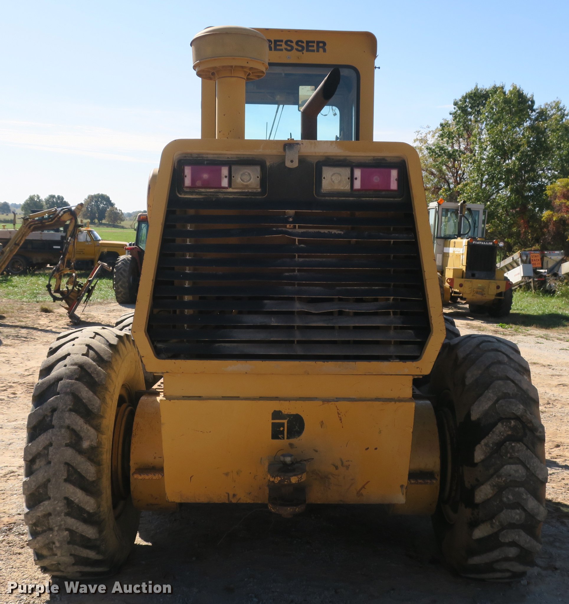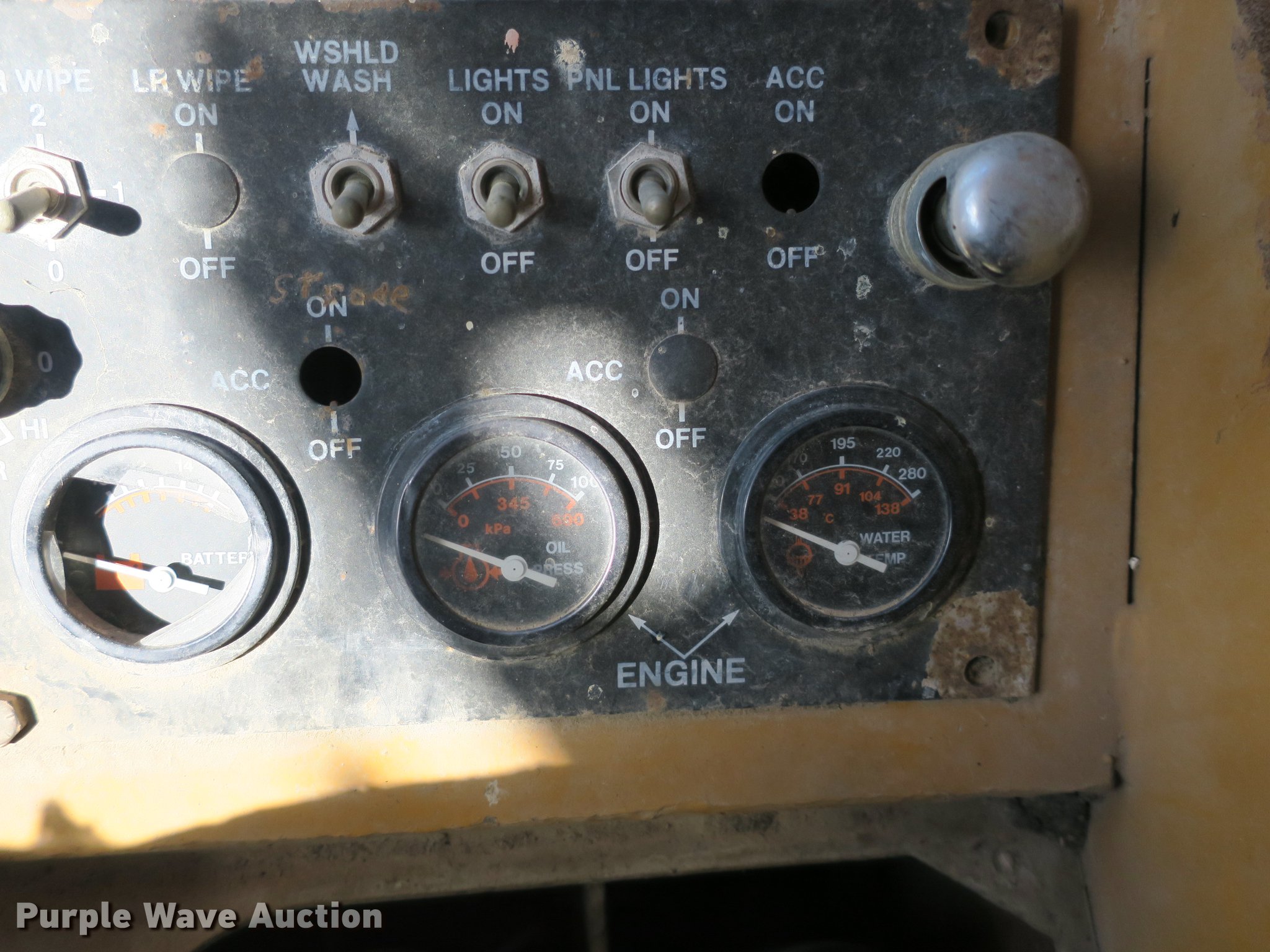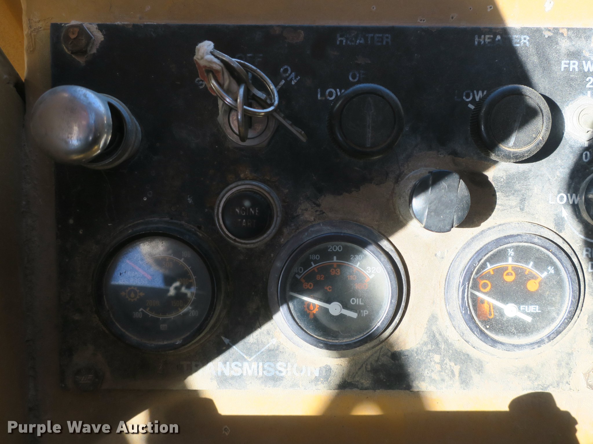 Purple Wave is selling a used Motor Grader in Missouri. This item is a 1987 Dresser A500E motor grader with the following: 1,126 hours on meter, Six cylinder turbo diesel engine, Powershift transmission, 6F-3R gears, EROPS, Heat, Suspension seat, Eight control valves, Front and rear work lights, 14'W scarifier moldboard, Tip control, Side shift, 14.00-24 tires, Brake issues, Right rear fluid leak, Engine issues, Left side control valves leak, Serial G8100020100122