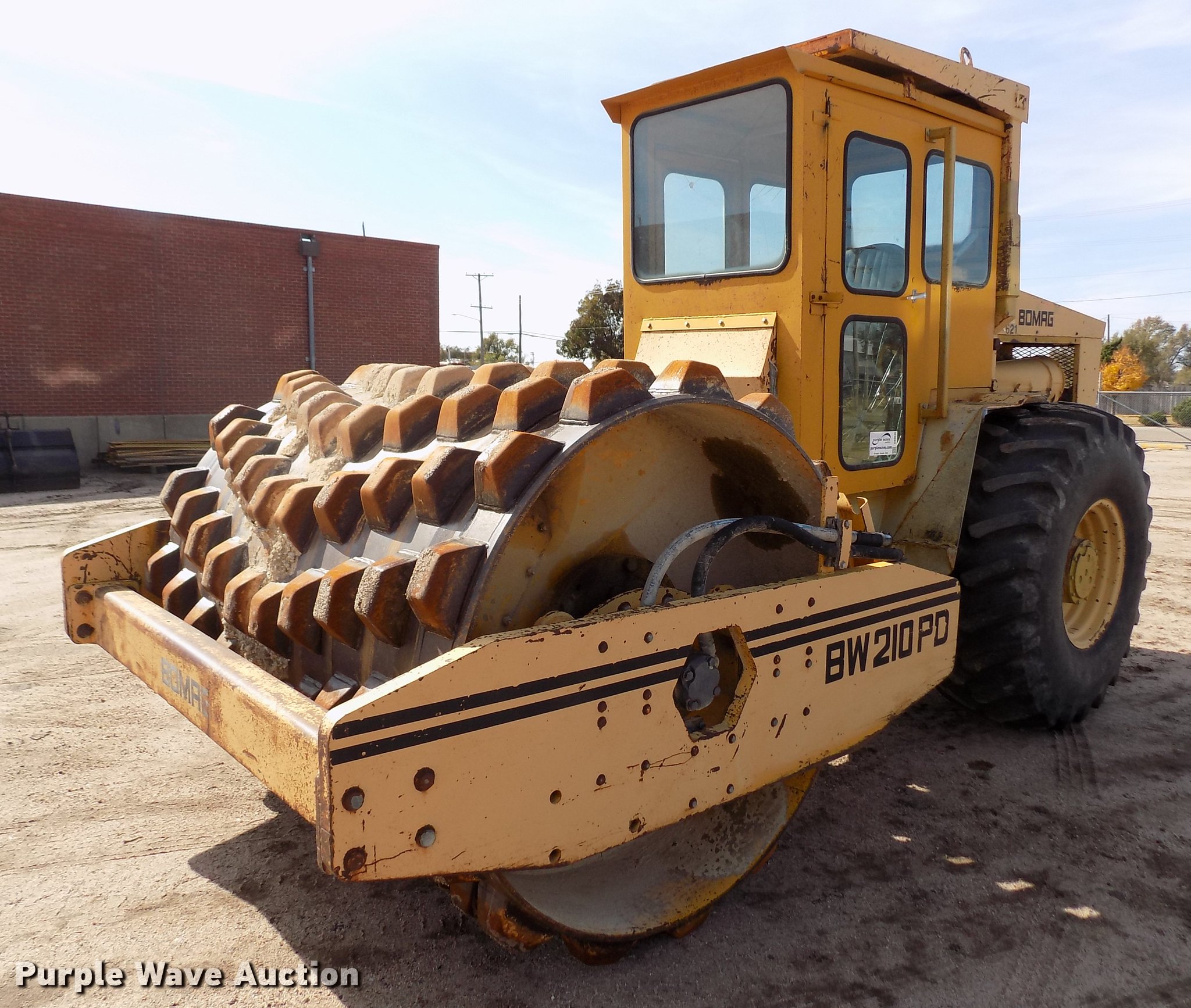 Purple Wave is selling a used Single Drum Roller Compactor in Kansas. This item is a Bomag BW210PD single drum roller with the following: 6,351 hours on meter, Deutz FGL912 six cylinder diesel engine, 99 HP, Hydrostatic transmission, 3F-3R gears, Enclosed cab, Suspension seat, 84"W x 60" diameter padfoot drums, Single vibratory system, 23.1-26 rear tires, Cracked windows, Serial 82266